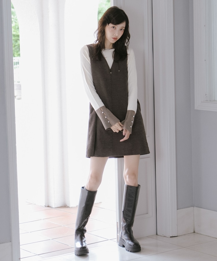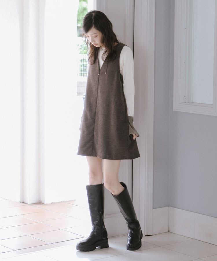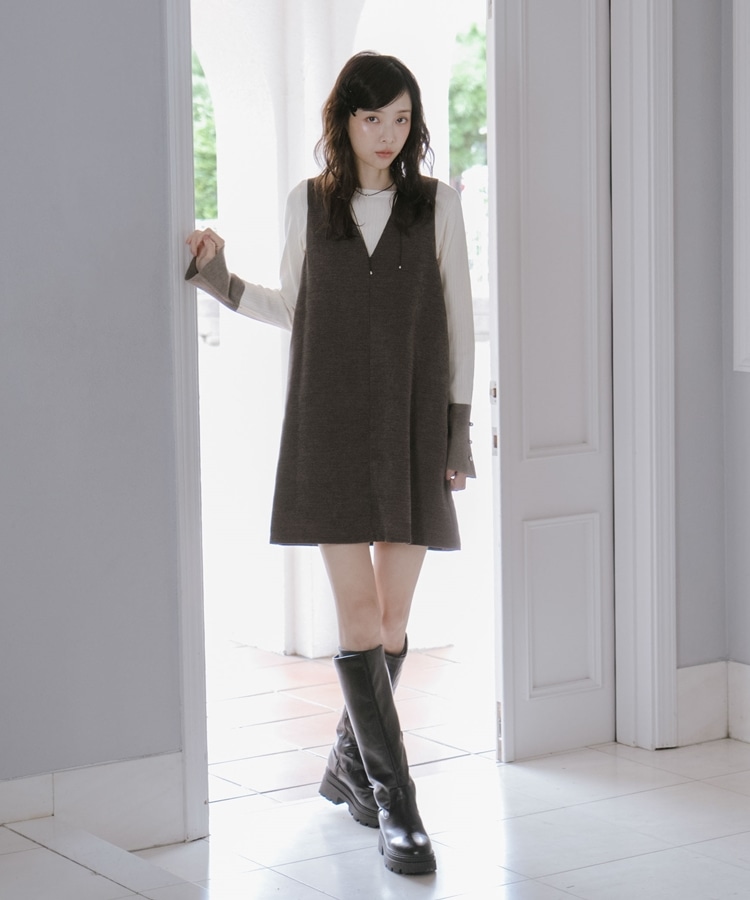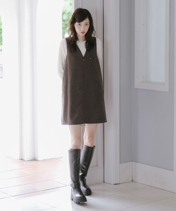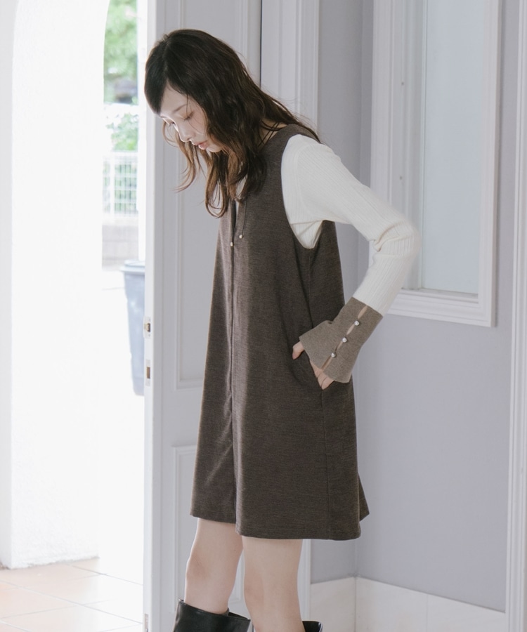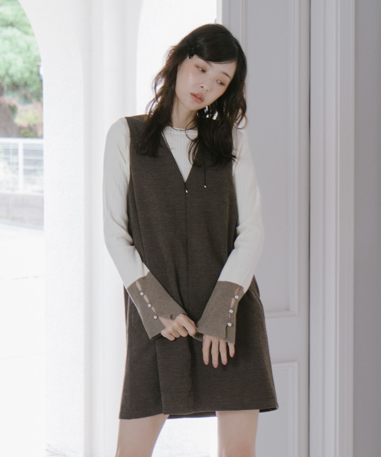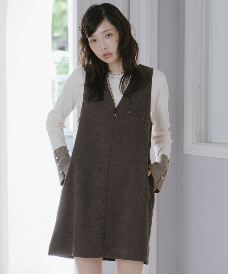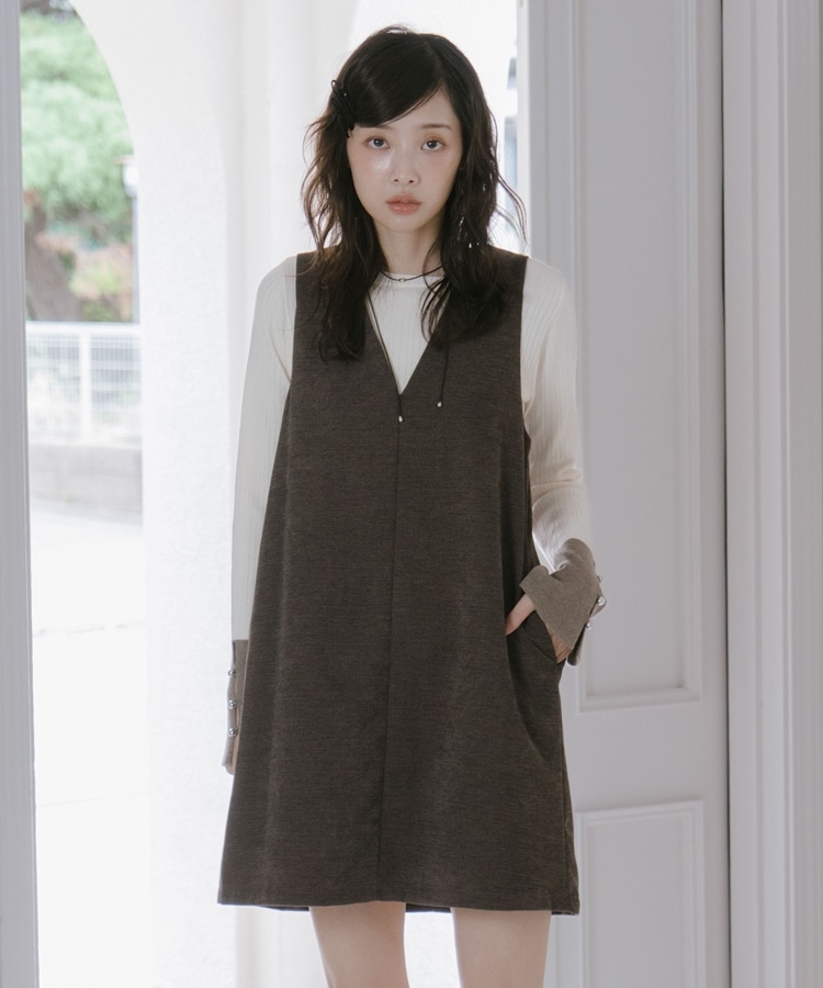 2wayVネックミニジャンスカ BROWN