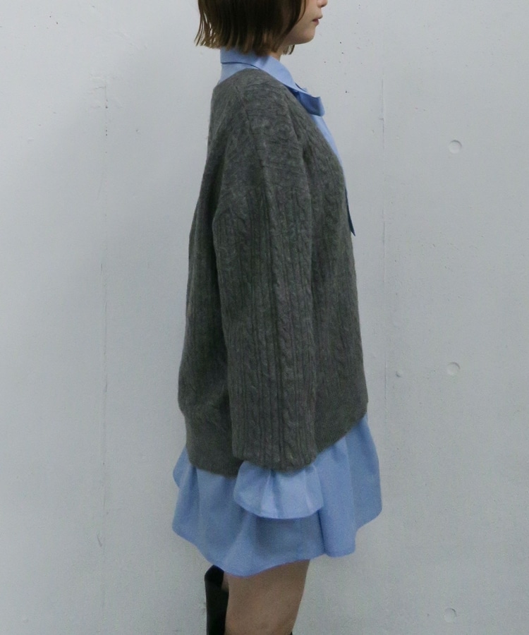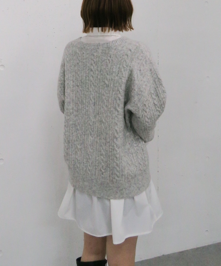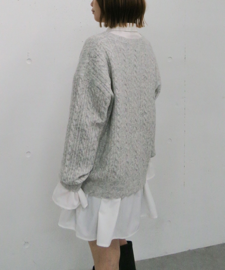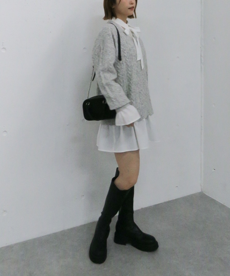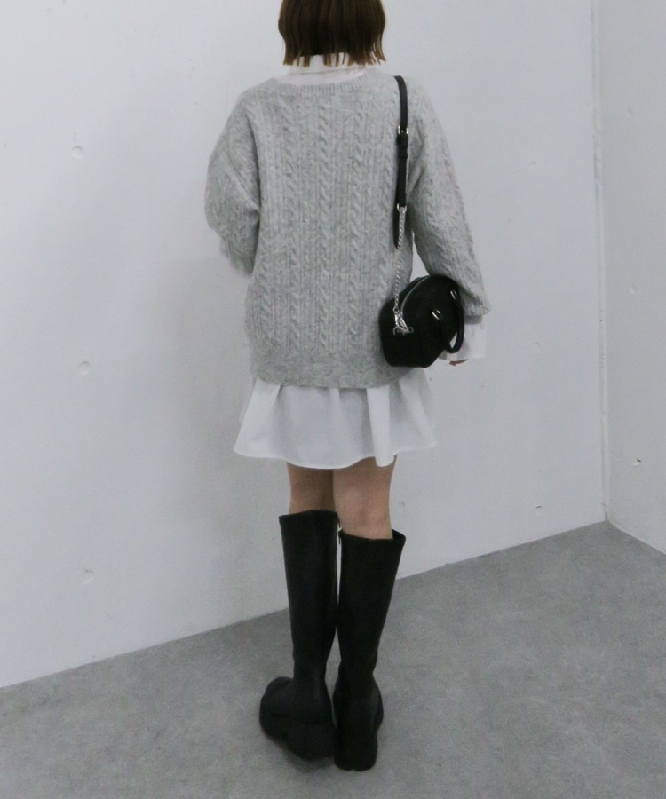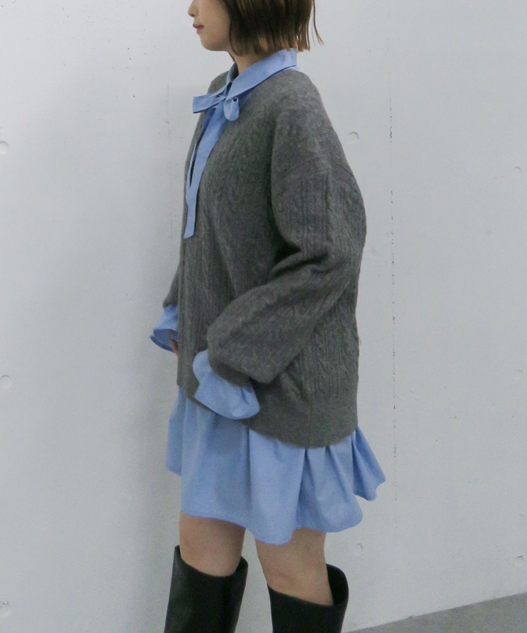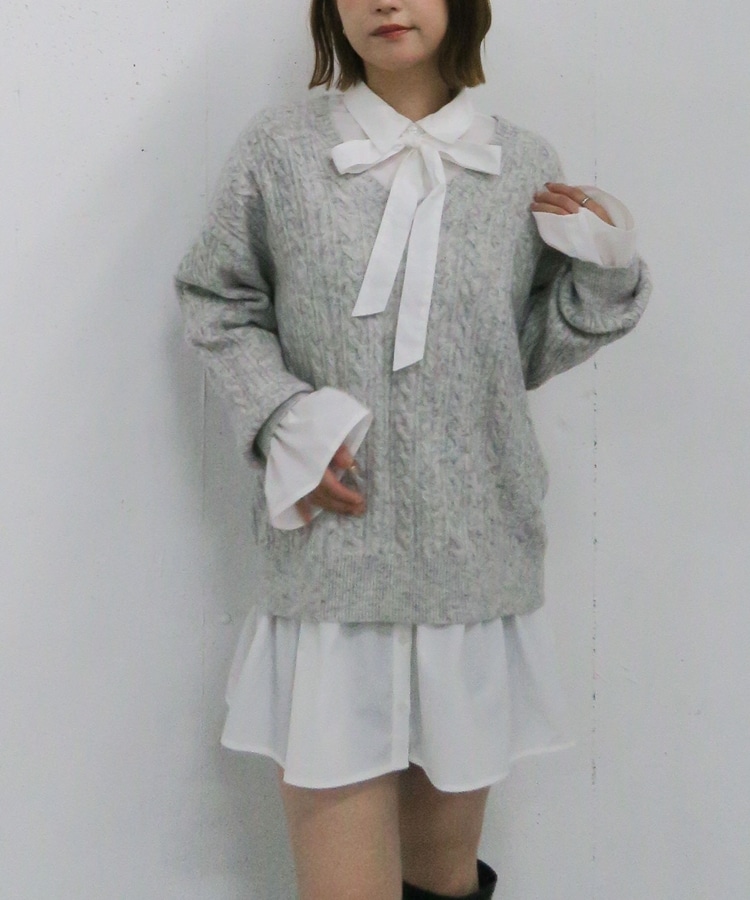 ■一枚で決まるお出かけワンピース■冬のお出かけにぴったりなセットワンピース。ケーブルニットとふわっと広がるシャツワンピが相性抜群。着丈長めのケーブルニットは一気に冬気分を盛り上げてくれます。しっかりとした編地であたたかく着て頂けます。シャツをレイヤードしてもごわつかないシルエット。袖周りにはボリュームをしっかりとプラス。セットのシャツワンピースは裾がふんわりと広がります。また足をカバーしてくれるので細見え効果◎シャツタイプなのできちんと見えも叶います。ボウタイは取り外し可能。セットはもちろん別々でも可愛く着こなせます。ーーーーーーーーーーーーーーー透け感:なし裏地:なし伸縮性:あり光沢感:なし生地厚さ:普通洗濯方法:ニット:手洗い推奨、シャツ:洗濯可※詳しいお手入れ方法は商品についているタグをご覧くださいーーーーーーーーーーーーーーー※ご利用のモニター環境により、実際の色味と多少異なる場合がございます。