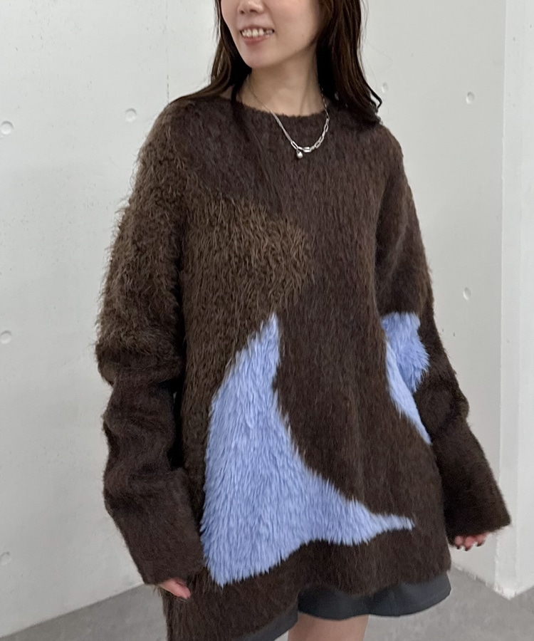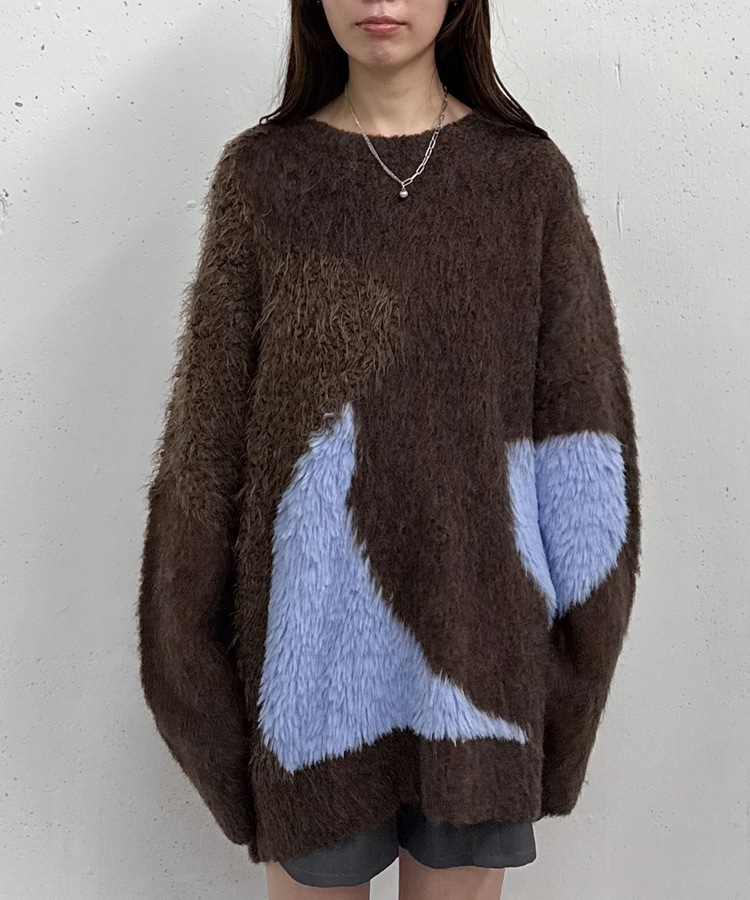 ハートインターシャミドルニットプルオーバー BROWN