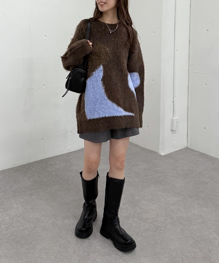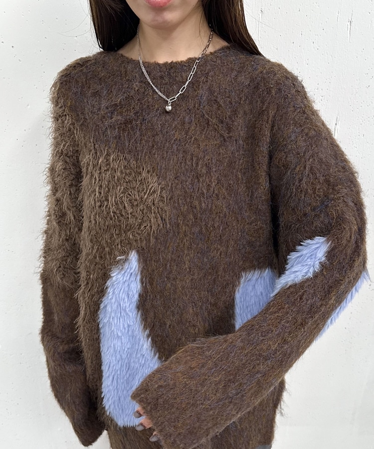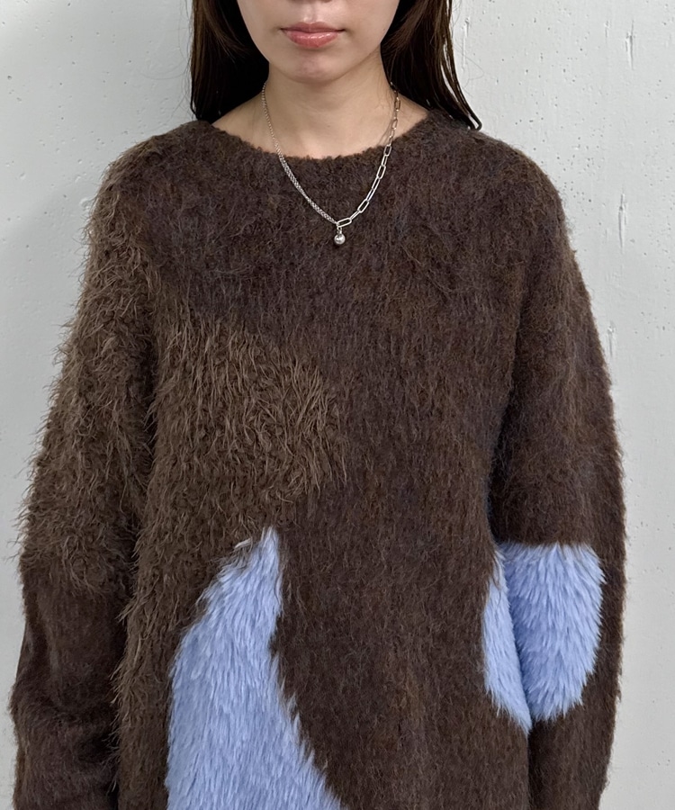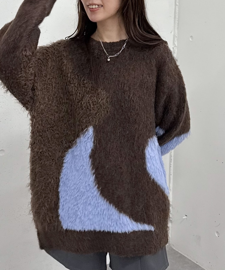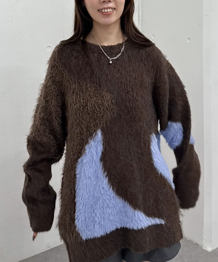切り替えとカラーが映えるニット。