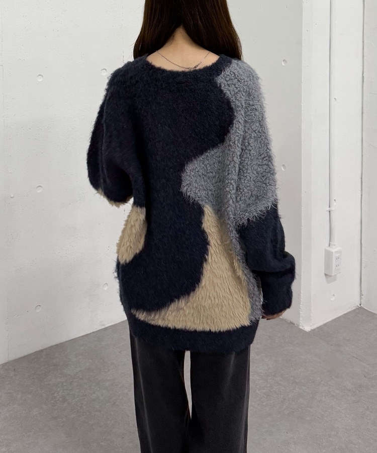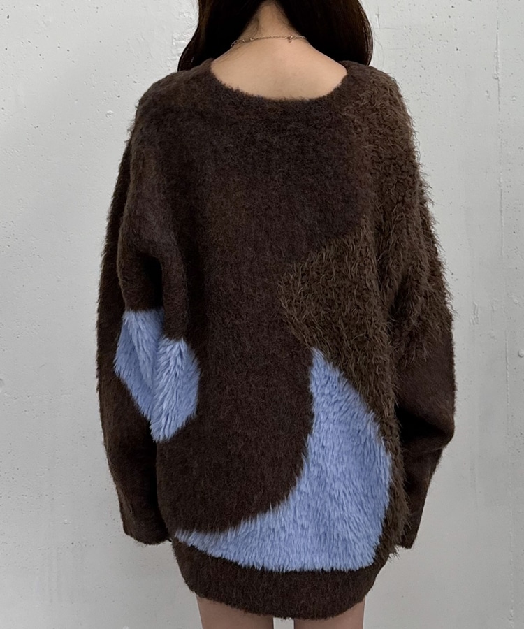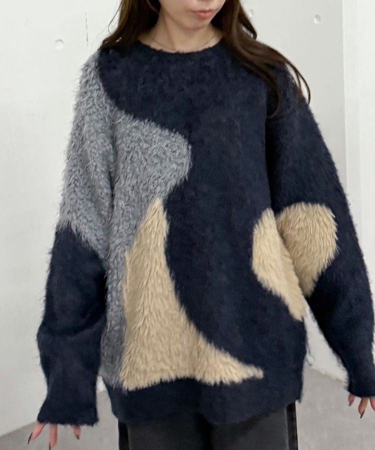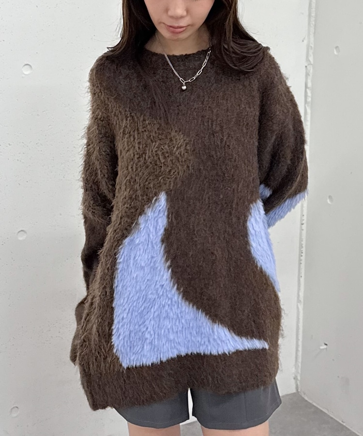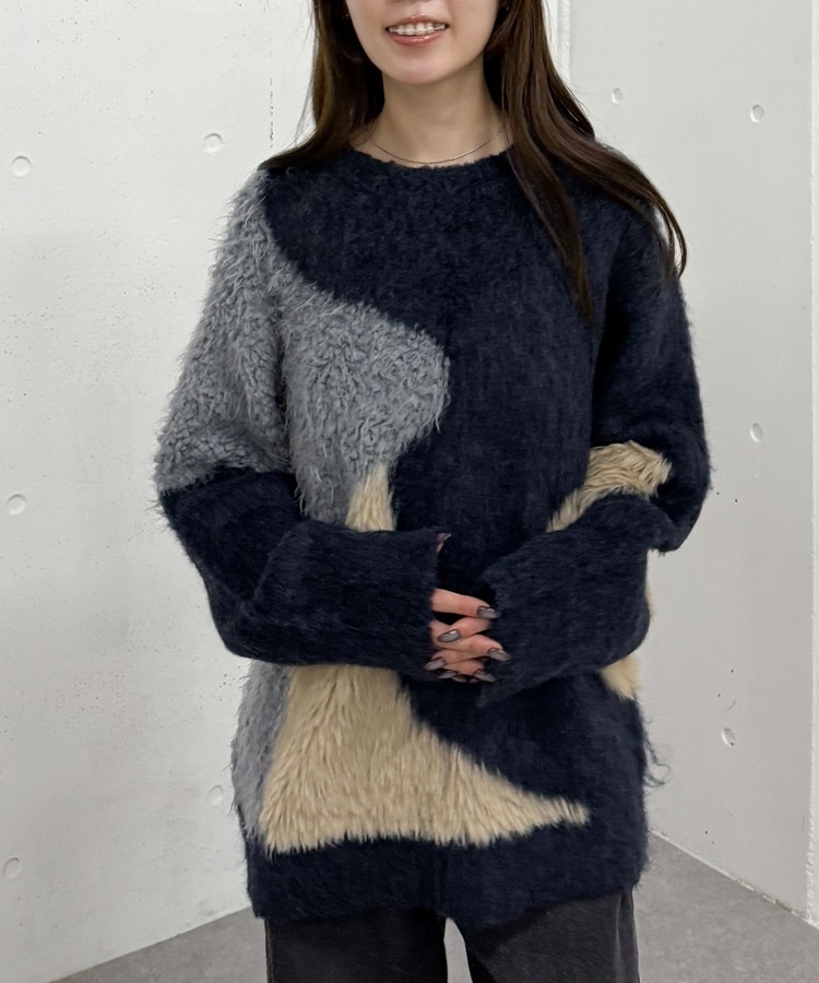 切り替えとカラーが映えるニット。