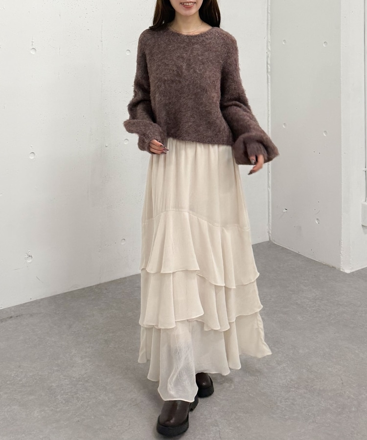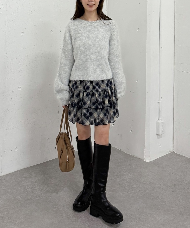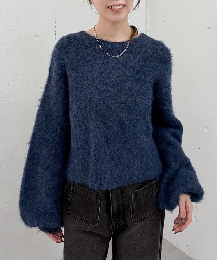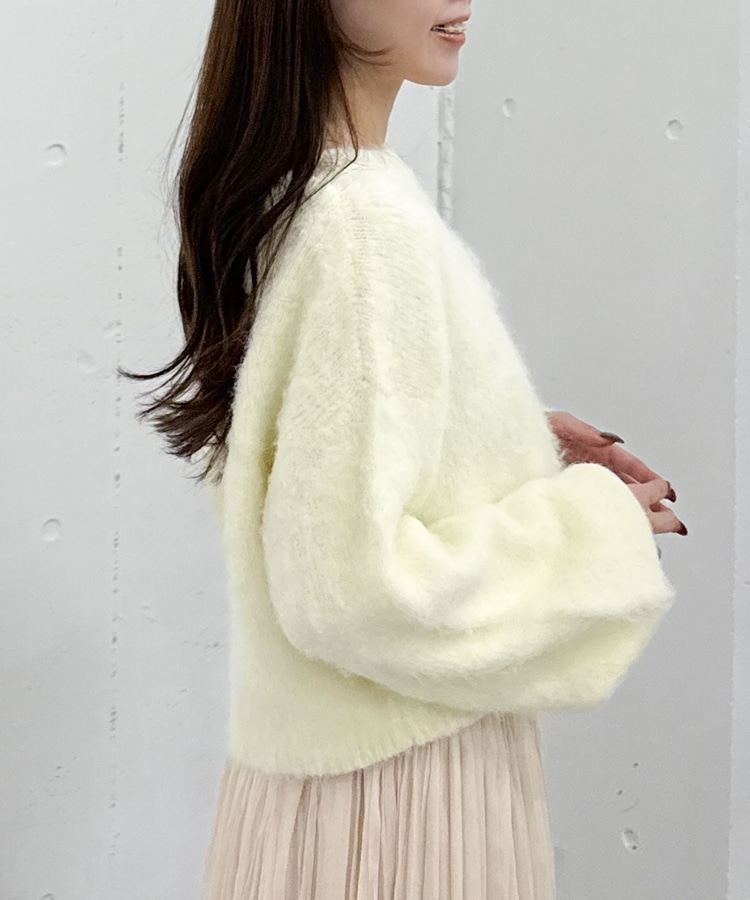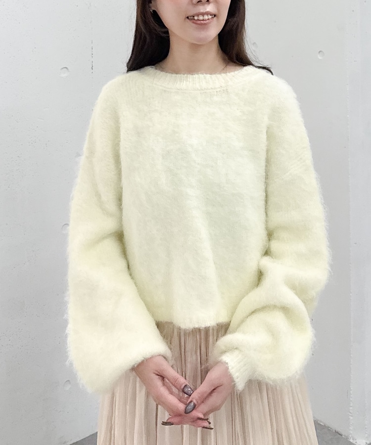 ふわふわな表面感とバックスタイルが可愛いニット。