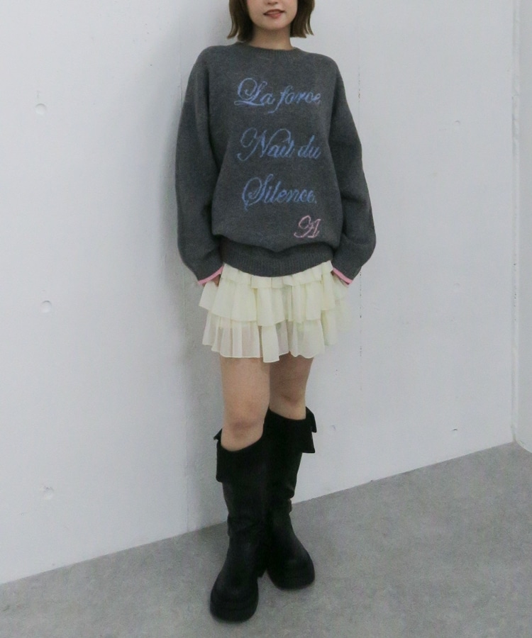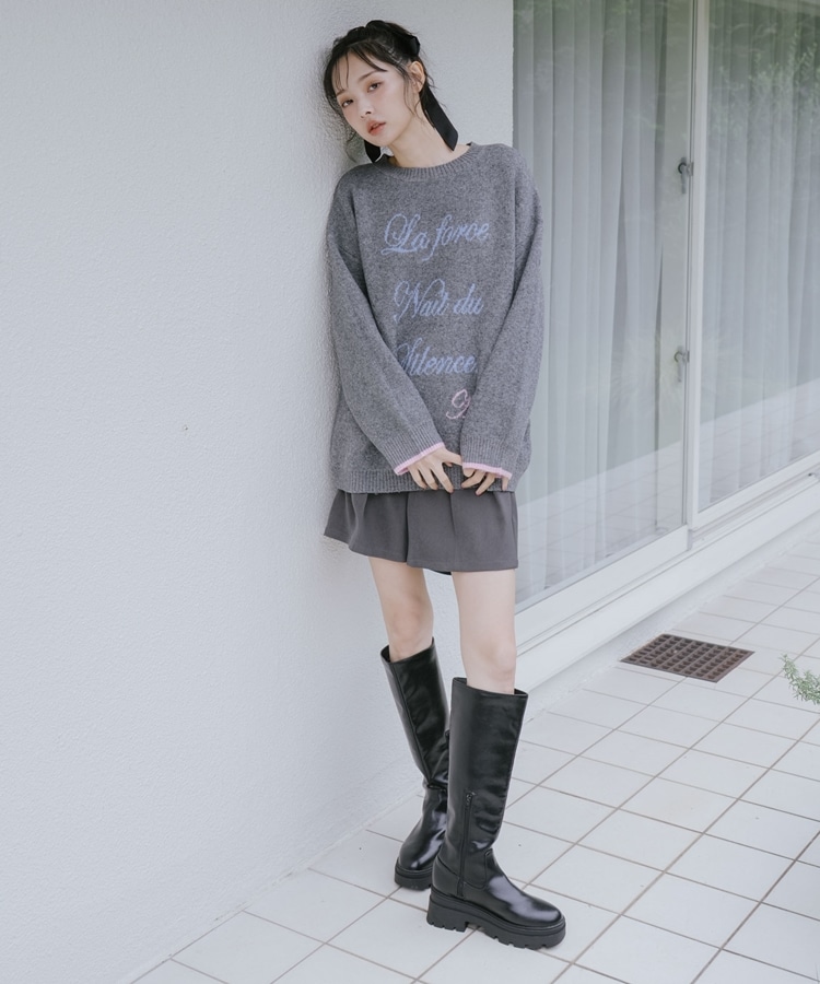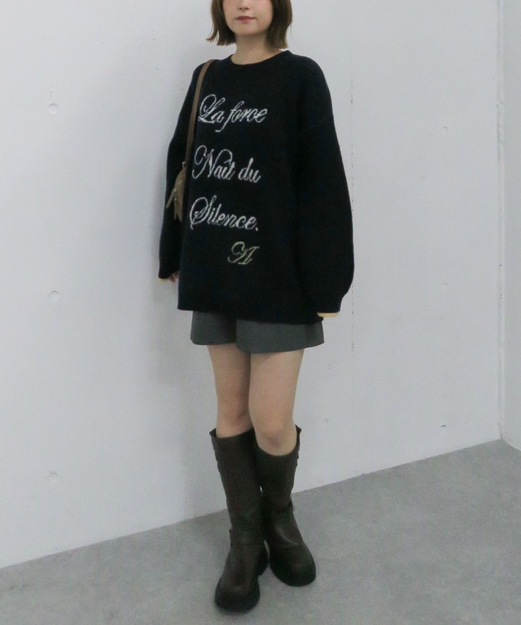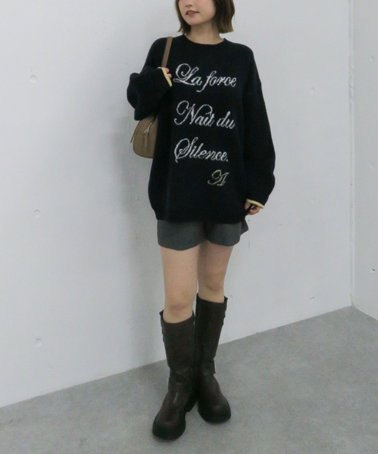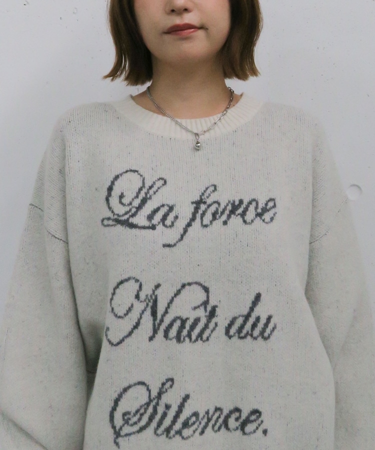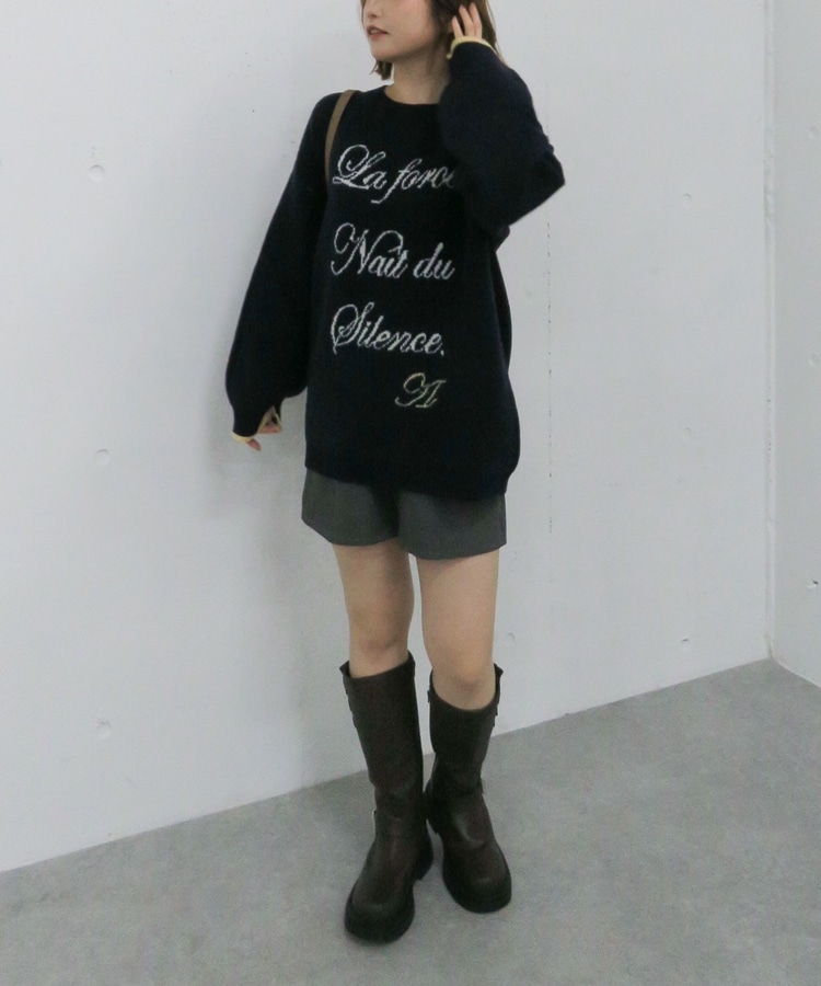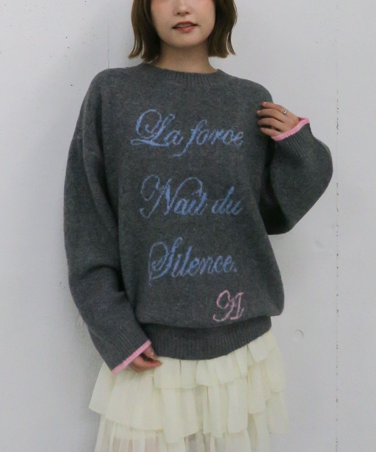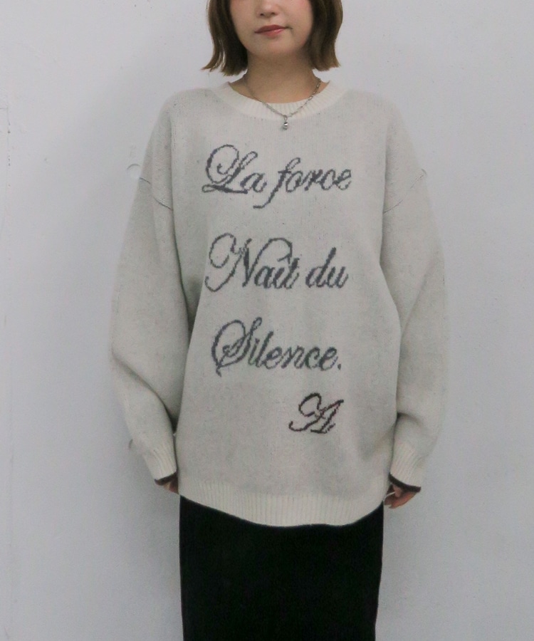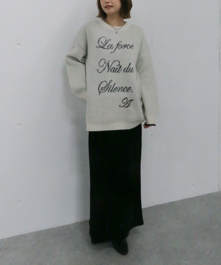 ■トレンドを着こなすならコレ■今季トレンドのロゴニット!カジュアルにもフェミニンにも着こなせます。オーバーにゆったりと着こなせるシルエット。腰が隠れるぐらいの丈感。しっかりとしたニット生地であたたかさも◎ロゴは筆記体で子供っぽくならず、どんな世代の方でも着こなして頂けます。ミニボトムでワンピース風に、スラックスやデニムを合わせてルーズに着るのもおススメです。ーーーーーーーーーーーーーーー透け感:なし裏地:なし伸縮性:あり光沢感:なし生地厚さ:厚め洗濯方法:手洗い推奨※詳しいお手入れ方法は商品についているタグをご覧くださいーーーーーーーーーーーーーーー※ご利用のモニター環境により、実際の色味と多少異なる場合がございます。