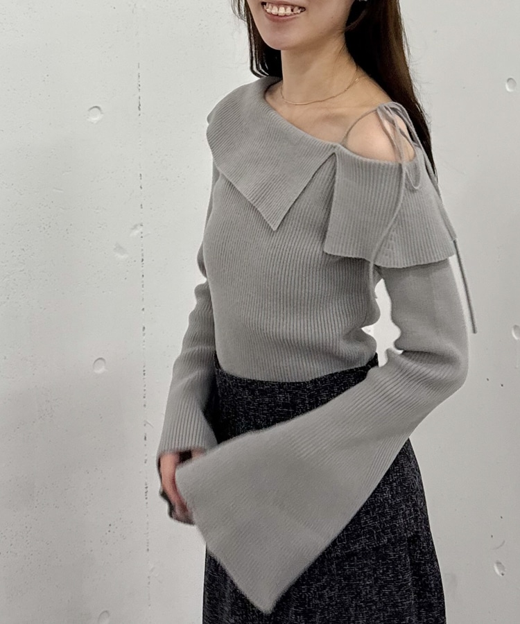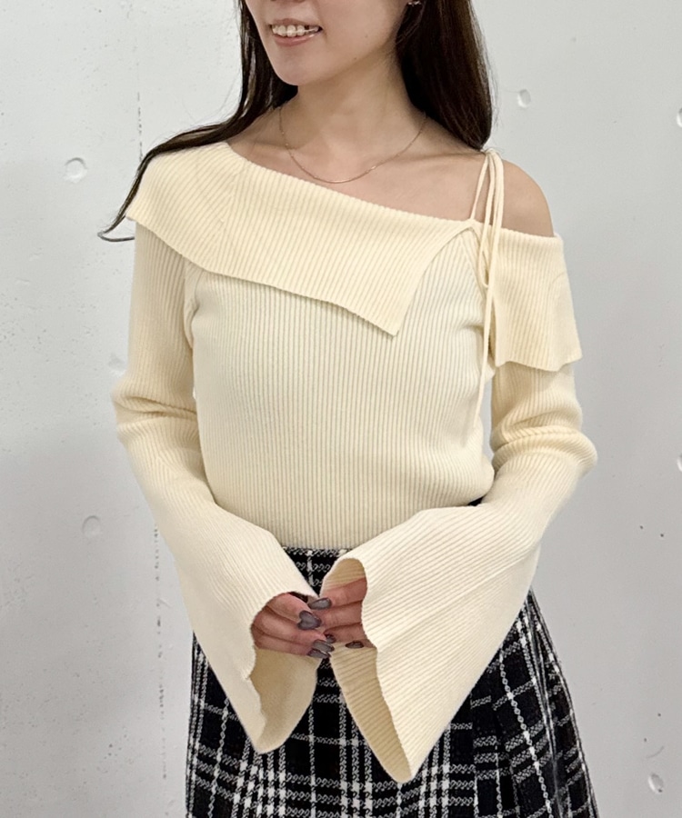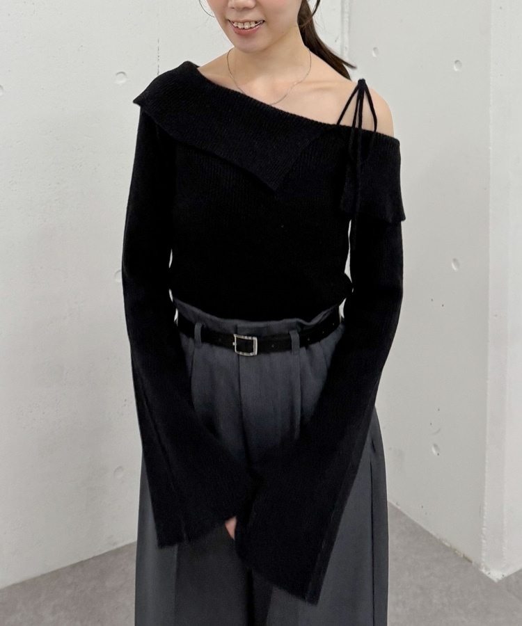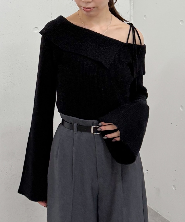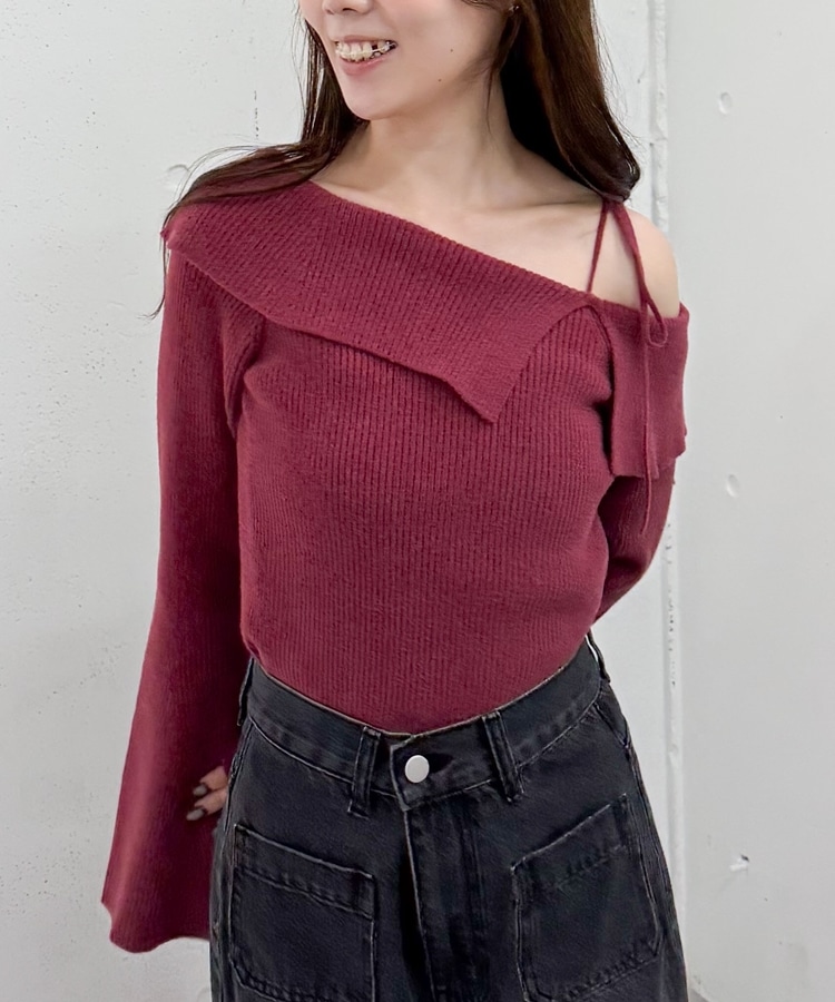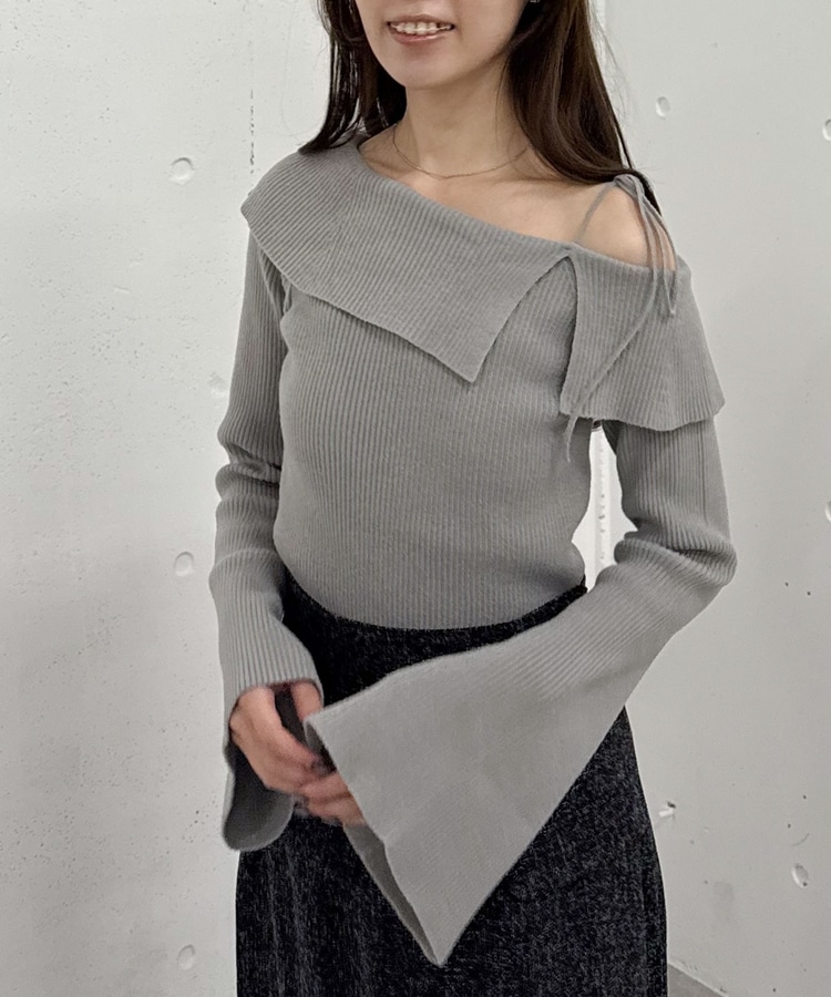 ■すっきり着られるあざとニット■フレアスリーブとワンショルのあざとさ全開のニット。程よい起毛感がありますがリブですっきり着こなせます。どんなボトムでも相性抜群◎ミニボトムで着ても、スラックスなどで大人っぽくも着まわせます!アウターのインにもピッタリな素材感!冬コーデに欠かせない一枚です。ーーーーーーーーーーーーーーー透け感:なし裏地:なし伸縮性:あり光沢感:なし生地厚さ:普通洗濯方法:手洗い推奨※詳しいお手入れ方法は商品についているタグをご覧くださいーーーーーーーーーーーーーーー※ご利用のモニター環境により、実際の色味と多少異なる場合がございます。