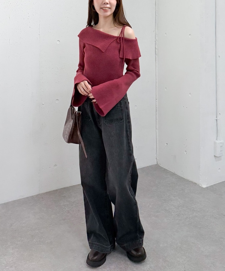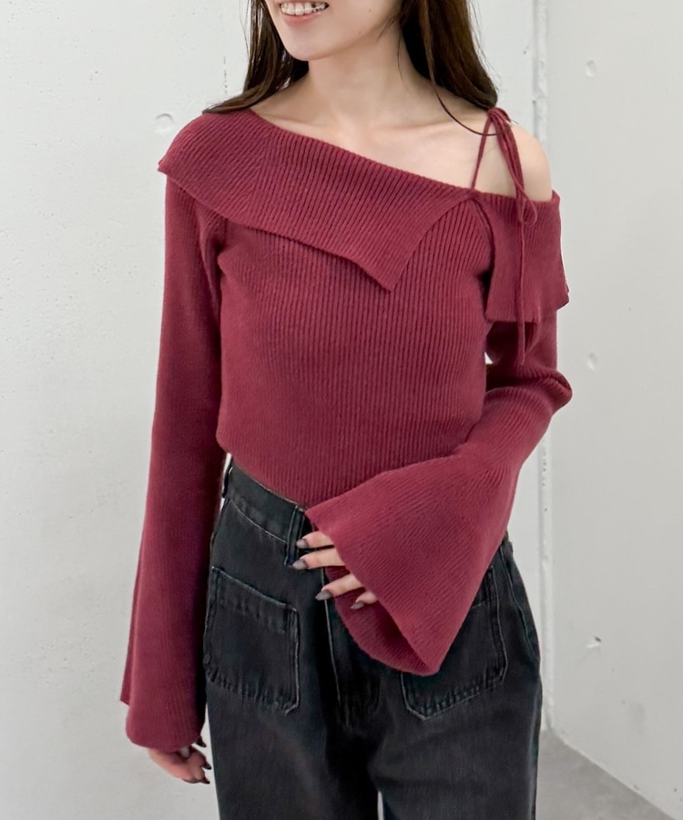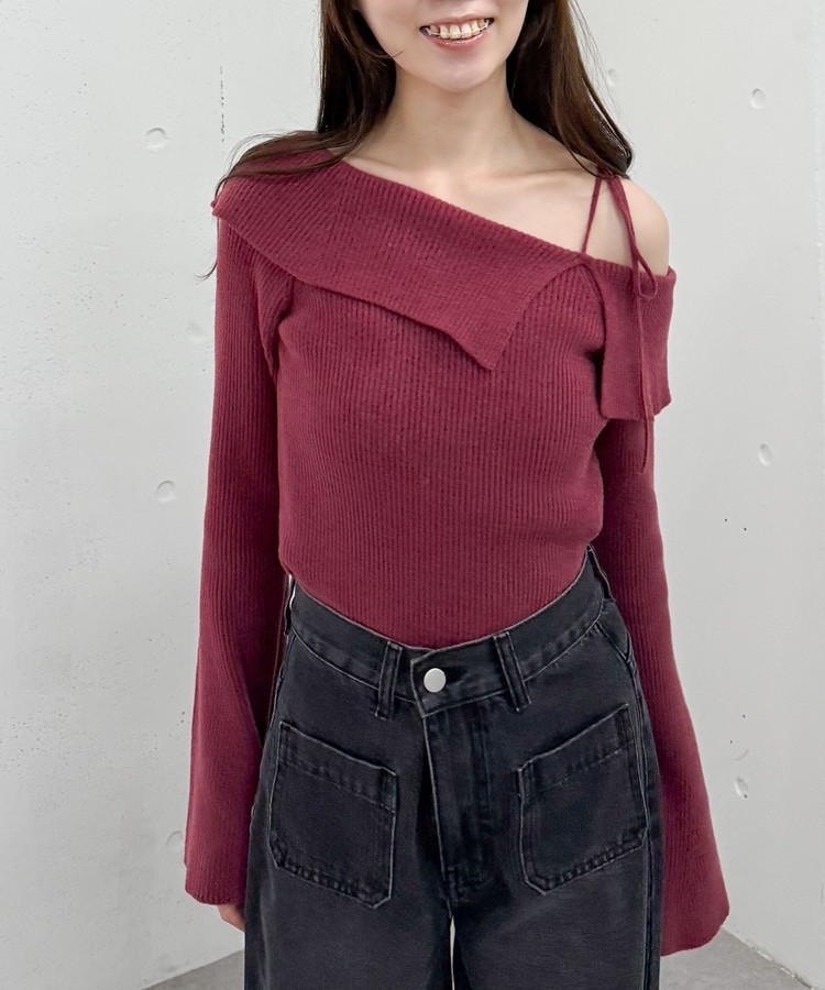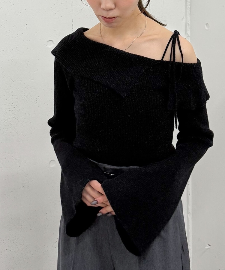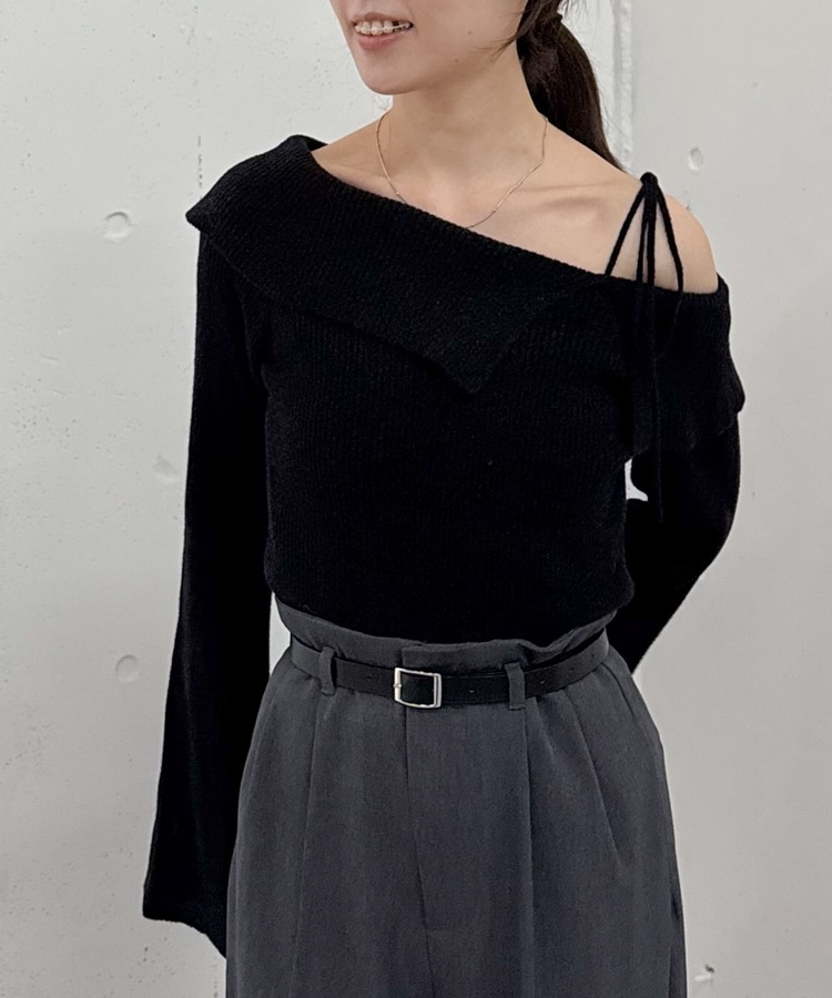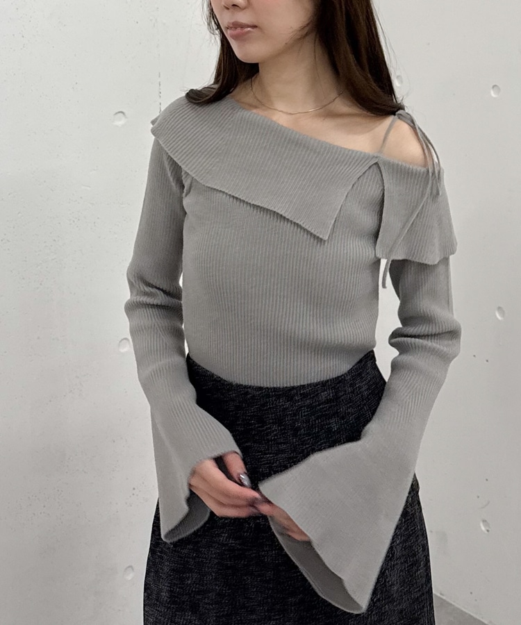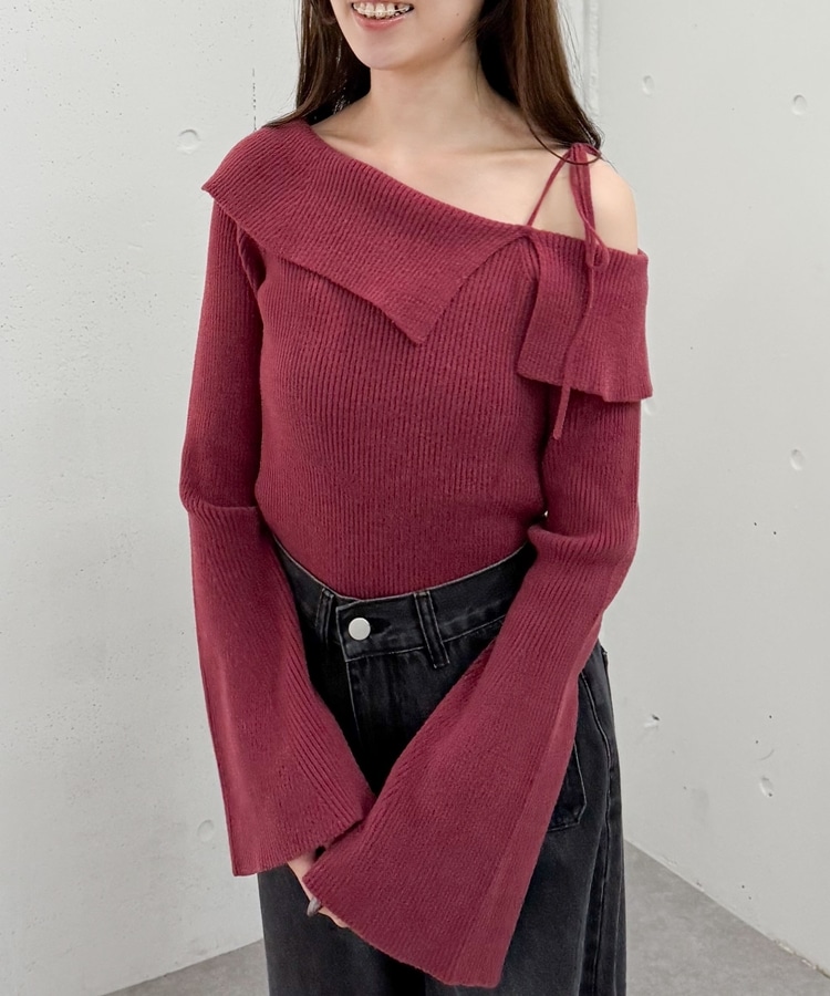 ■すっきり着られるあざとニット■フレアスリーブとワンショルのあざとさ全開のニット。程よい起毛感がありますがリブですっきり着こなせます。どんなボトムでも相性抜群◎ミニボトムで着ても、スラックスなどで大人っぽくも着まわせます!アウターのインにもピッタリな素材感!冬コーデに欠かせない一枚です。ーーーーーーーーーーーーーーー透け感:なし裏地:なし伸縮性:あり光沢感:なし生地厚さ:普通洗濯方法:手洗い推奨※詳しいお手入れ方法は商品についているタグをご覧くださいーーーーーーーーーーーーーーー※ご利用のモニター環境により、実際の色味と多少異なる場合がございます。