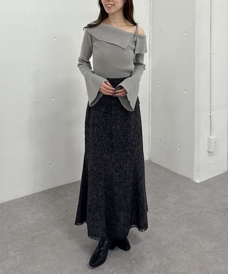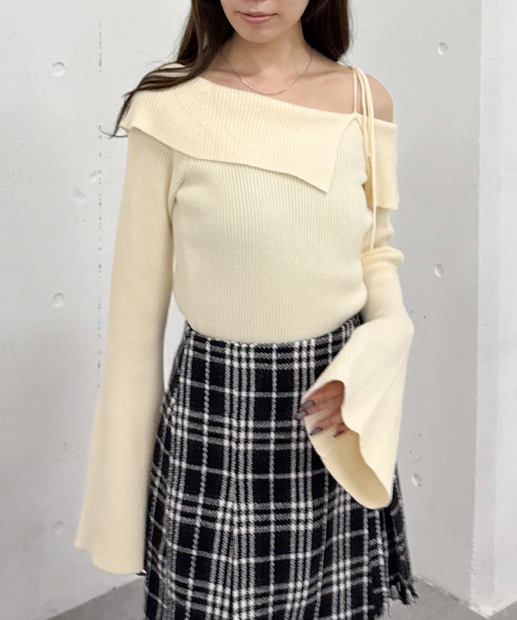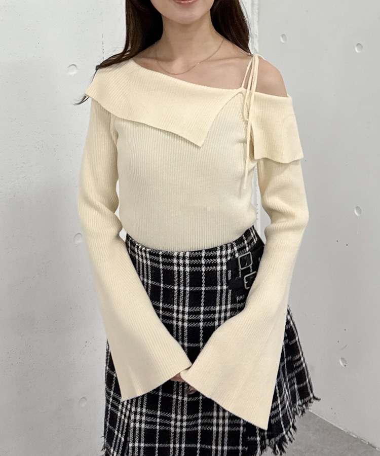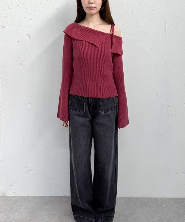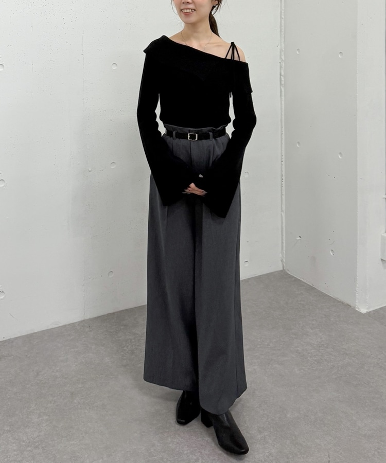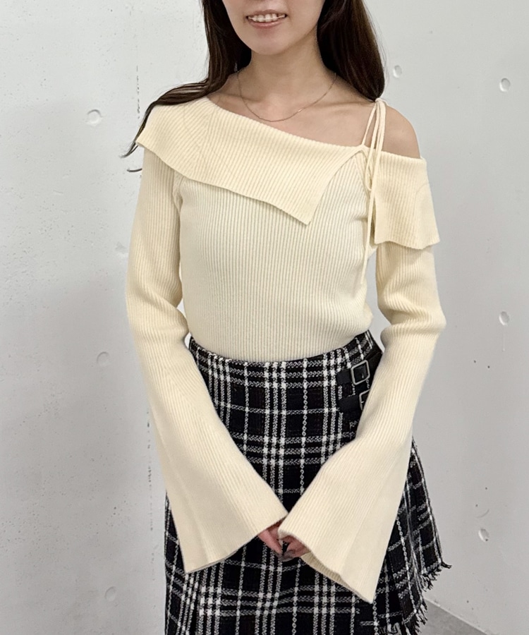■すっきり着られるあざとニット■フレアスリーブとワンショルのあざとさ全開のニット。程よい起毛感がありますがリブですっきり着こなせます。どんなボトムでも相性抜群◎ミニボトムで着ても、スラックスなどで大人っぽくも着まわせます!アウターのインにもピッタリな素材感!冬コーデに欠かせない一枚です。ーーーーーーーーーーーーーーー透け感:なし裏地:なし伸縮性:あり光沢感:なし生地厚さ:普通洗濯方法:手洗い推奨※詳しいお手入れ方法は商品についているタグをご覧くださいーーーーーーーーーーーーーーー※ご利用のモニター環境により、実際の色味と多少異なる場合がございます。