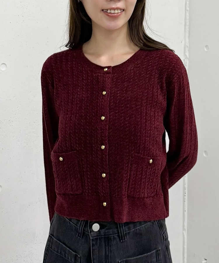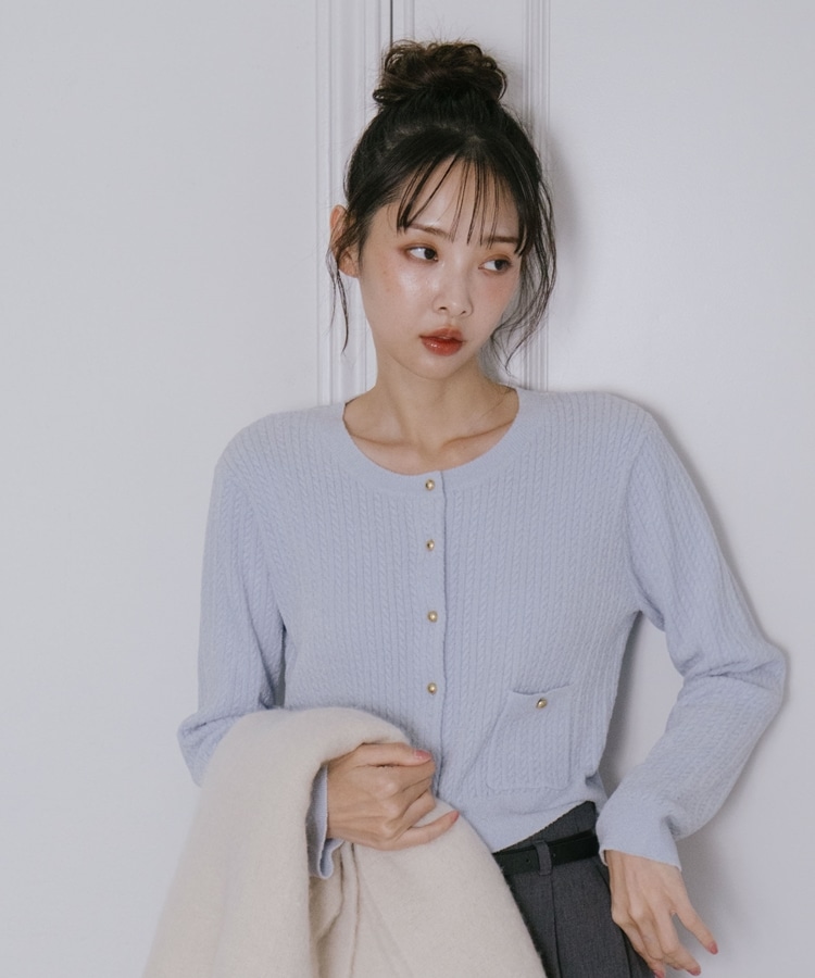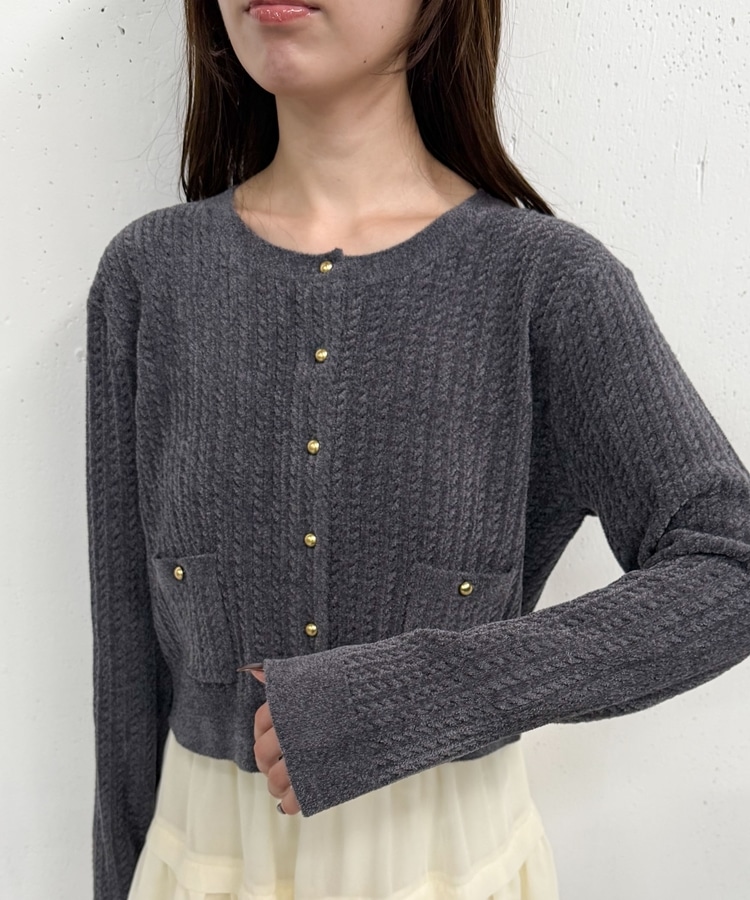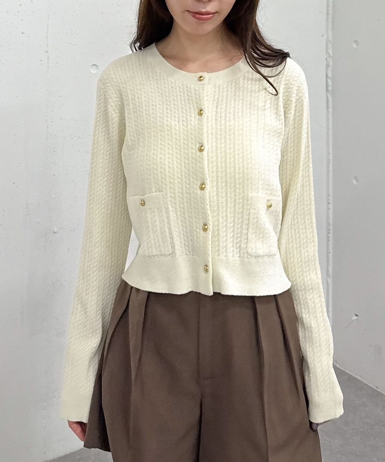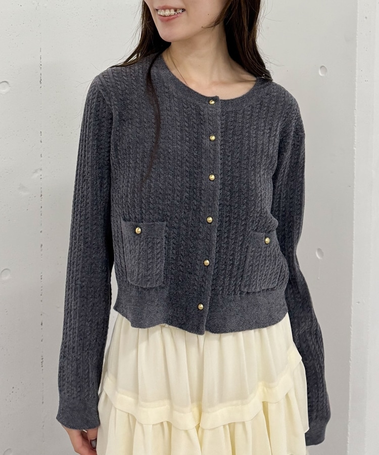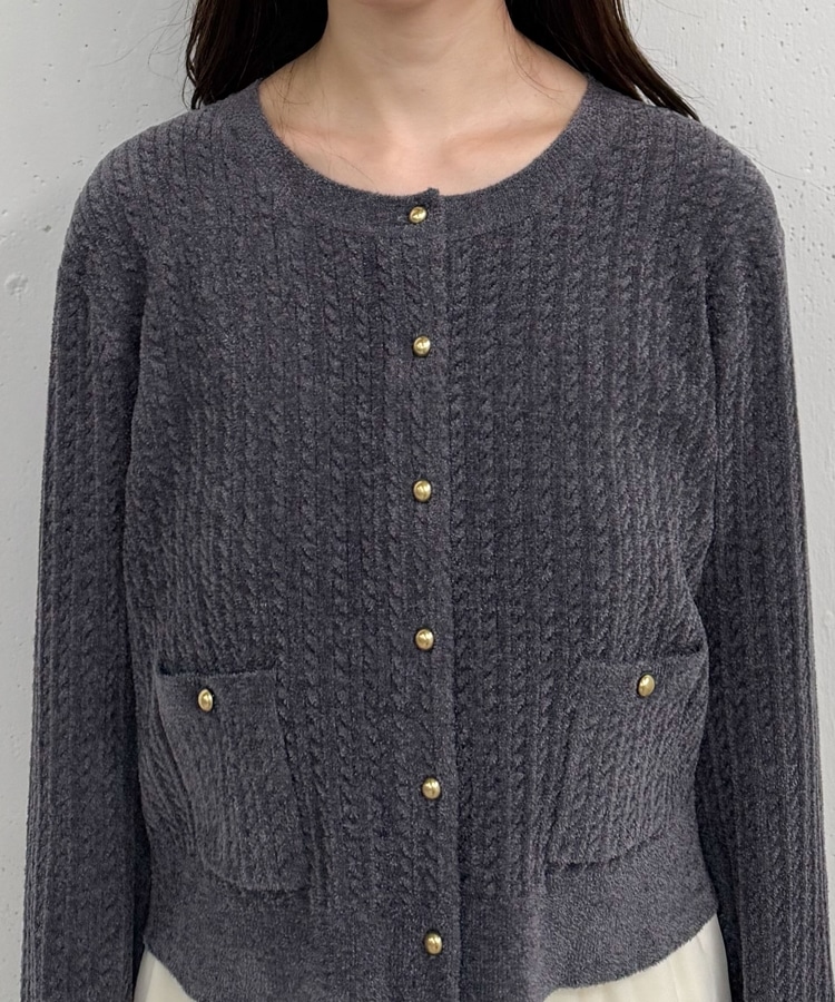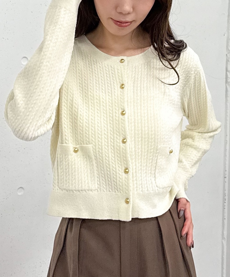 ■金ボタン×もちもちケーブル冬の主役カーディガン■