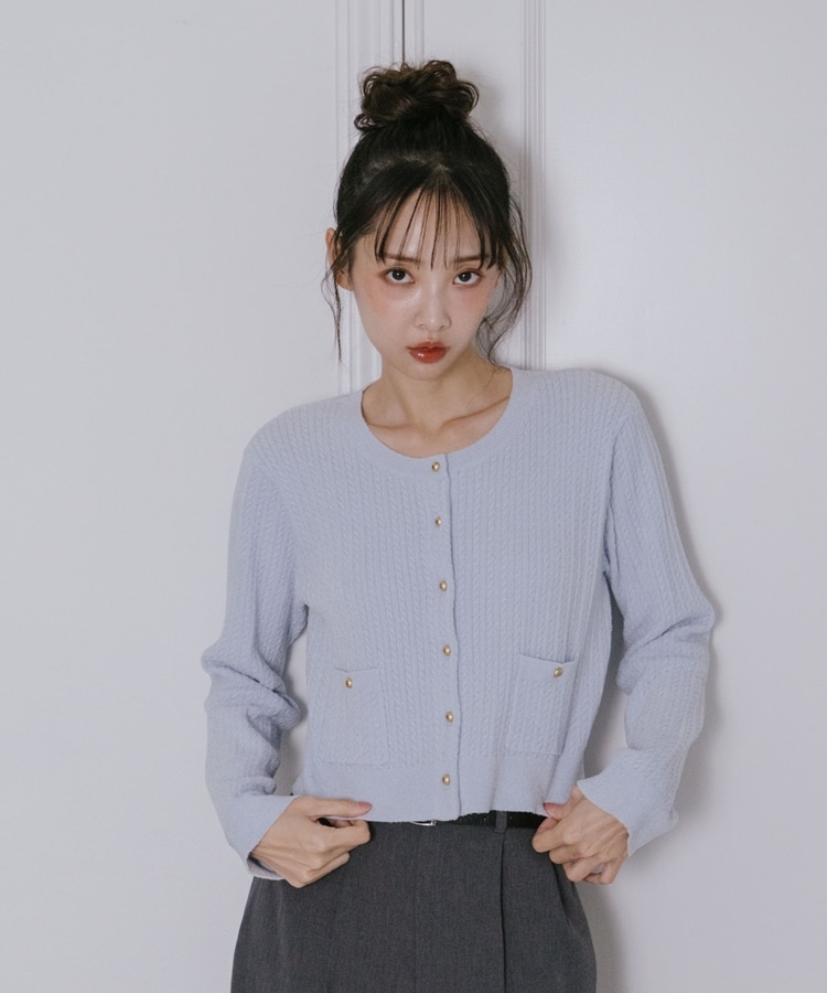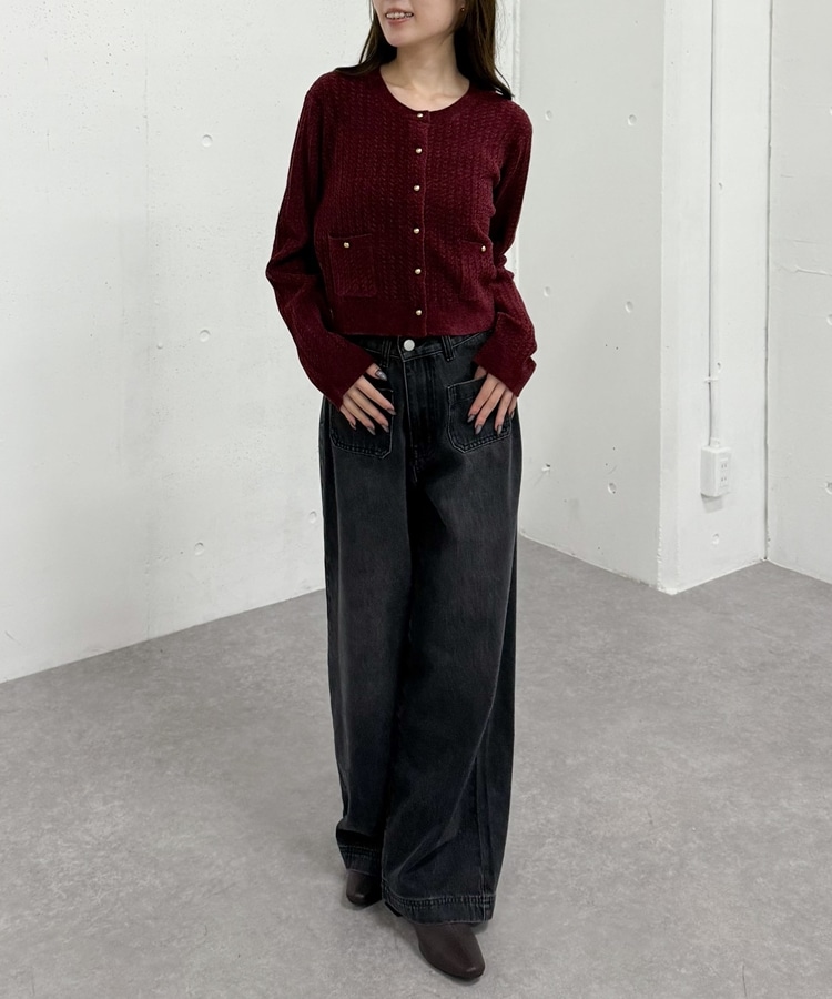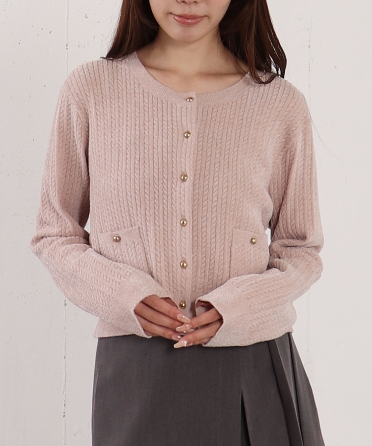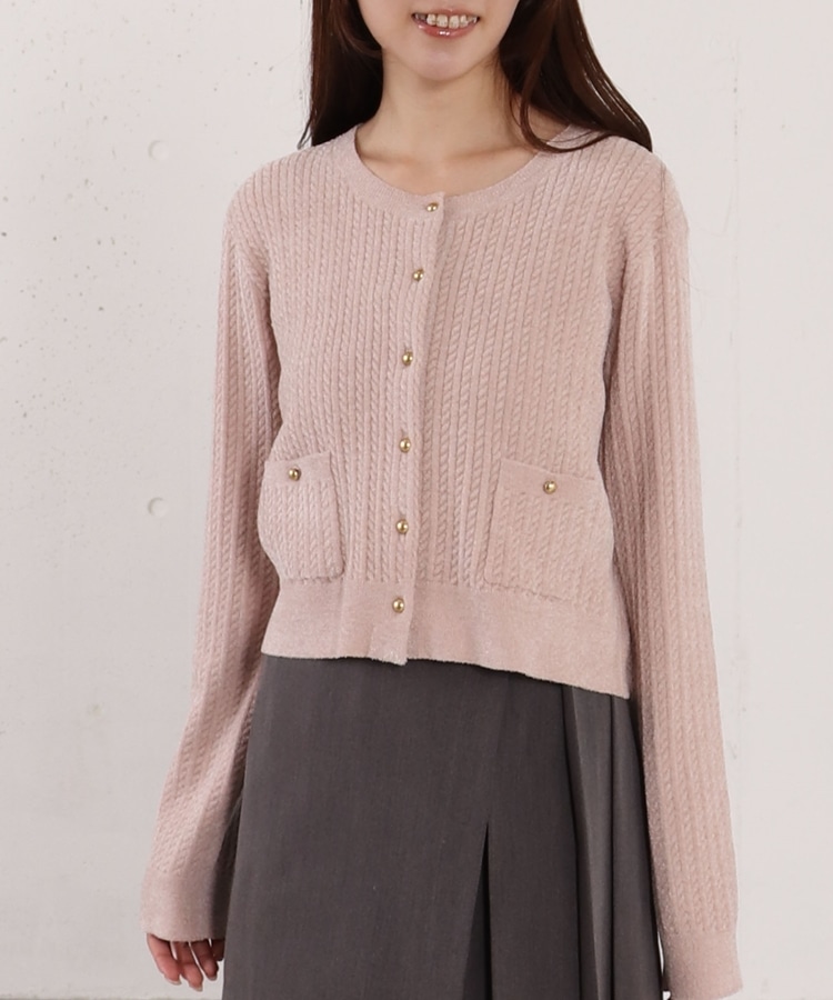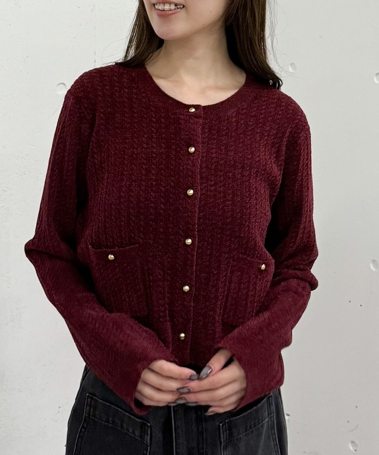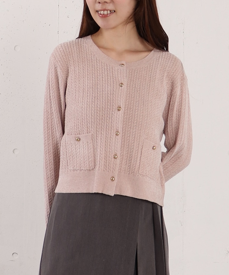 ■金ボタン×もちもちケーブル冬の主役カーディガン■