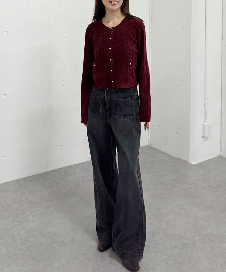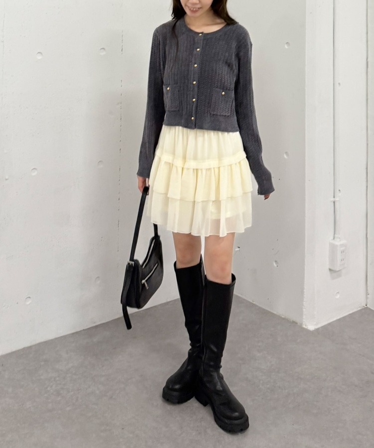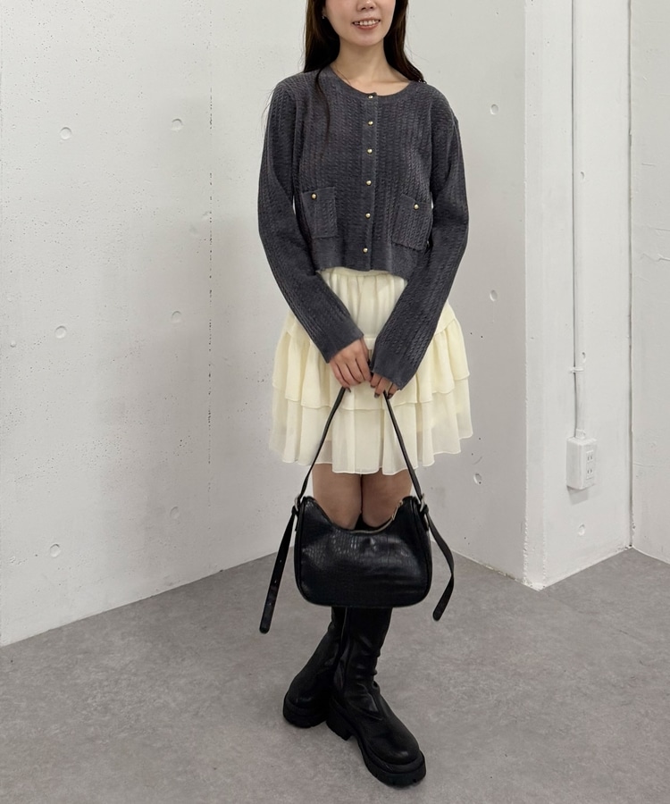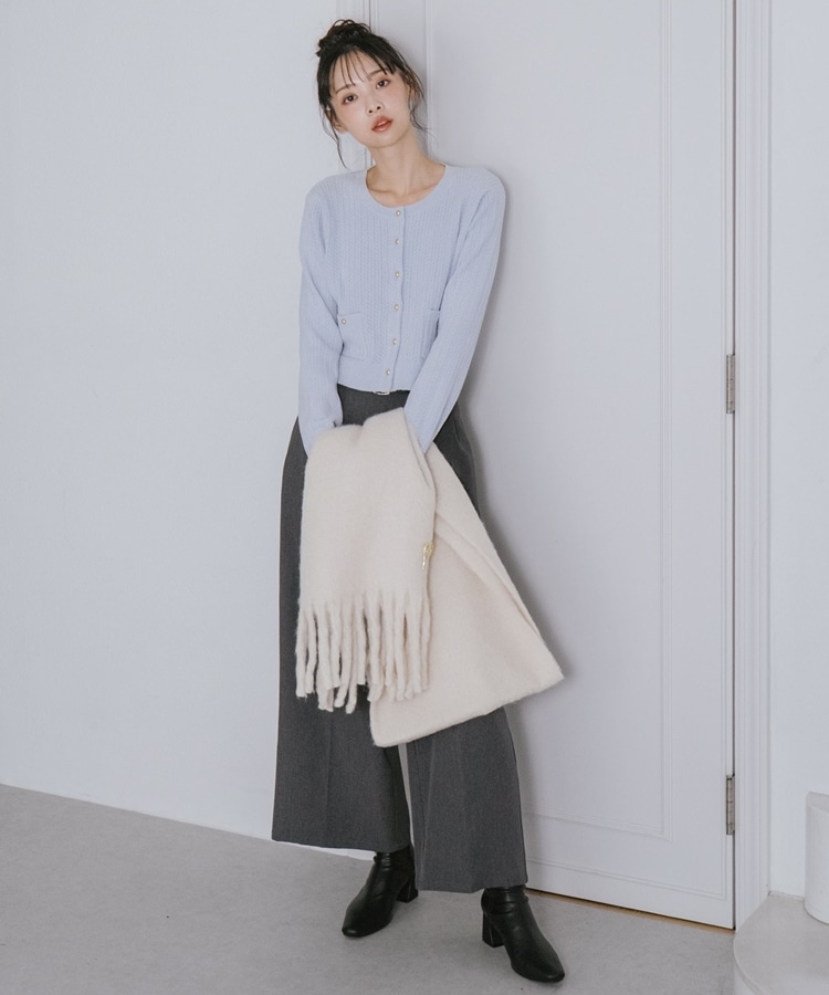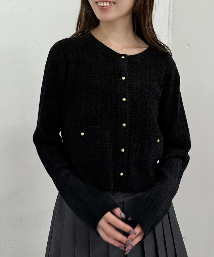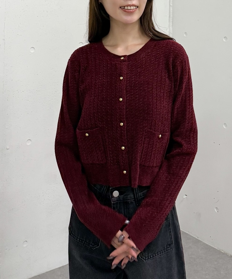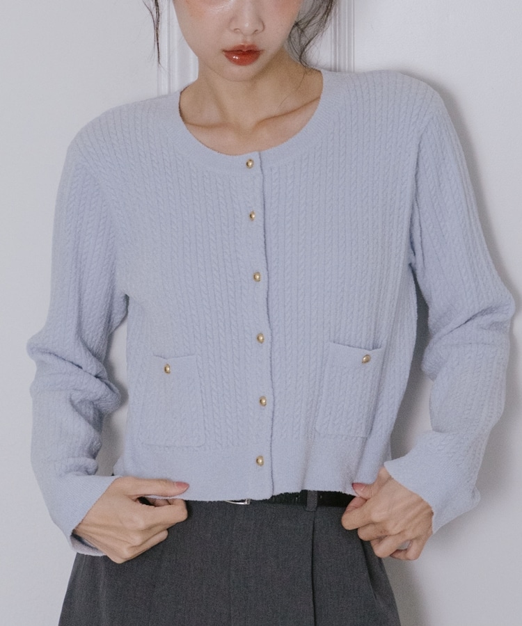 ■金ボタン×もちもちケーブル冬の主役カーディガン■