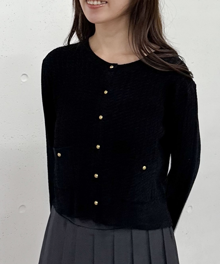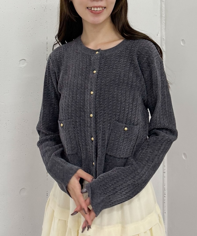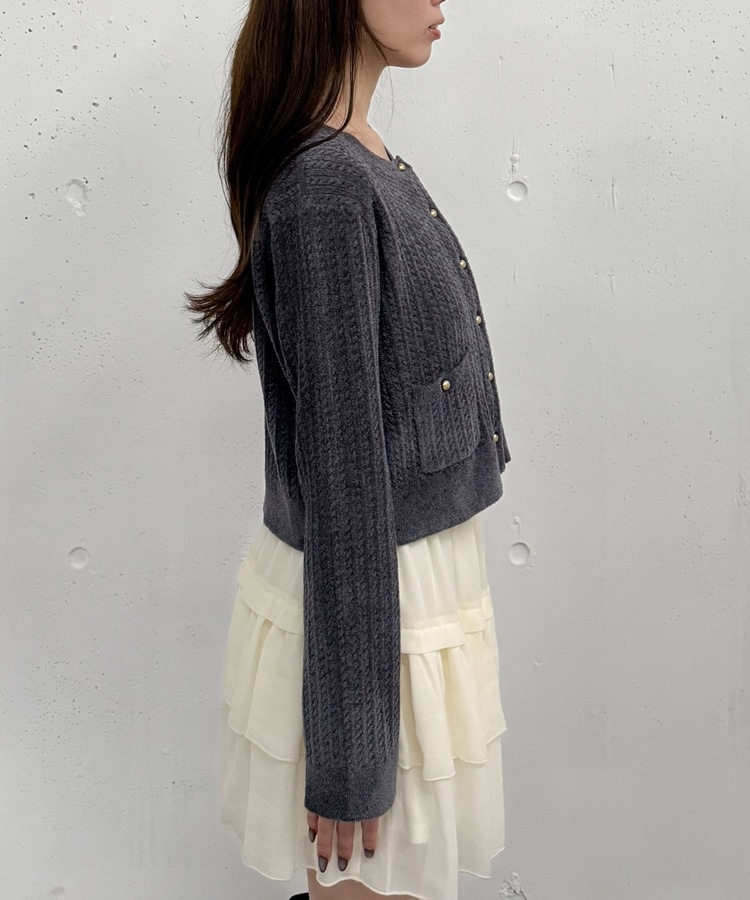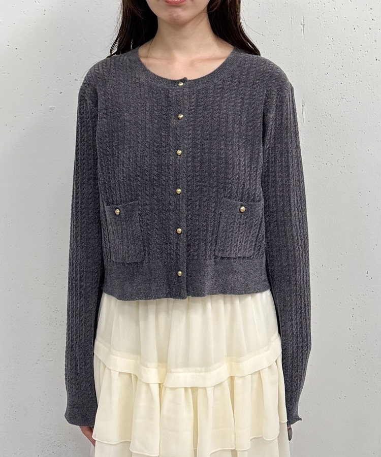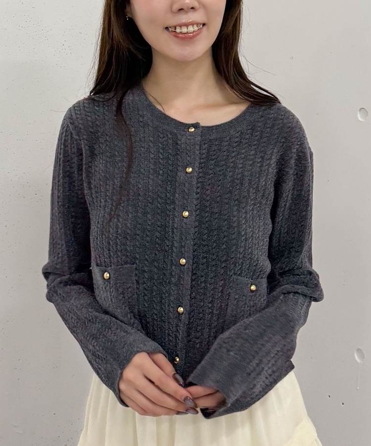 モールケーブル金ボタンニットカーディガン CHARCOAL GRAY