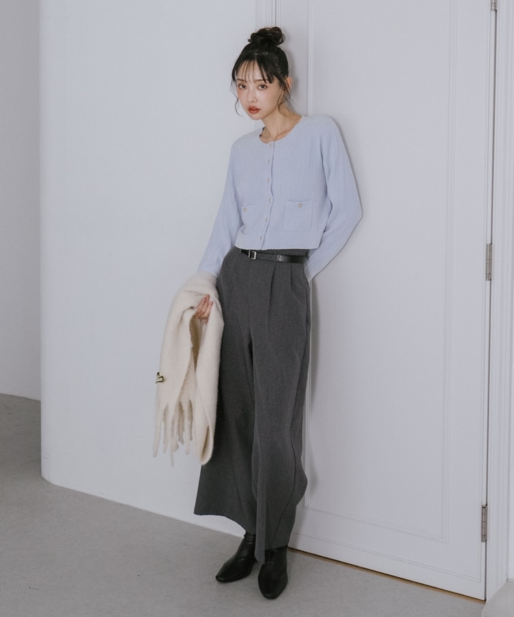 首元のクルーネックは詰まりすぎず、どんな骨格の方でも着こなせます。