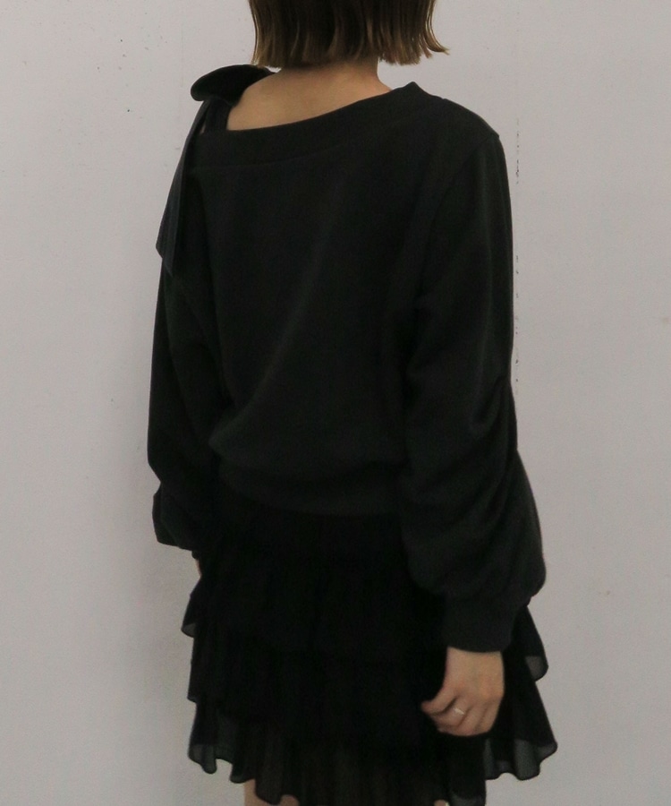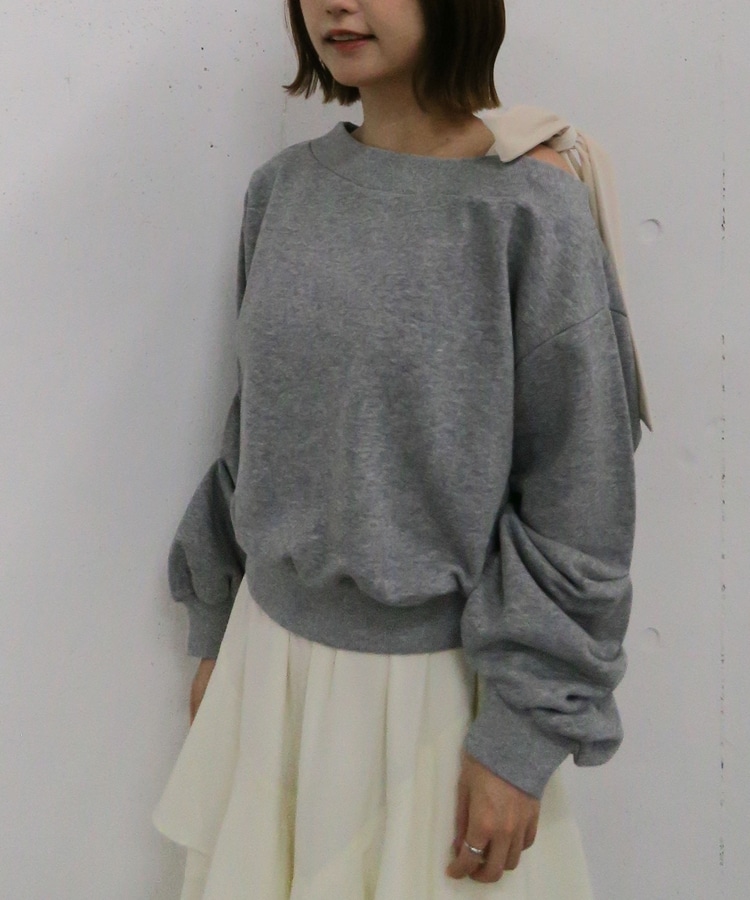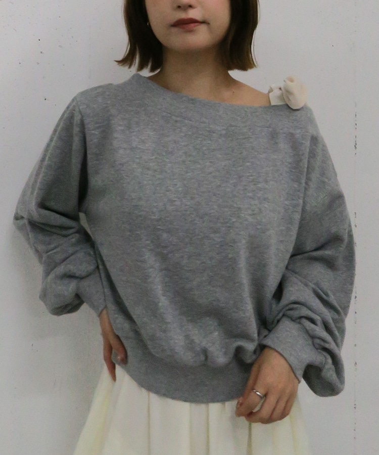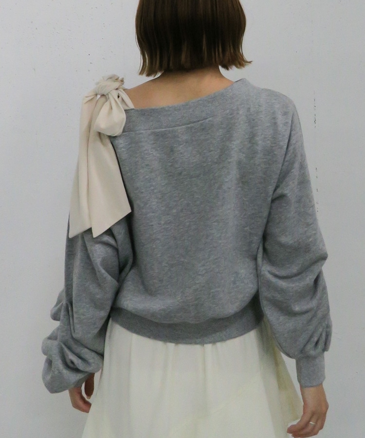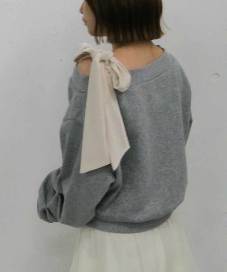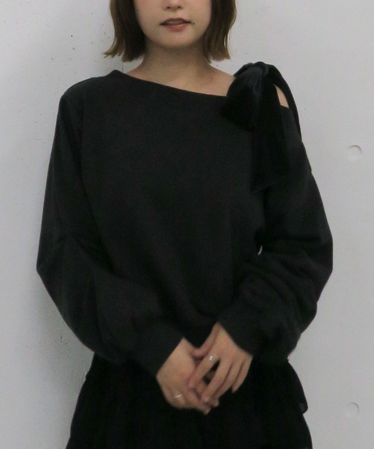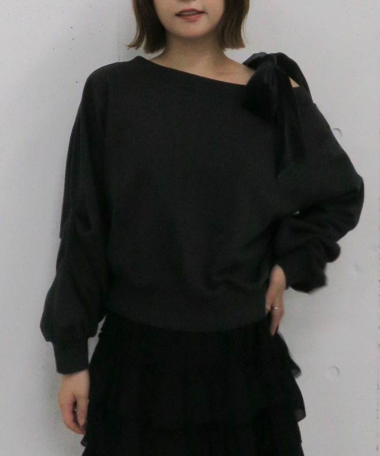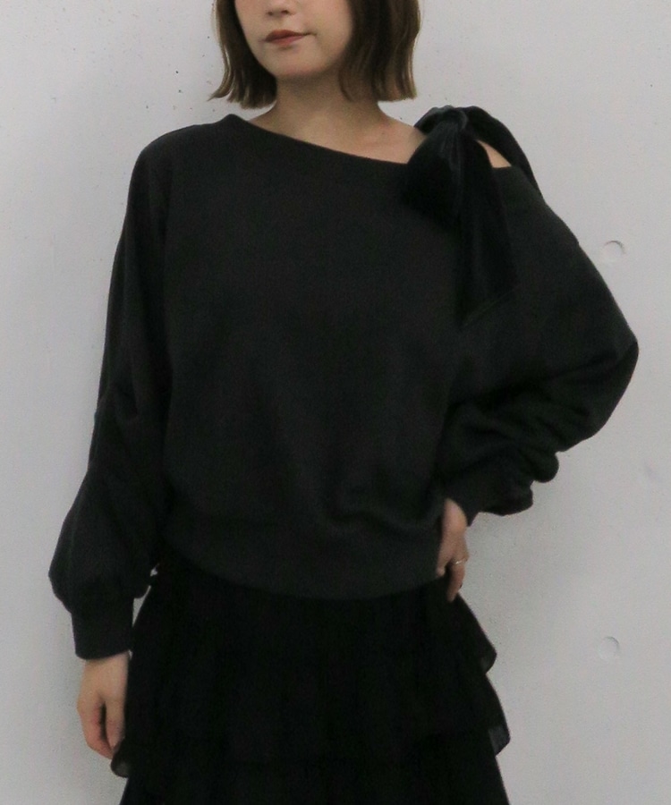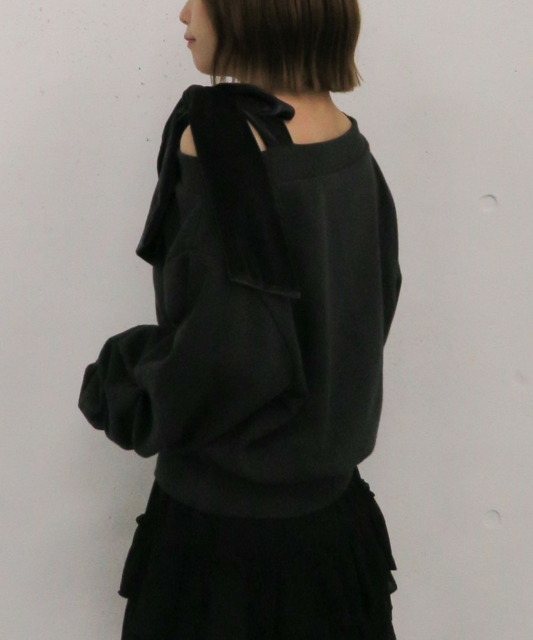 ベロアリボンタックオフショルスウェット CHARCOAL GRAY