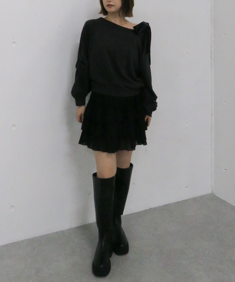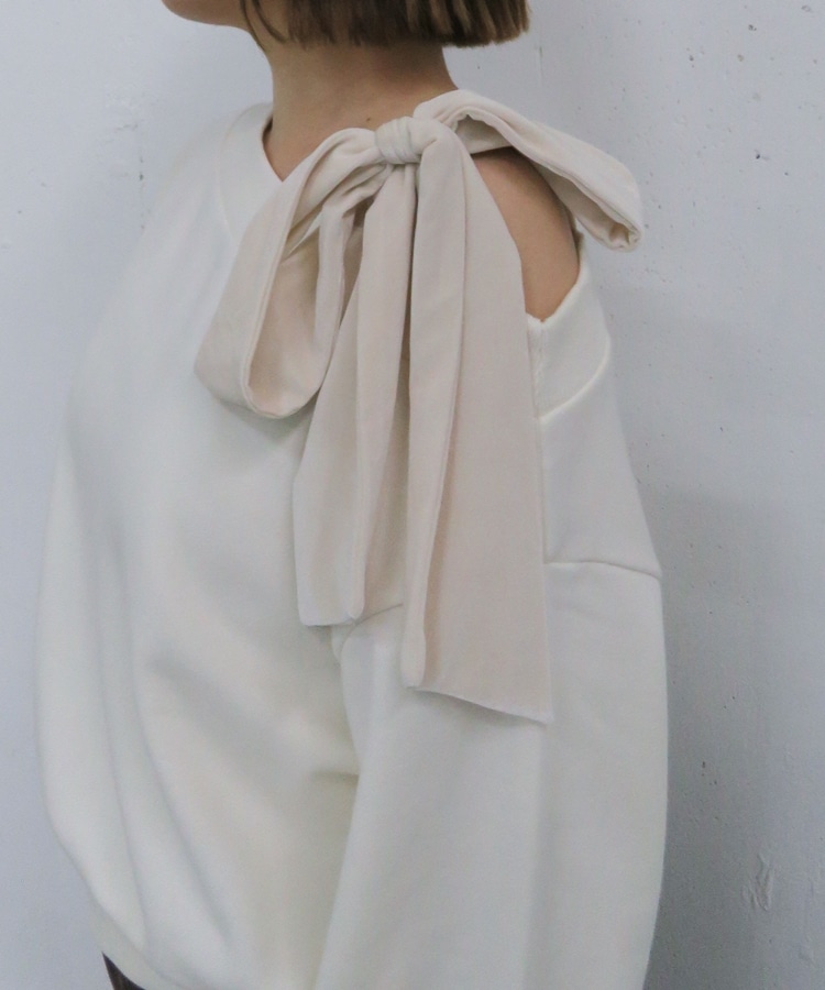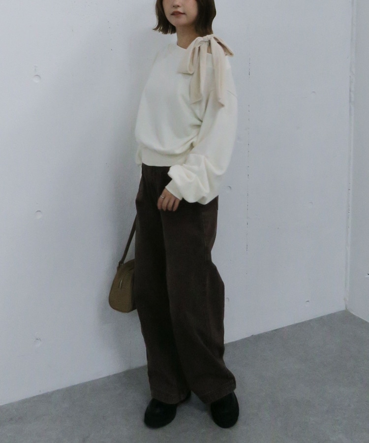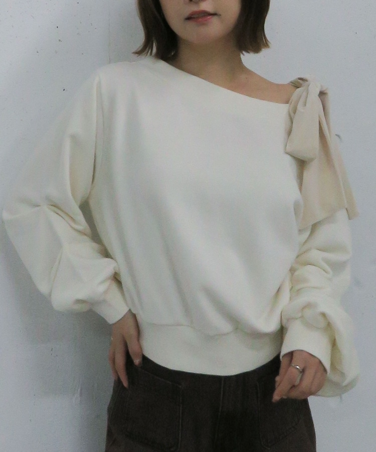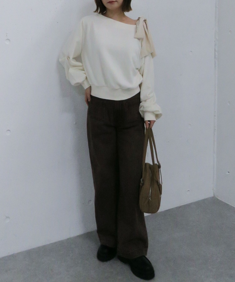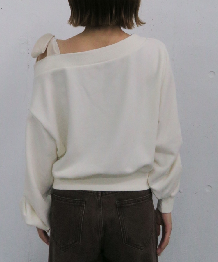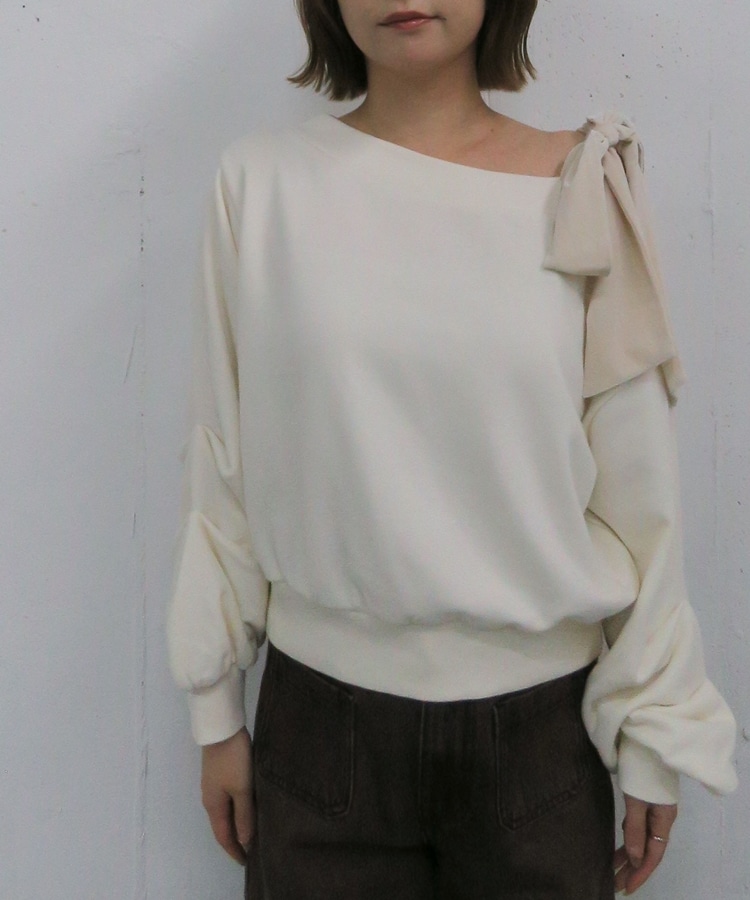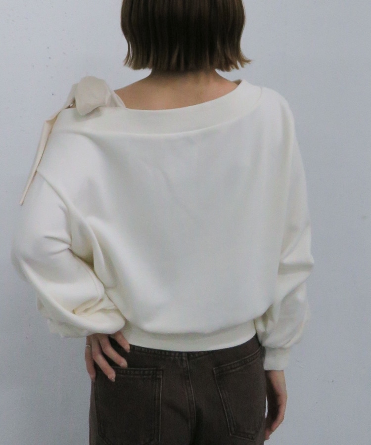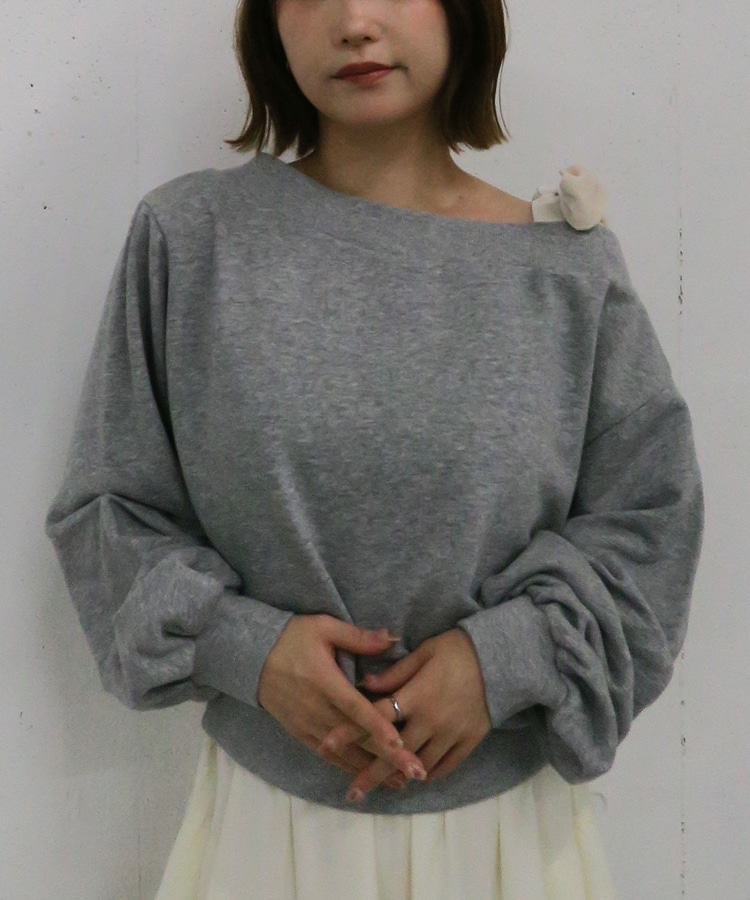 ベロアリボンタックオフショルスウェット CHARCOAL GRAY