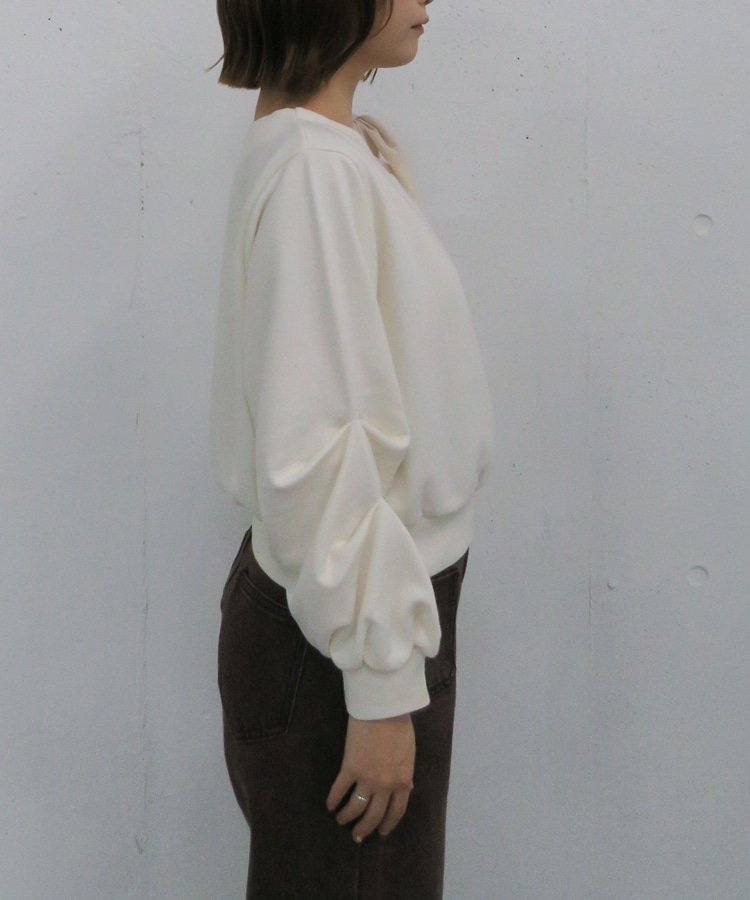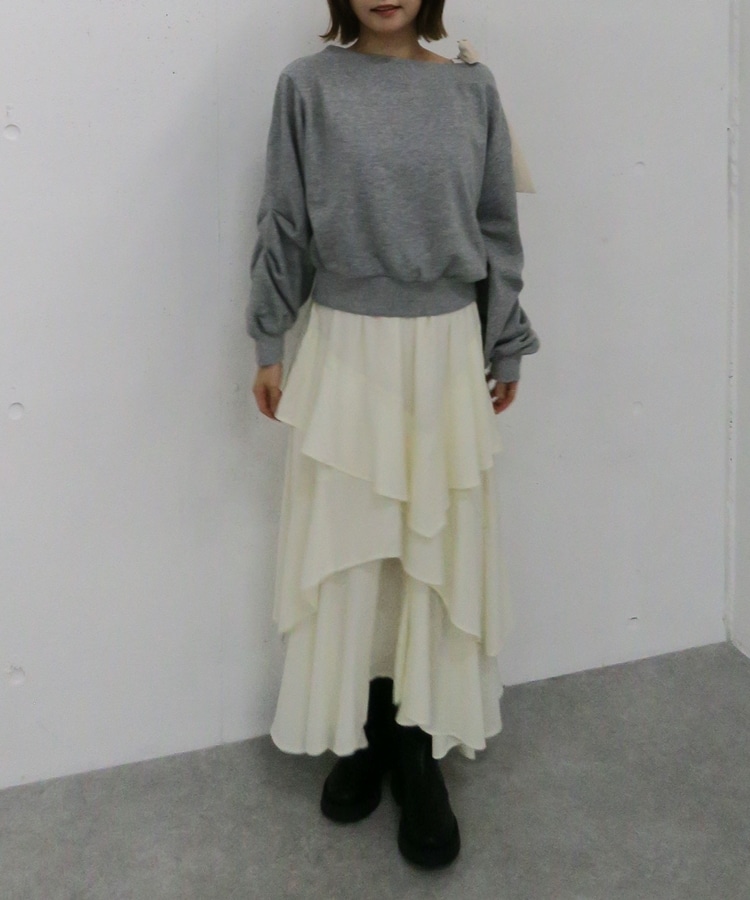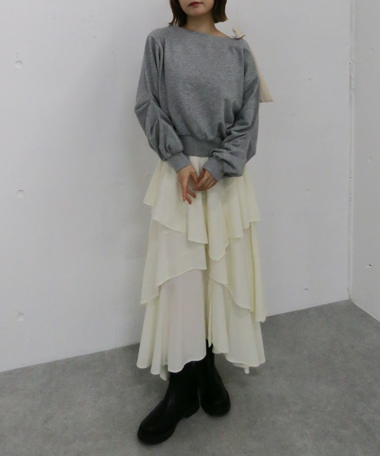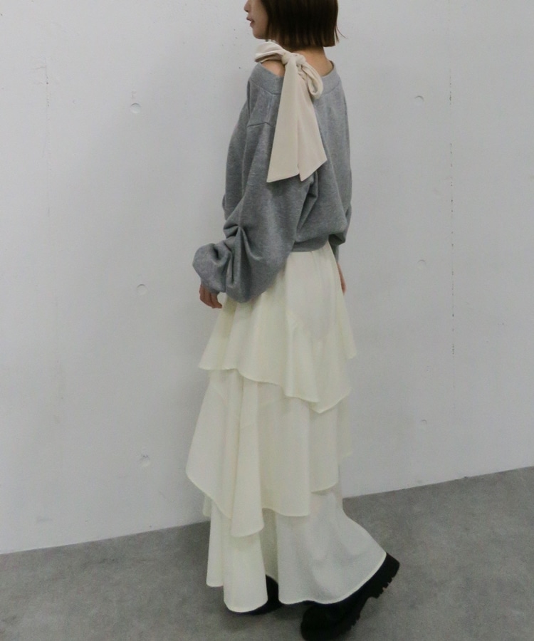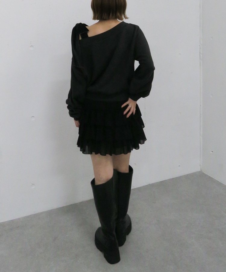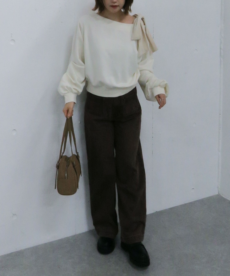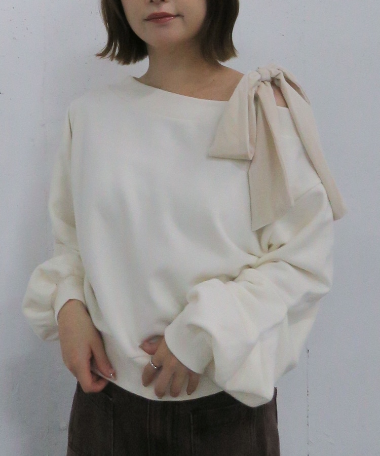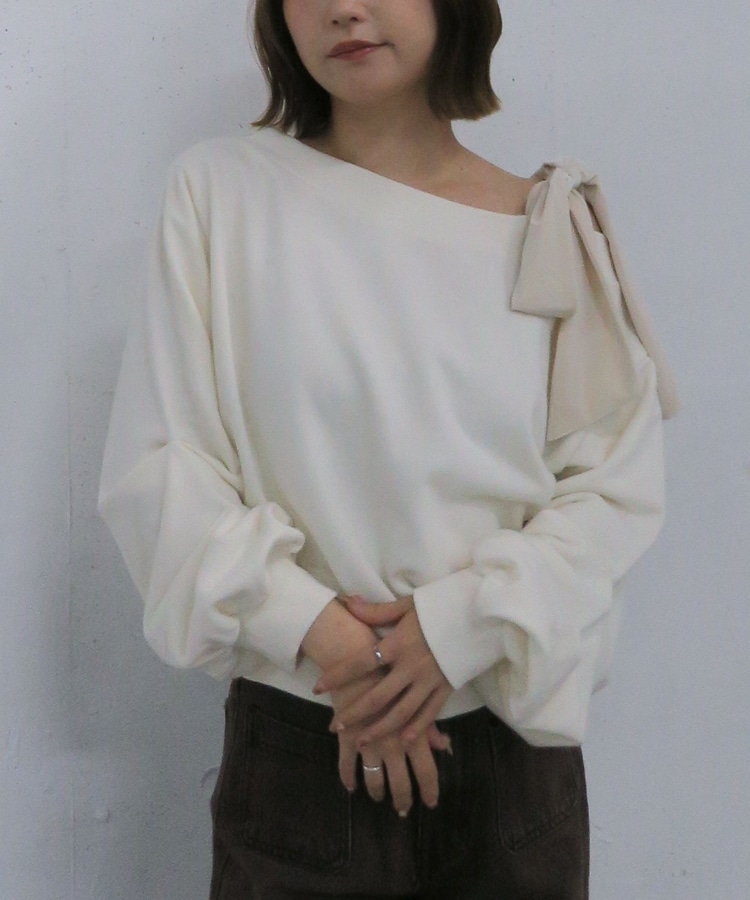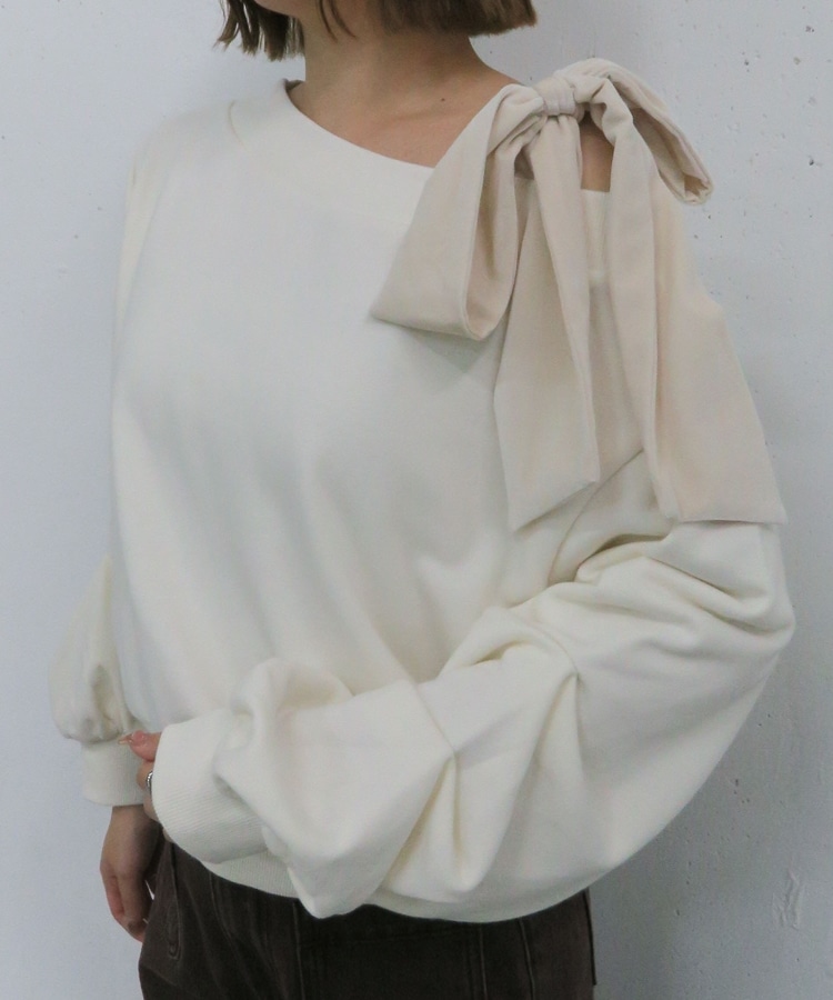 ベロアリボンタックオフショルスウェット CHARCOAL GRAY
