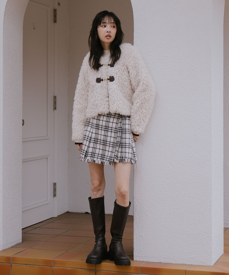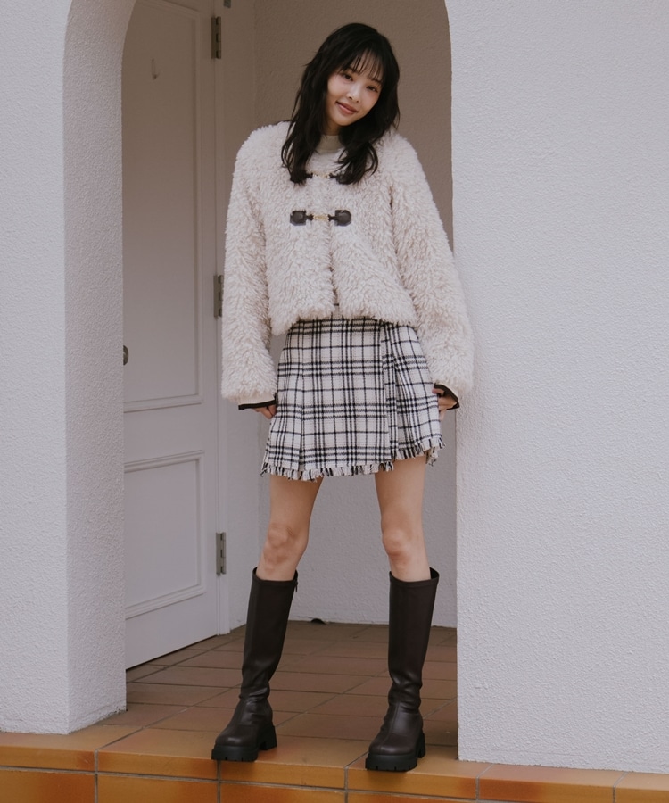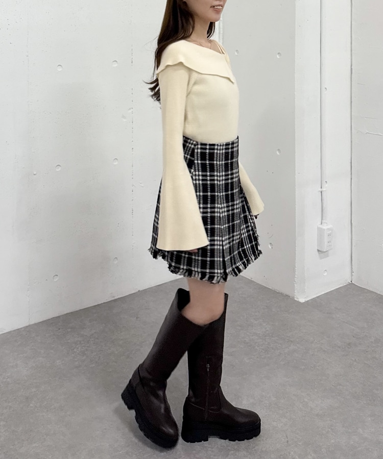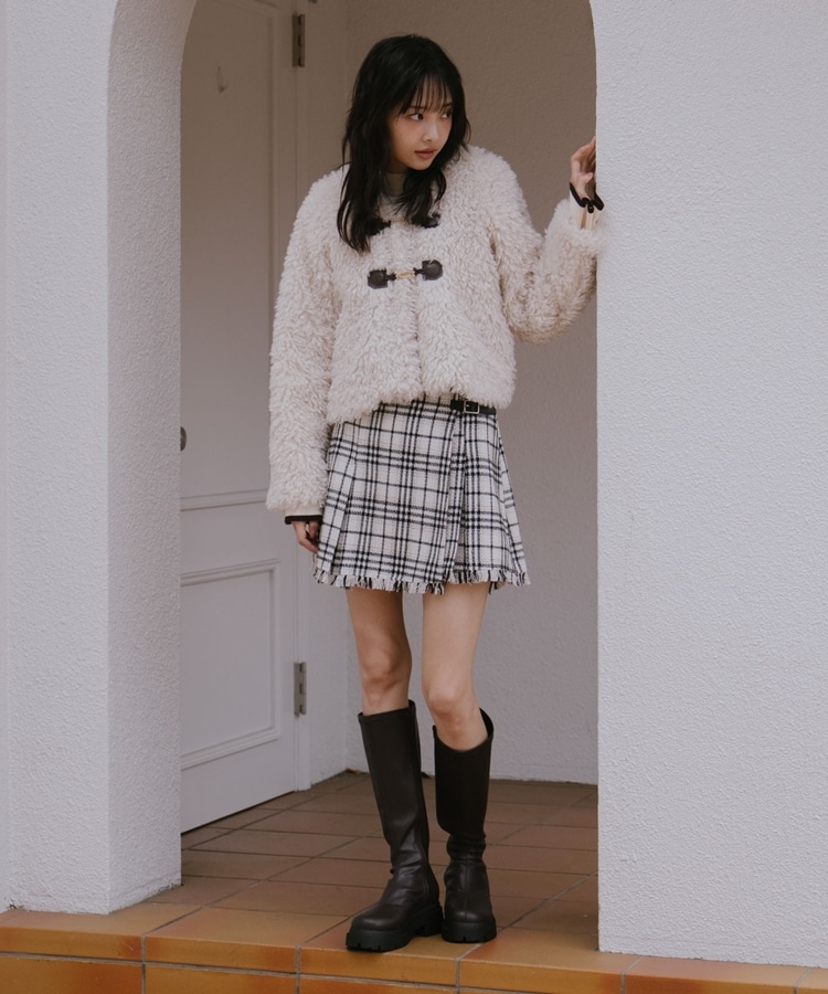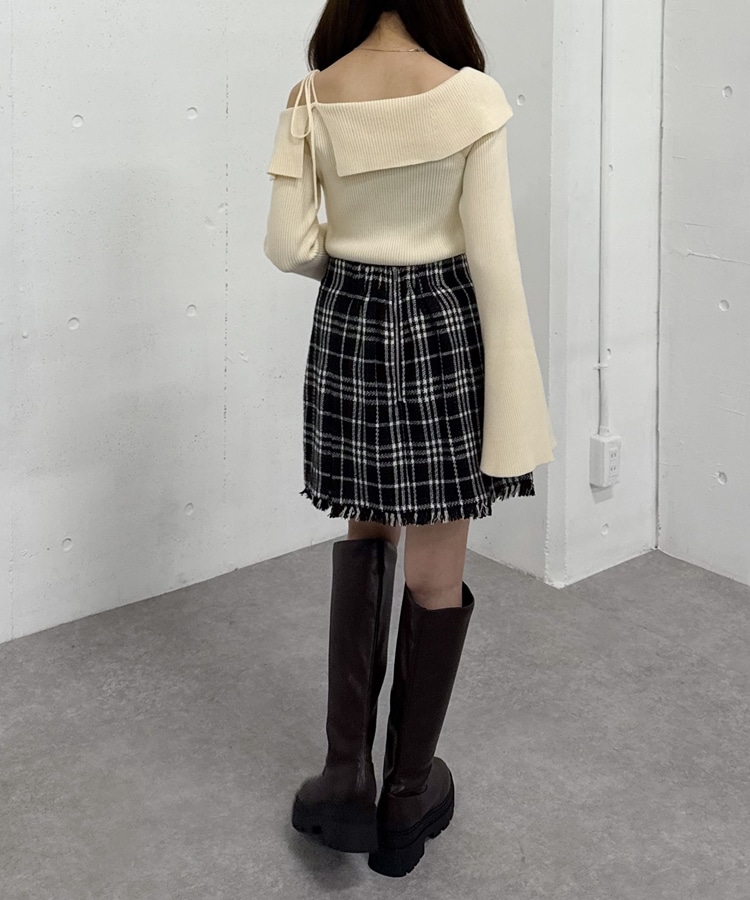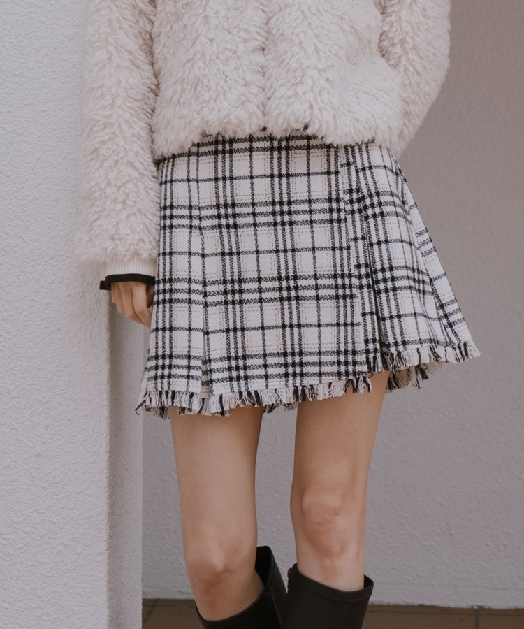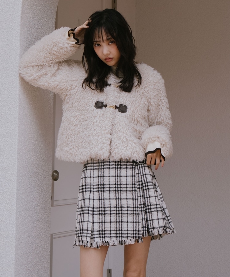 ■ツイード×チェックで冬モードに■サイドのベルトとラップのデザインがポイントのミニスカート。台形シルエットで脚をすっきり見せてくれます◎後ろはゴムでニットのインもしやすい仕様♪インナーパンツ付きで安心です。シンプルなシルエットで、合わせるトップスを選ばず着まわせるのが嬉しいポイント!甘めにあわせたホリデーコーデにもおすすめです。ーーーーーーーーーーーーーーー透け感:なし裏地:あり伸縮性:背面ゴム光沢感:なし生地厚さ:普通洗濯方法:洗濯可能※詳しいお手入れ方法は商品についているタグをご覧くださいーーーーーーーーーーーーーーー※ご利用のモニター環境により、実際の色味と多少異なる場合がございます。
