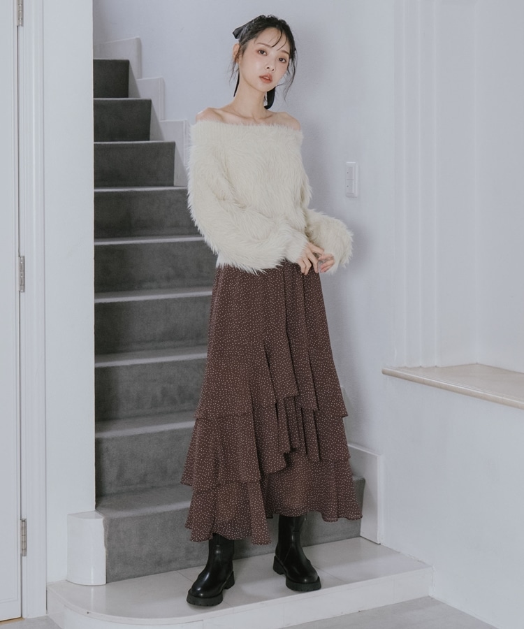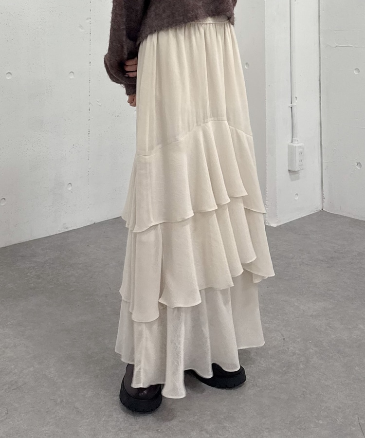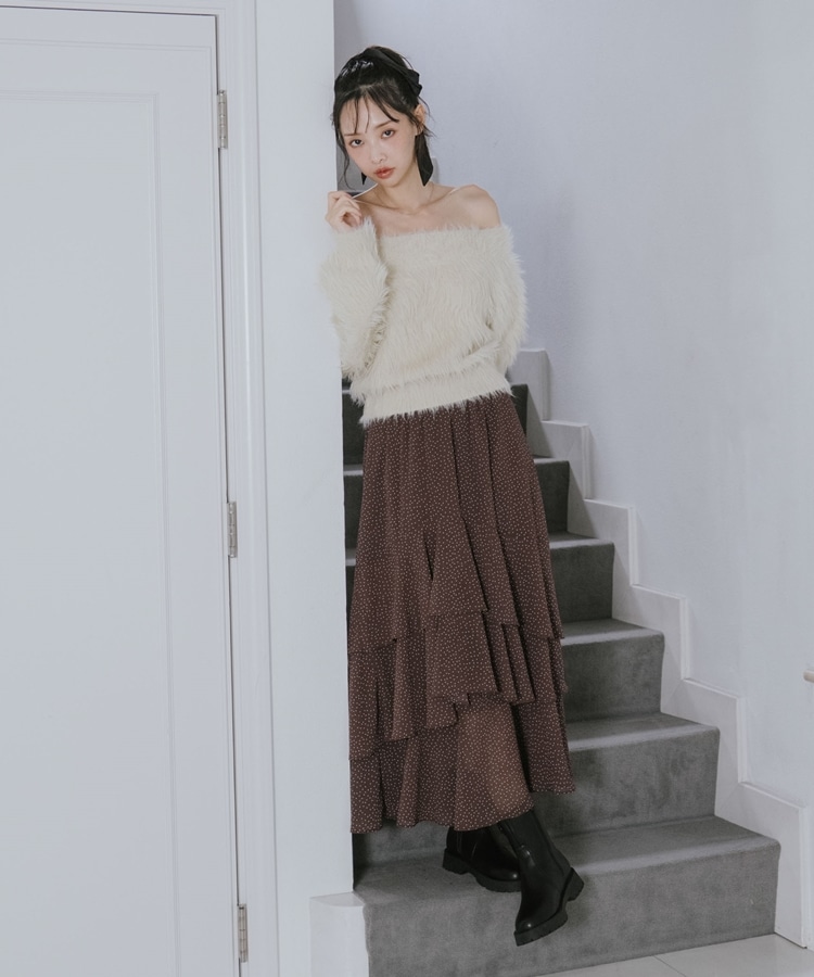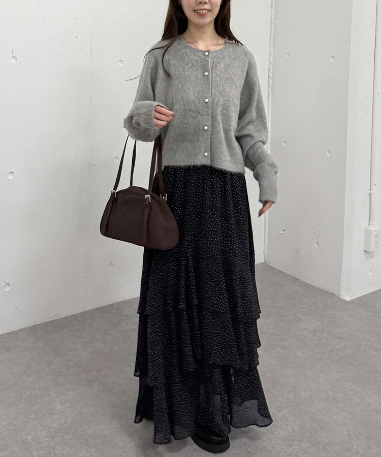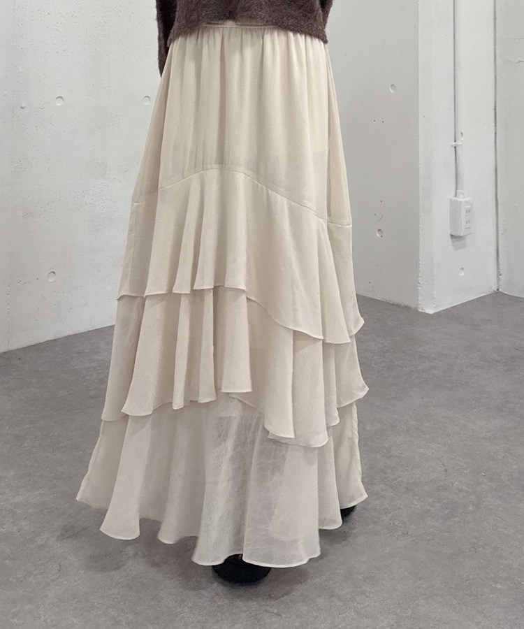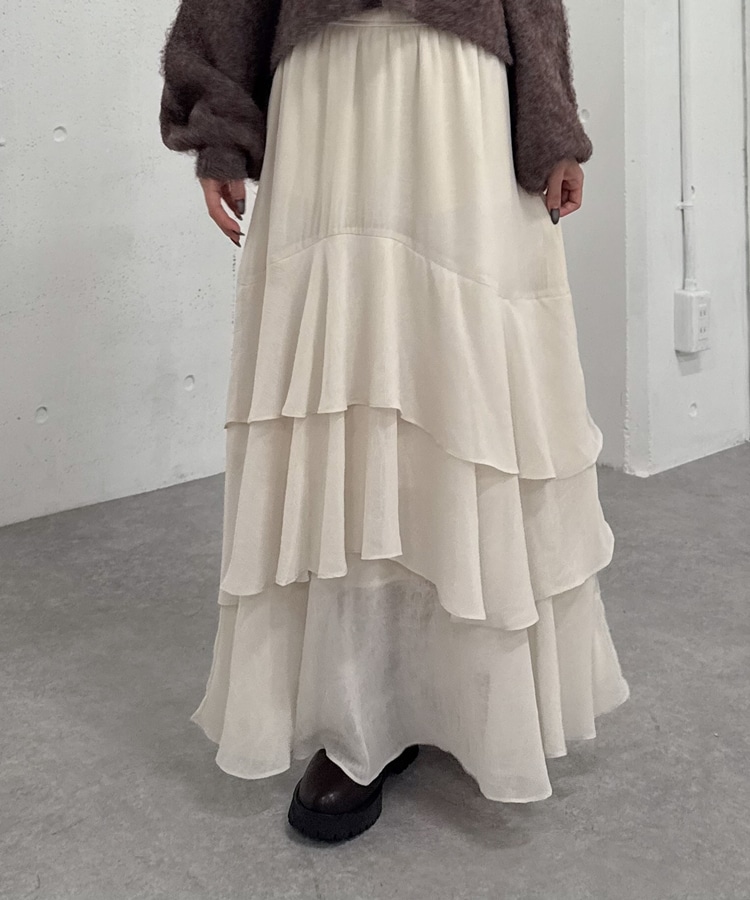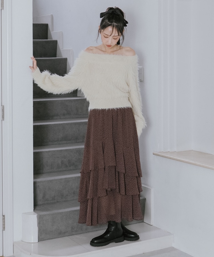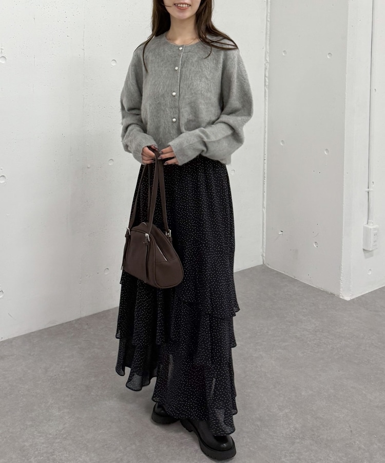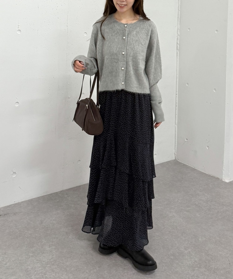 ■歩くたびにときめく、揺れ感スカート■動くたびにふわっと揺れるフリルが女性らしさを演出するティアードスカート。細かめのドット柄は甘くなりすぎず、どんなスタイルにも合わせやすいデザインです。柄タイプはコーデの主役に、無地タイプは着回しアイテムとしても活躍◎360度どこから見ても美しいシルエットで、歩くたびに気分が上がる1枚です。ーーーーーーーーーーーーーーー透け感:アイボリーややあり裏地:あり伸縮性:ウエストゴム光沢感:なし生地厚さ:普通洗濯方法:洗濯可※詳しいお手入れ方法は商品についているタグをご覧くださいーーーーーーーーーーーーーーー※ご利用のモニター環境により、実際の色味と多少異なる場合がございます。