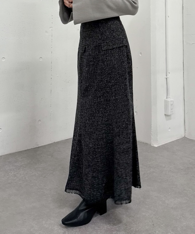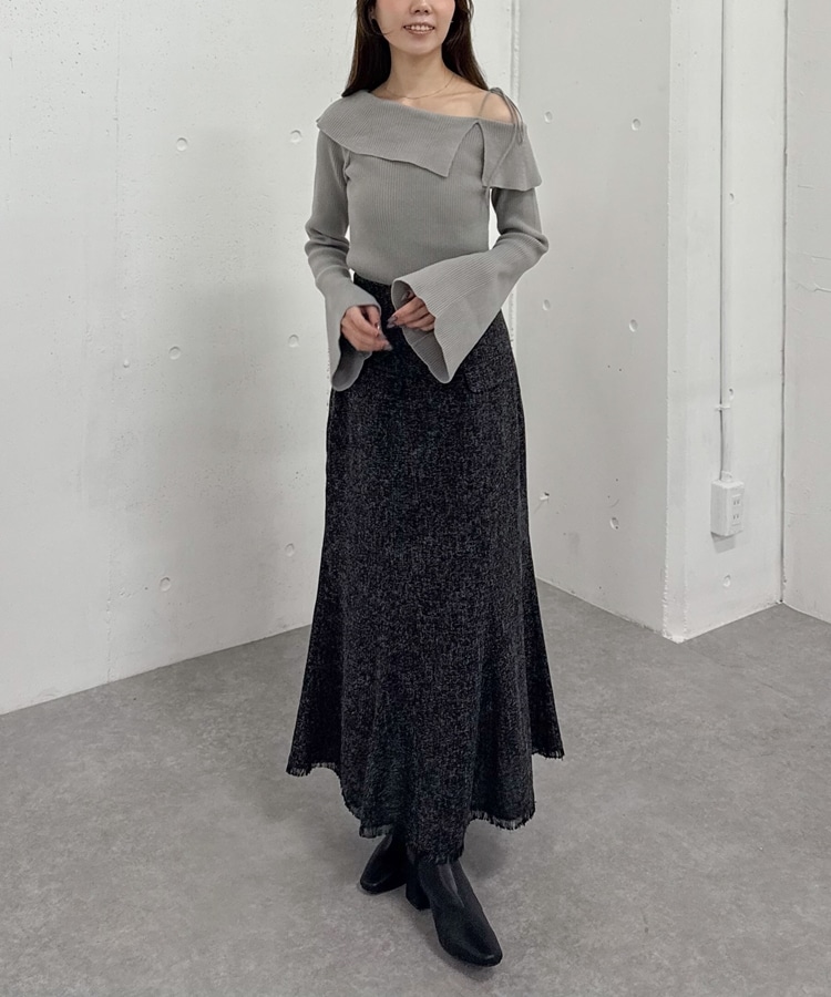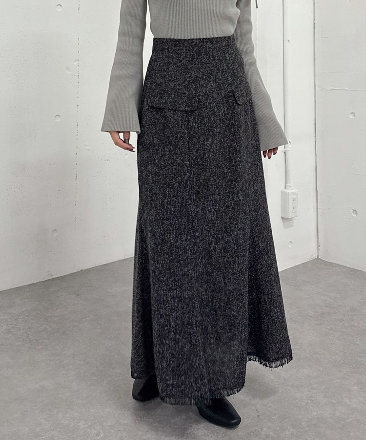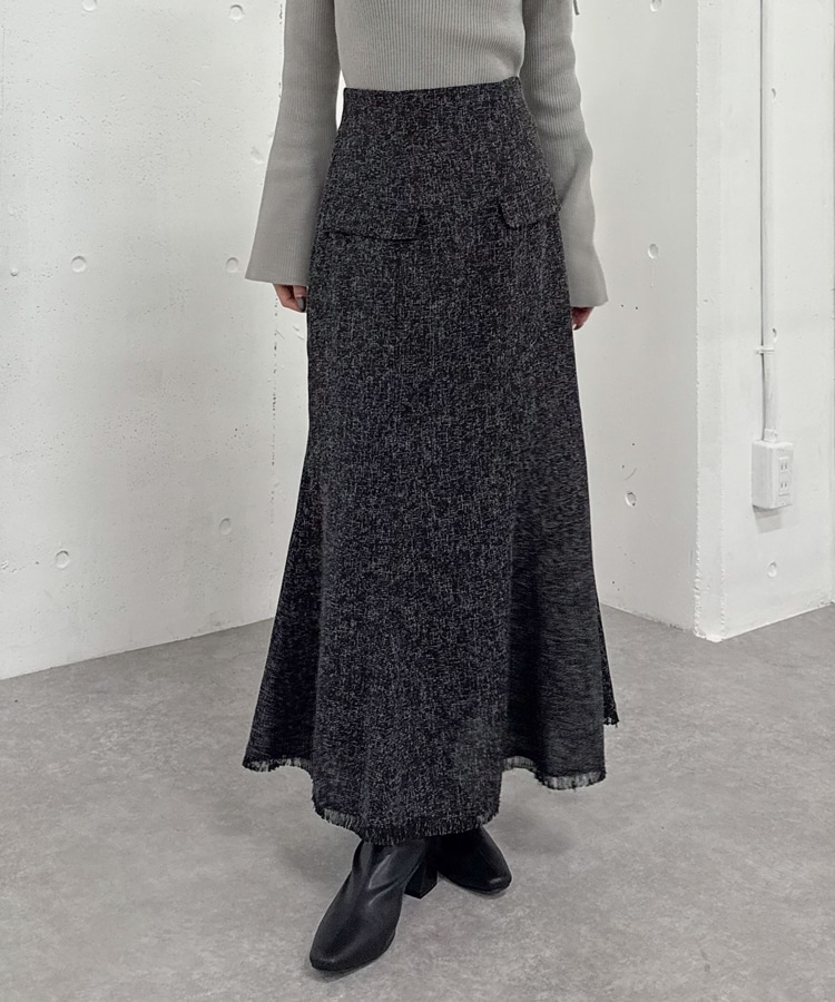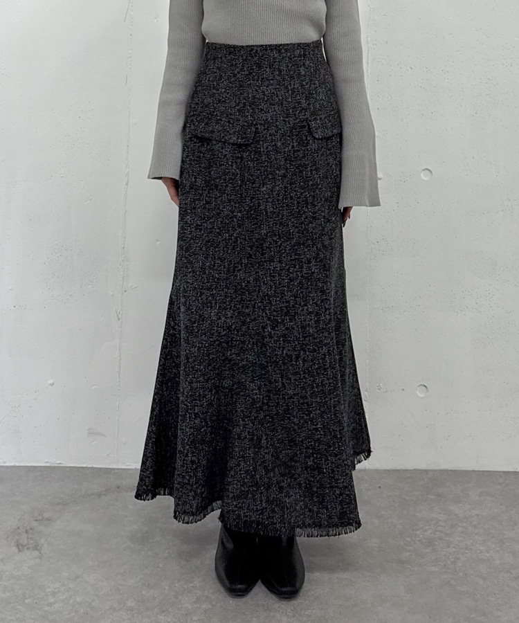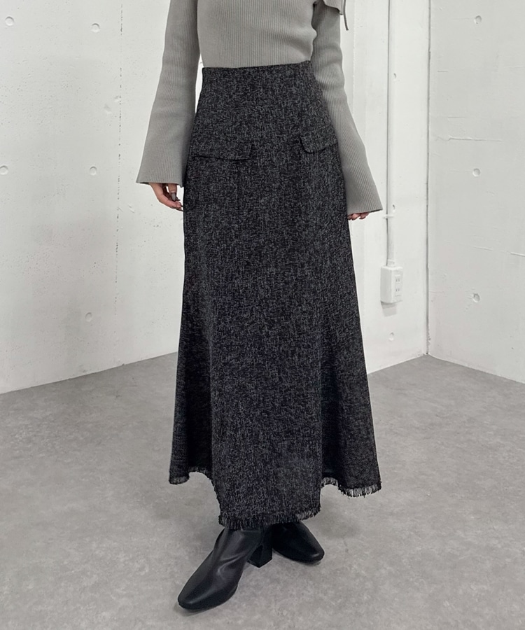 ツイード素材で履くだけで一気に冬ムード高まるスカート。