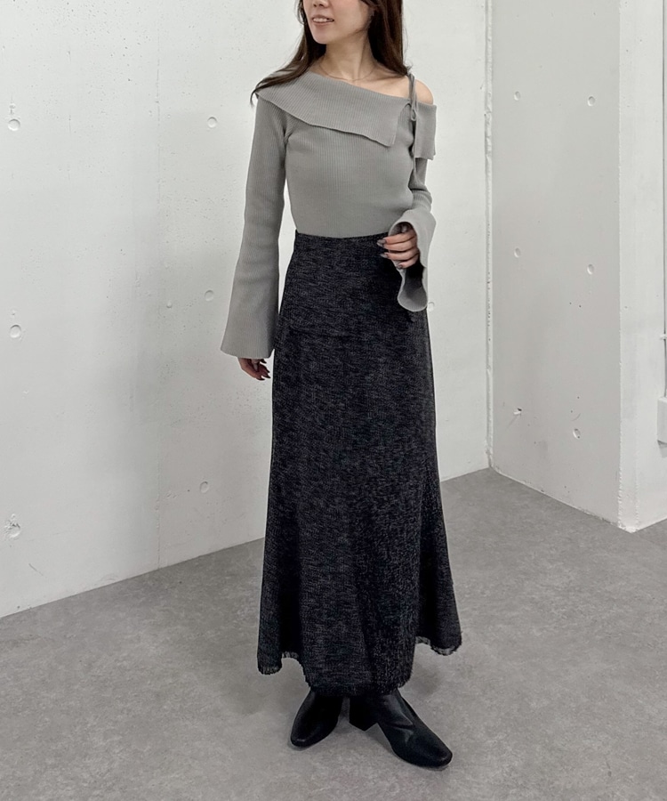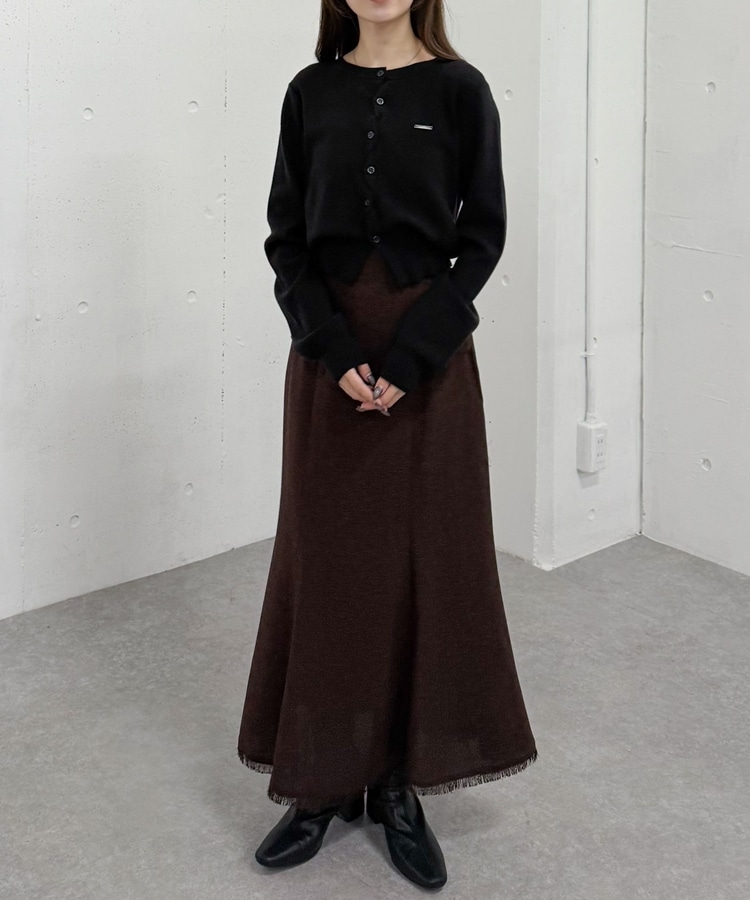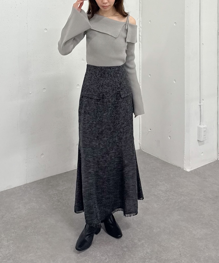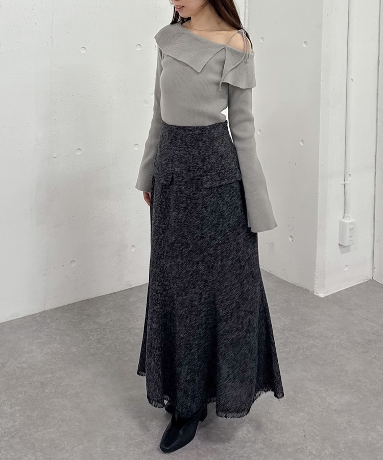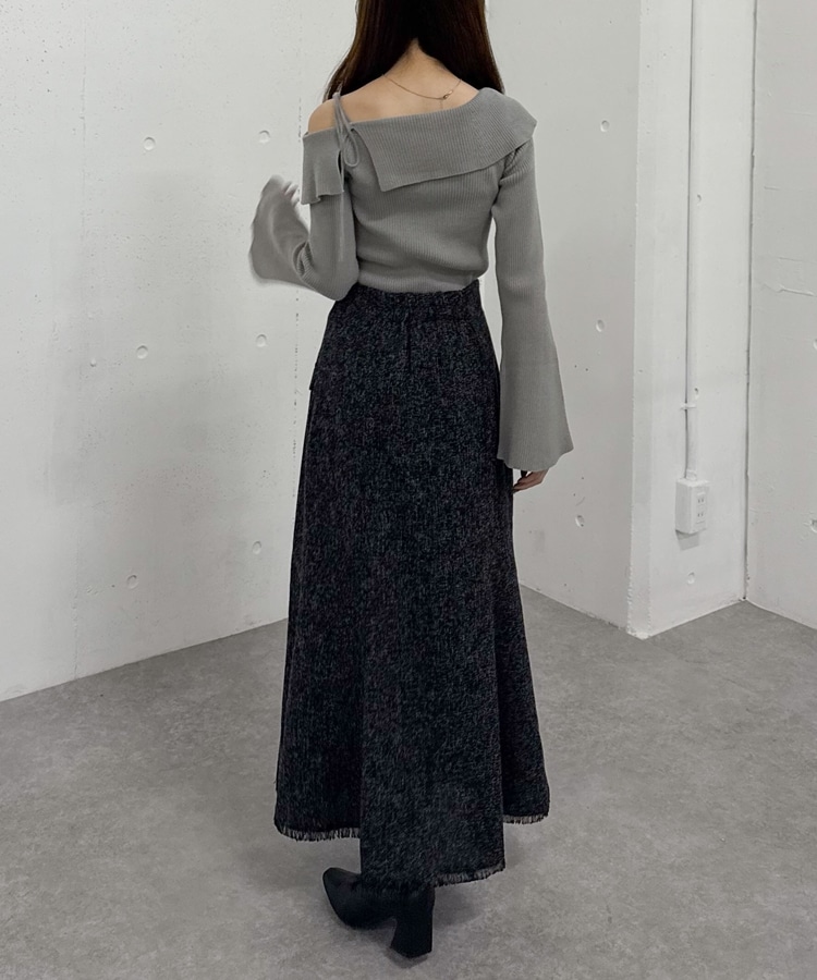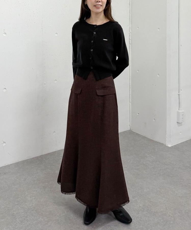 ツイード素材で履くだけで一気に冬ムード高まるスカート。