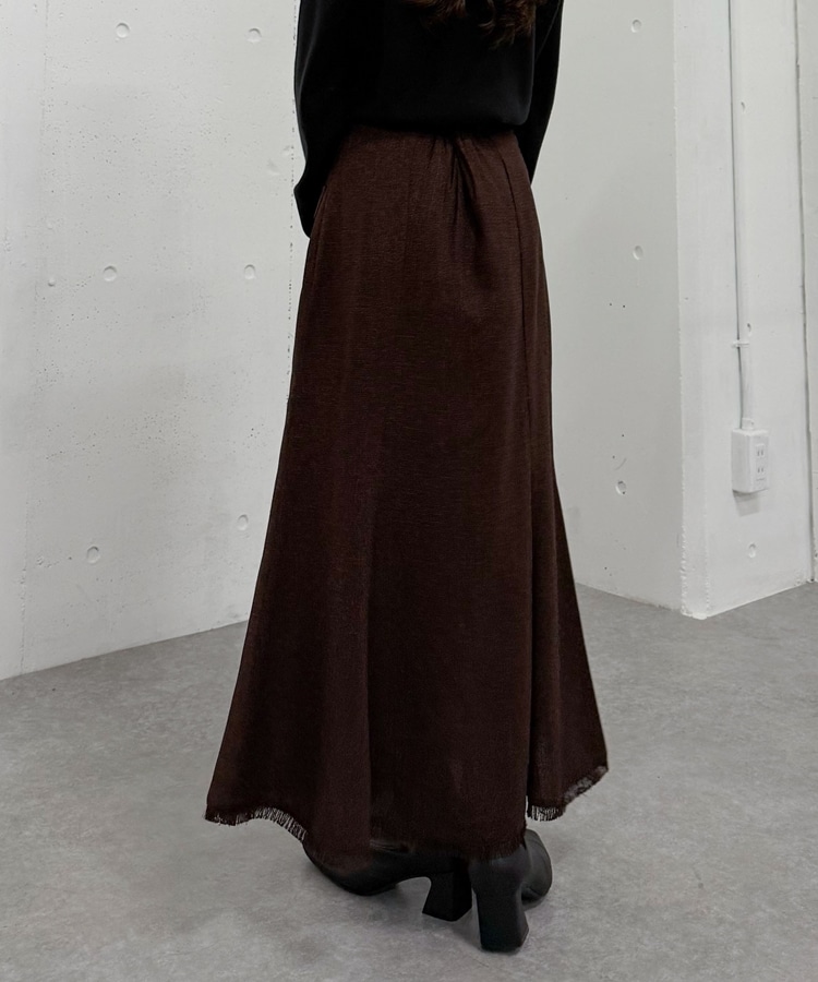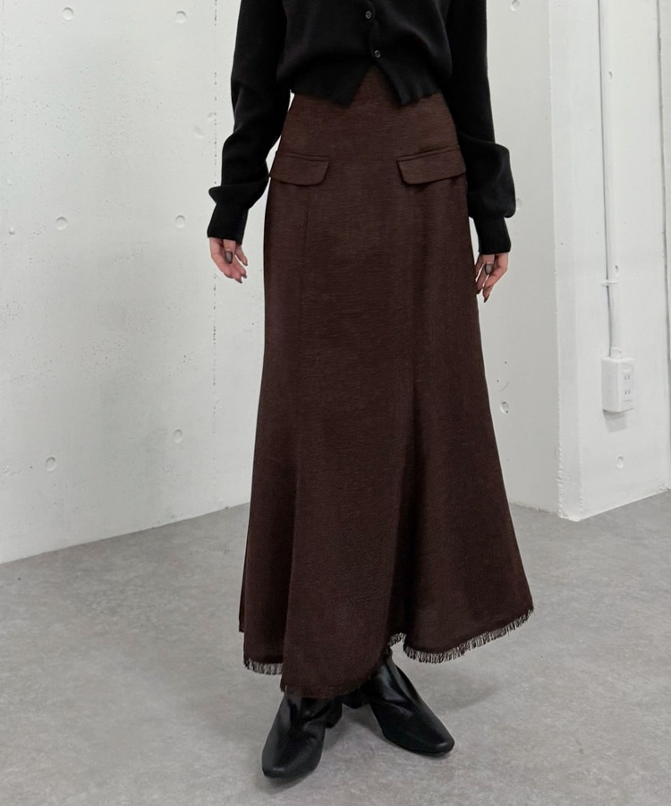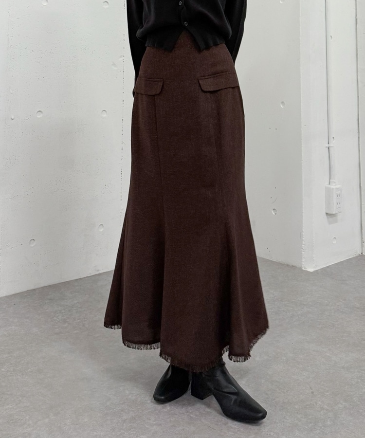 マーメイドシルエットで厚みがあってもすっきり着こなせます。