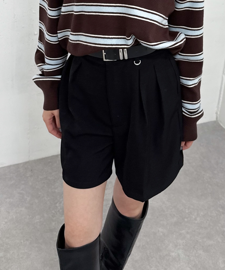 ■カジュアルにスタイリングするならこの一枚■スタリングをカジュアルライクに仕上げてくれるショートパンツ。短すぎない丈は幅広い身長の方に穿いていただけます。裾が広がってないストレートシルエット。ストンと落ちる形なので体形カバーも◎ウエスト部分にはスッキリと見えるタック入り。ベルトがセットになっているのでスタイリングの幅も広がります。パンツには珍しいDカンパーツ付き。今年トレンドのチャームを付けて自分らしくアレンジするのもおすすめ。大きめトップスからちらっと見せるスタイリングやコンパクトなトップスでスッキリと着こなすのもおすすめです。ーーーーーーーーーーーーーーー透け感:なし裏地:なし伸縮性:あり光沢感:なし生地厚さ:普通洗濯方法:洗濯可※詳しいお手入れ方法は商品についているタグをご覧くださいーーーーーーーーーーーーーーー※ご利用のモニター環境により、実際の色味と多少異なる場合がございます。