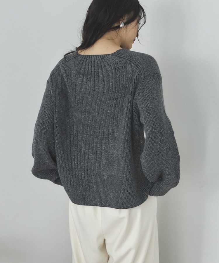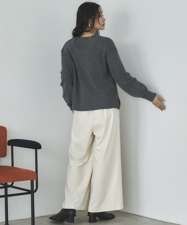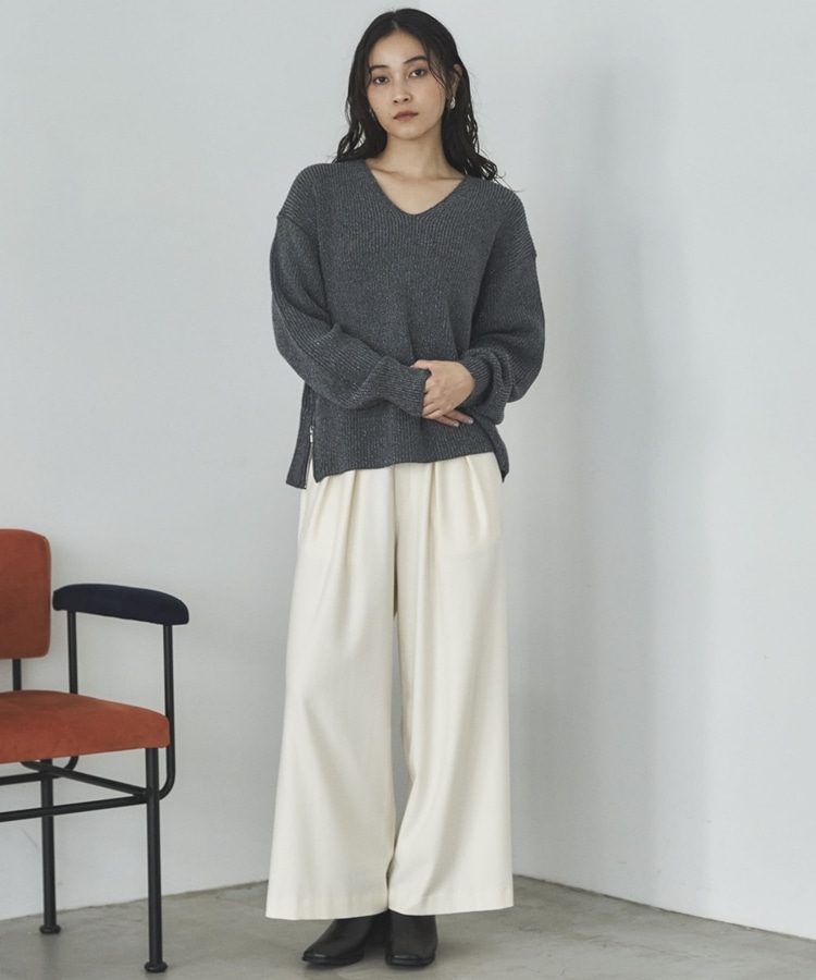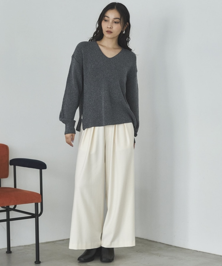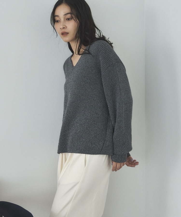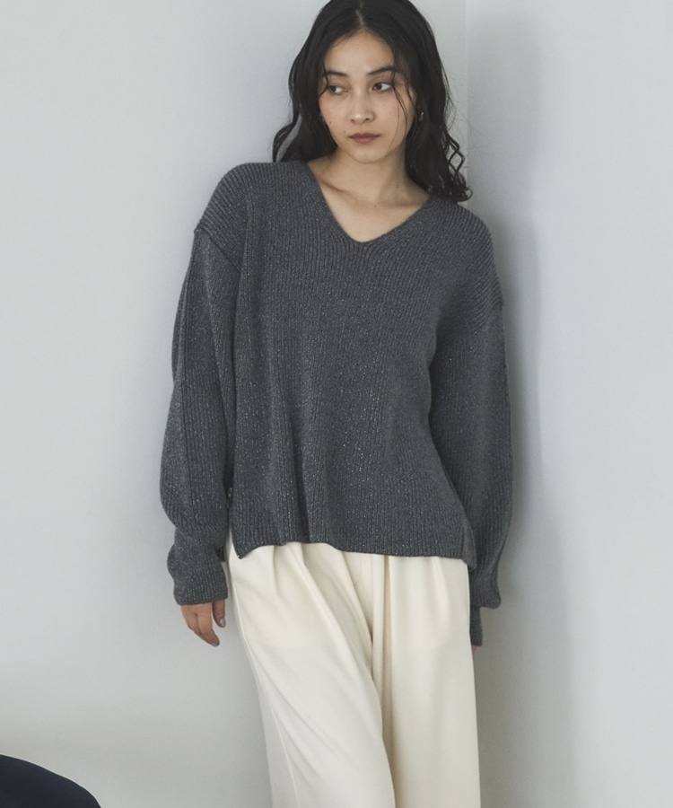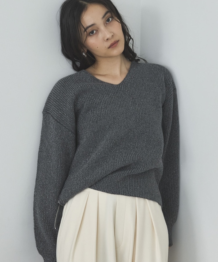 サイドZIPラメVネックニット CHARCOAL GRAY