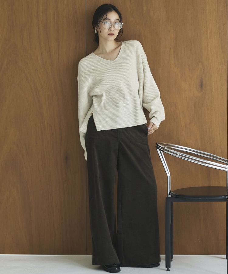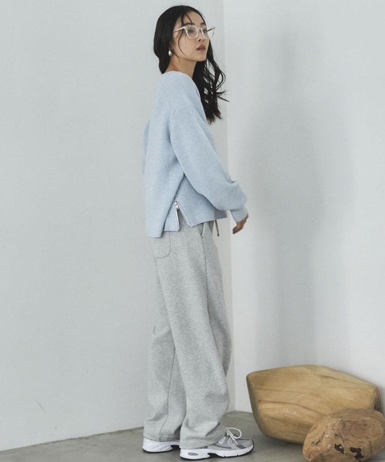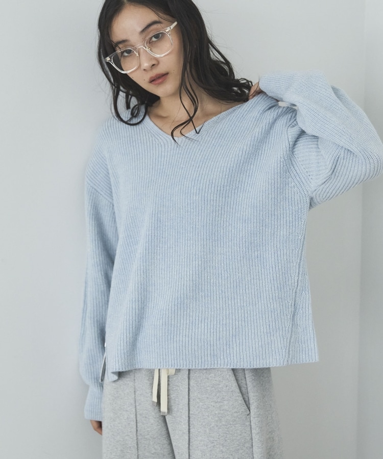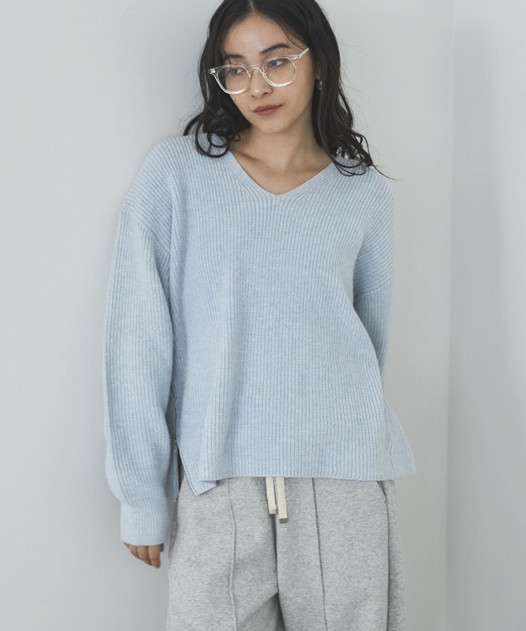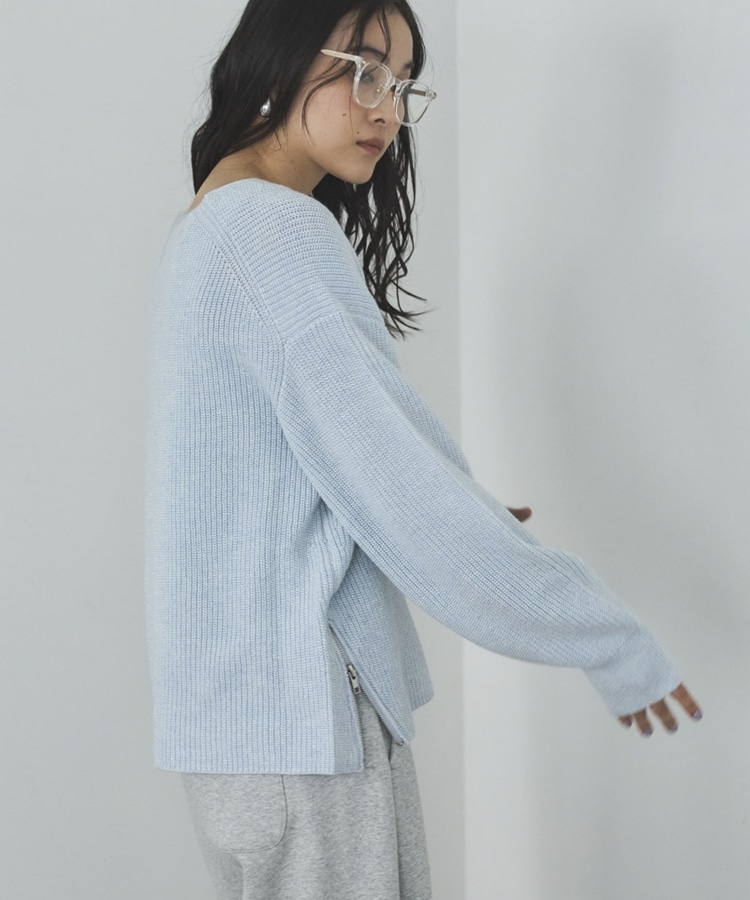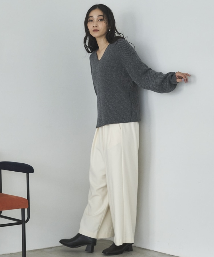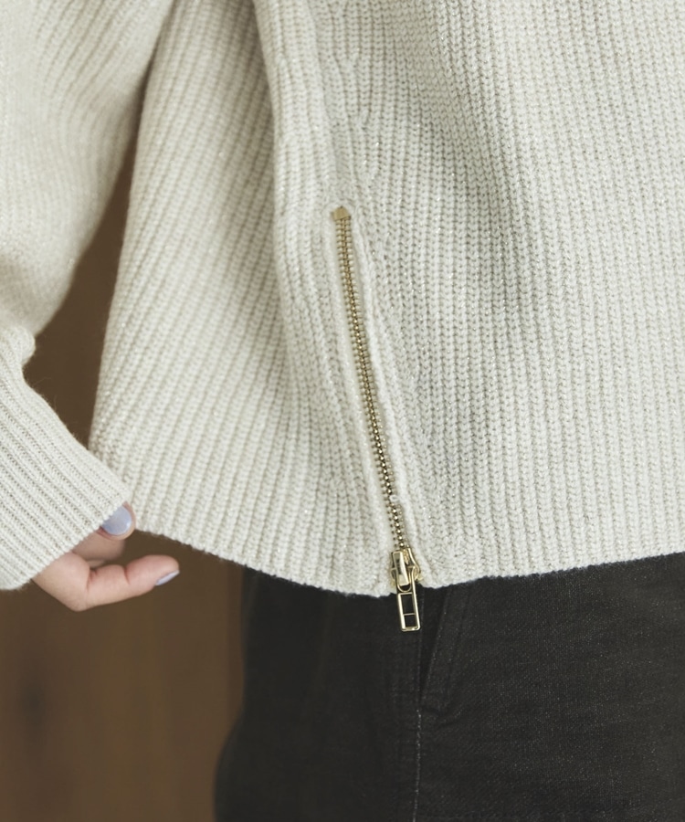 サイドZIPラメVネックニット CHARCOAL GRAY