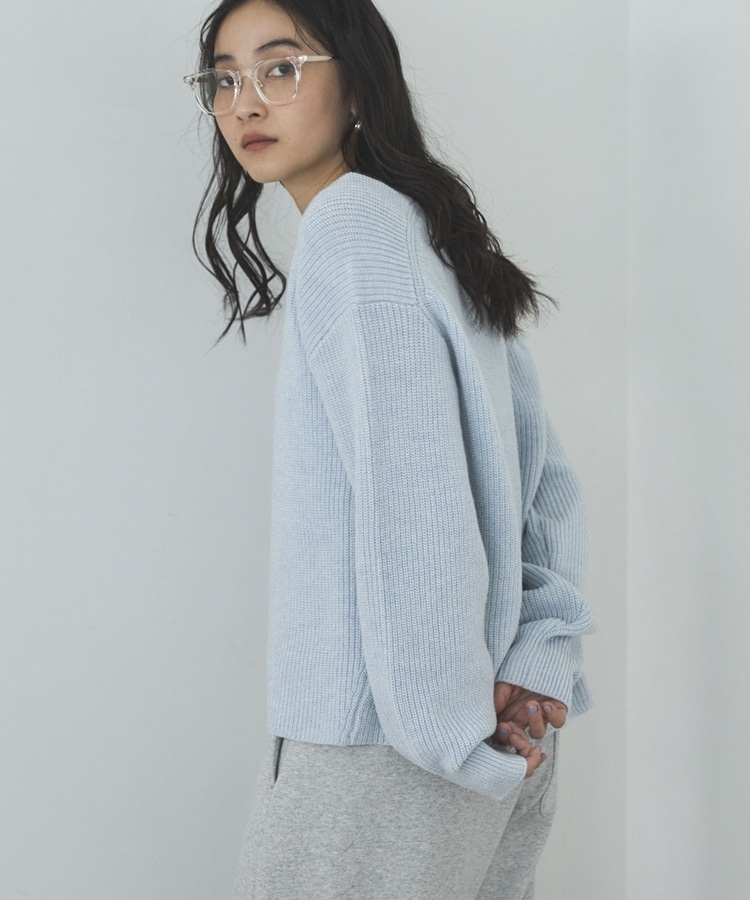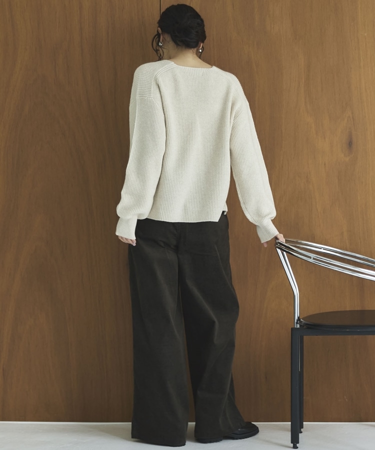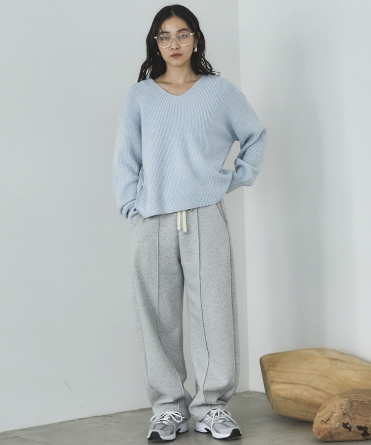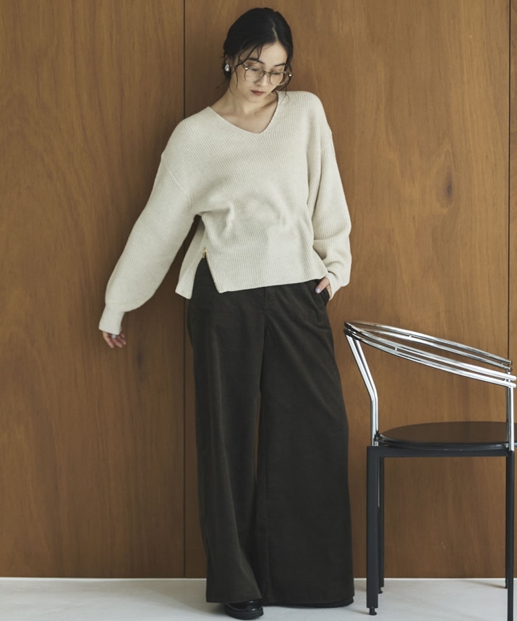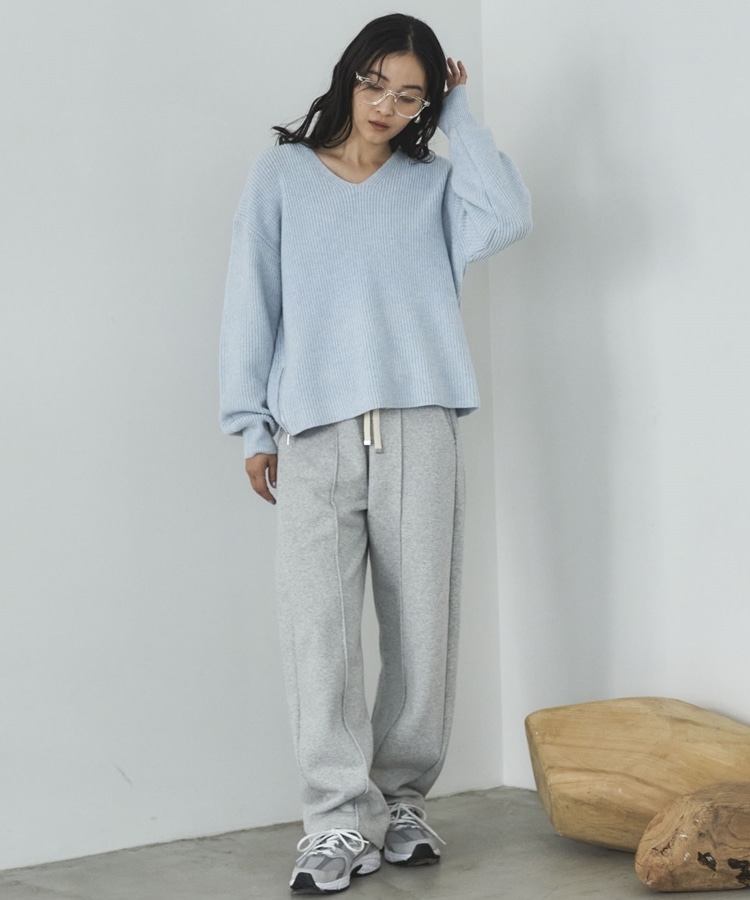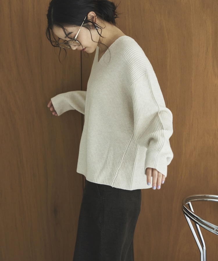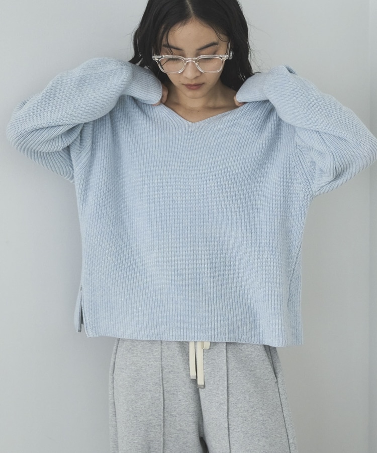 サイドZIPラメVネックニット CHARCOAL GRAY