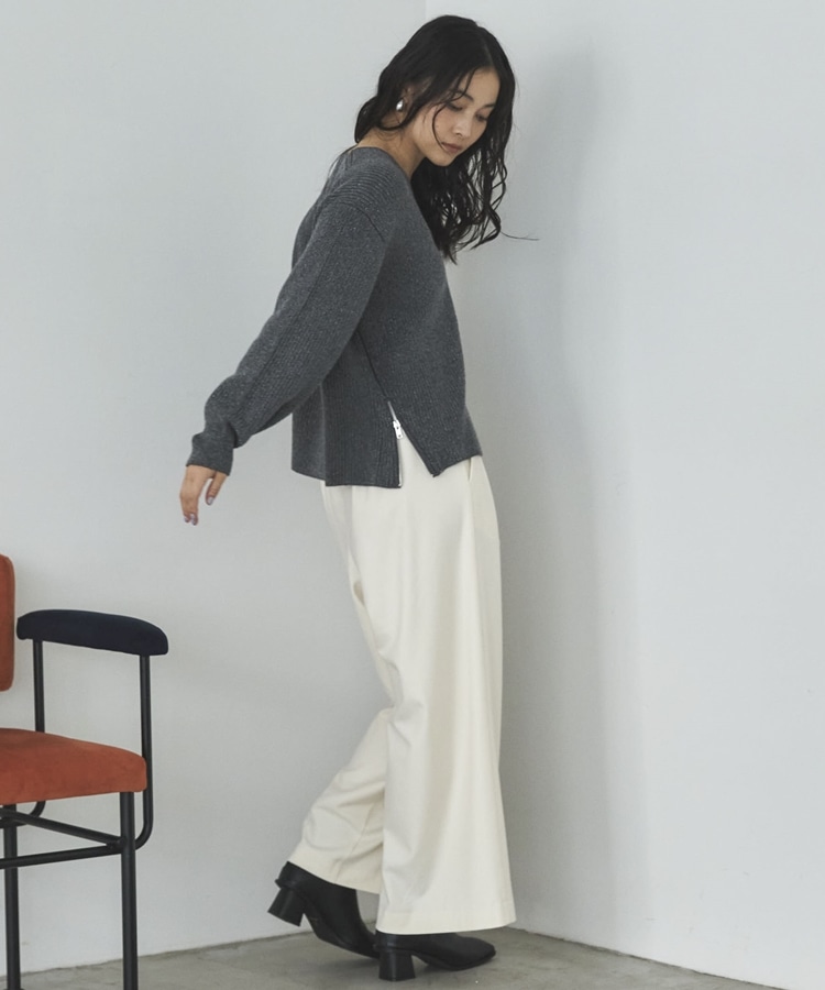 ・右サイドの裾にはジップがありインナーをのぞかせたりシルエットの調整ができます