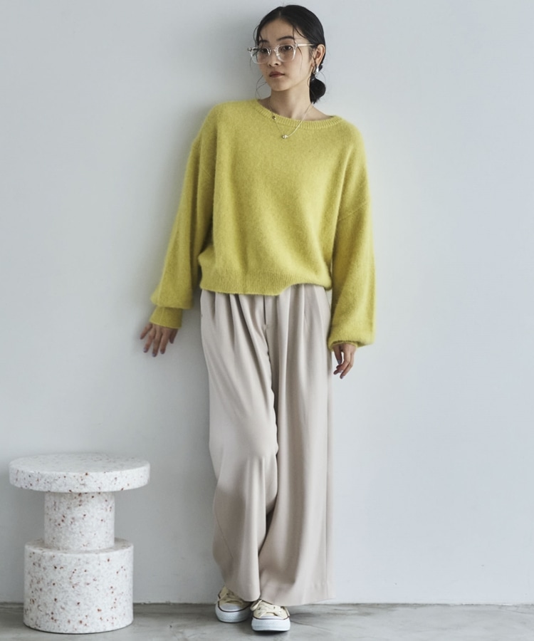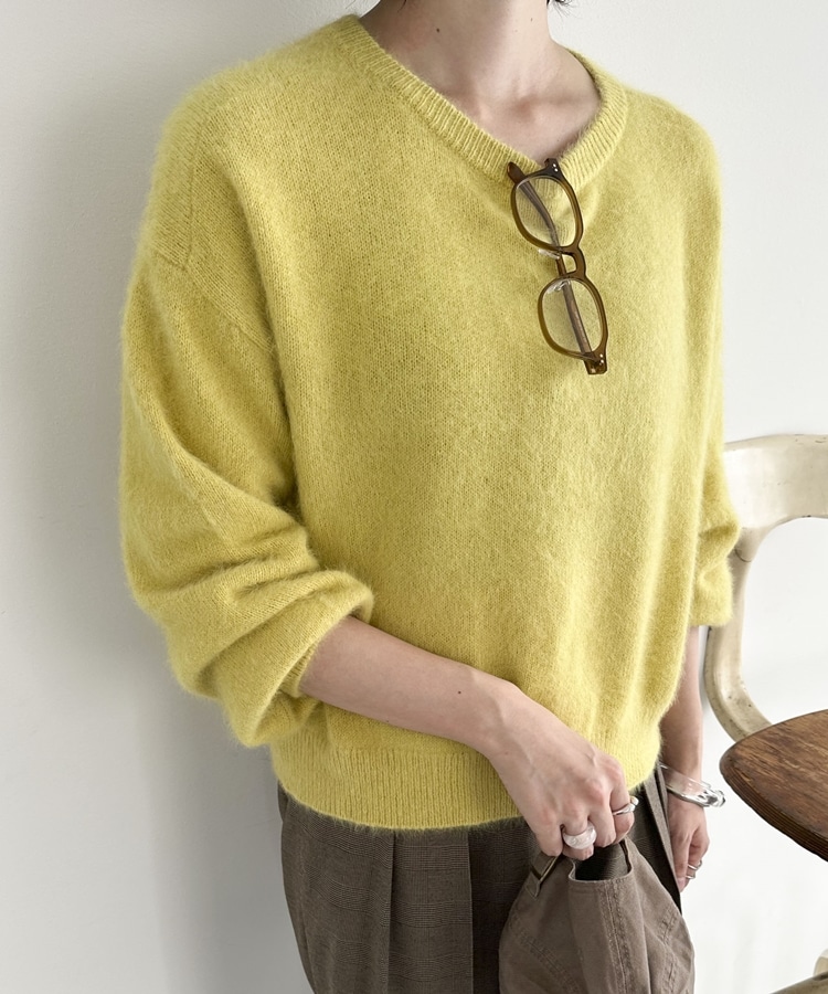 【ラクーンMIX】ファーニットボートネックプルオーバー YELLOW
