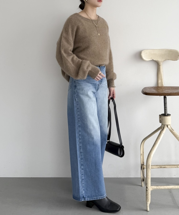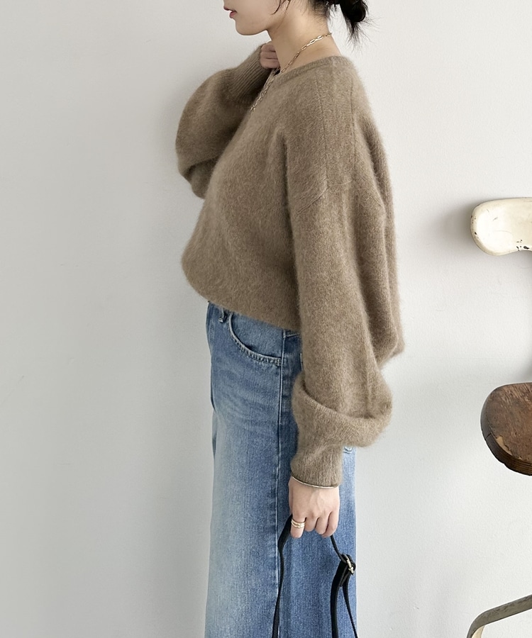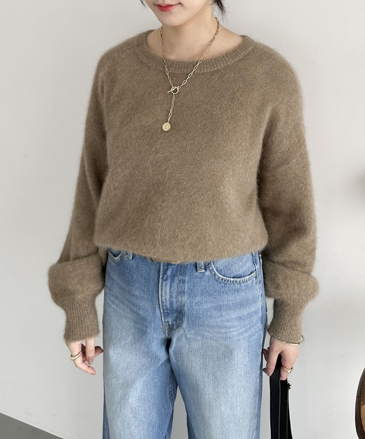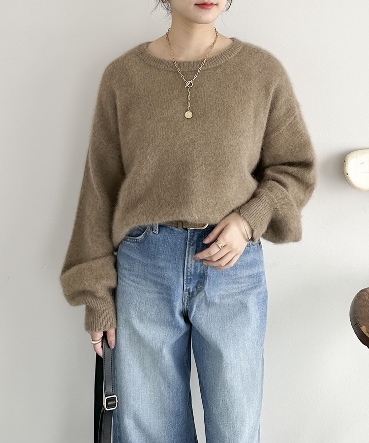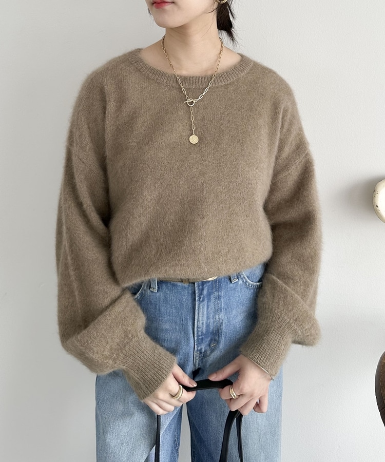 【ラクーンMIX】ファーニットボートネックプルオーバー MOCHA