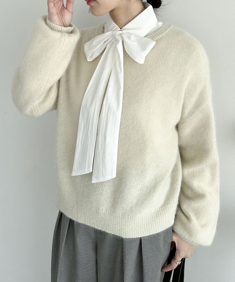 【ラクーンMIX】ファーニットボートネックプルオーバー IVORY