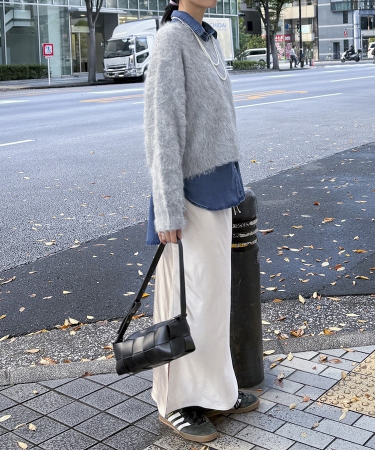 ・ショート丈ですっきりとした丈感のためレイヤードもオススメです