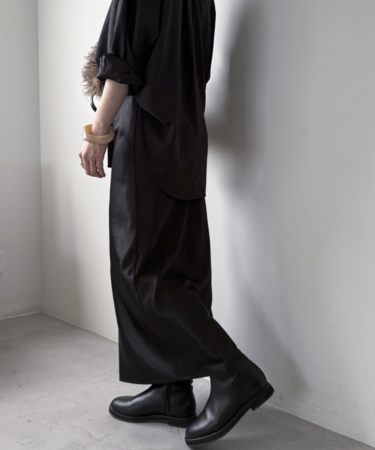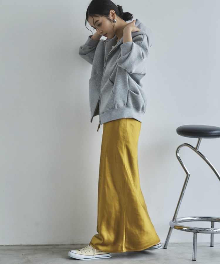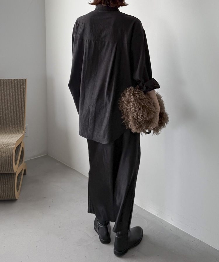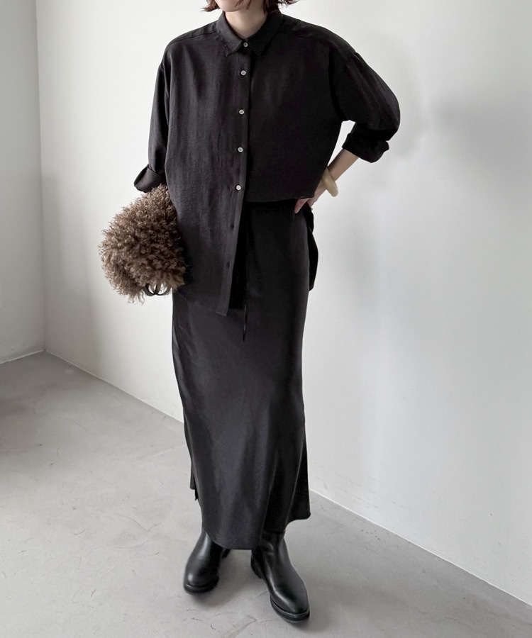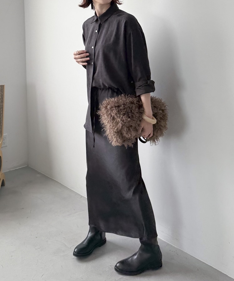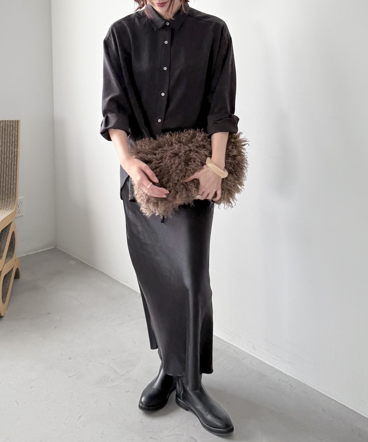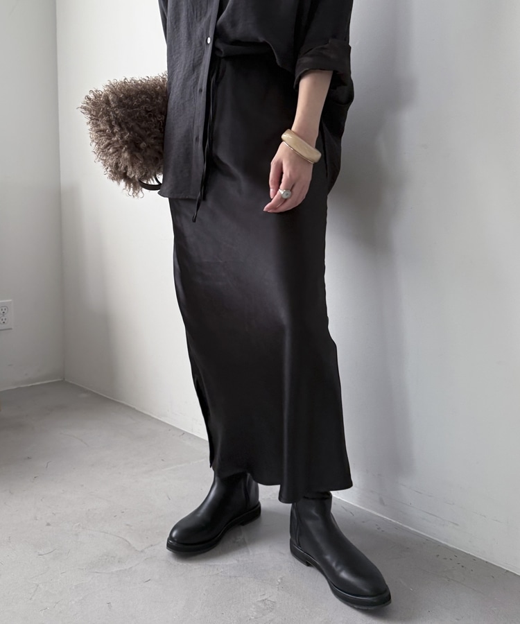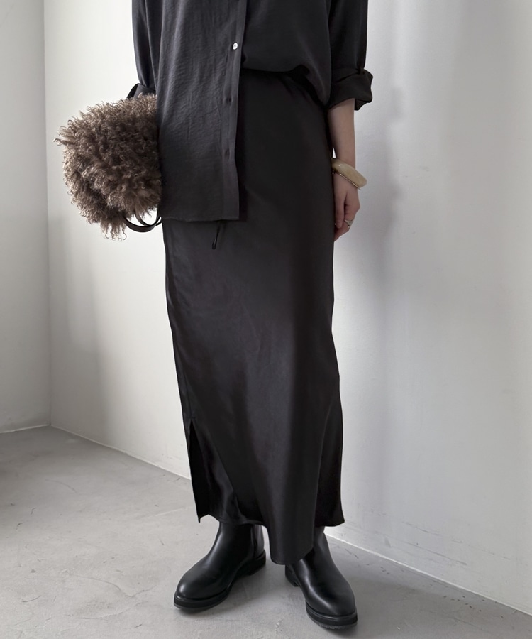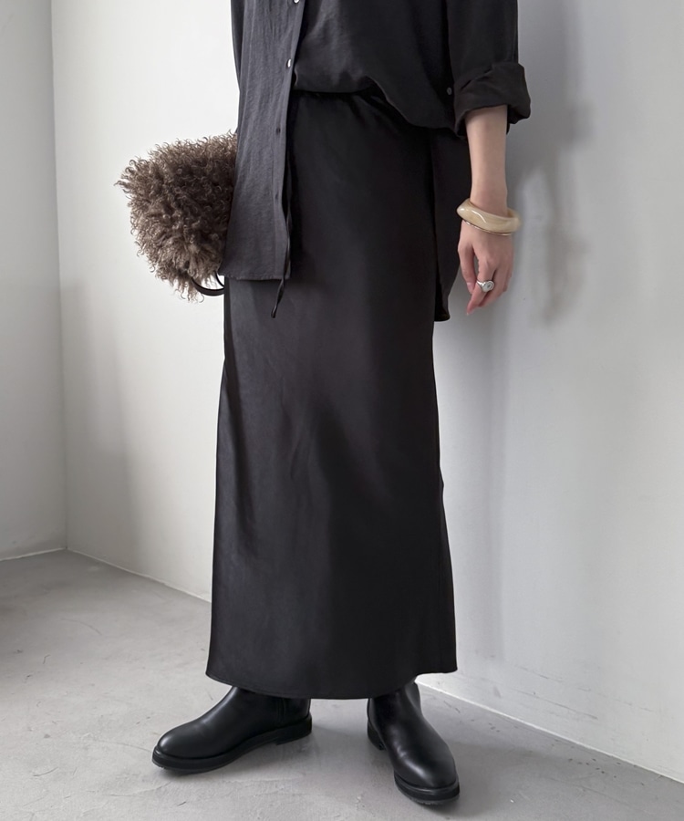 ・サテン生地が重たくなりがちな冬のコーデに抜け感をプラス