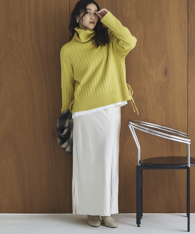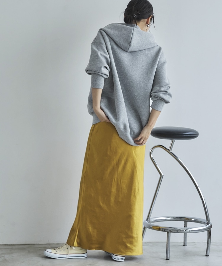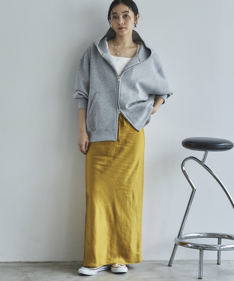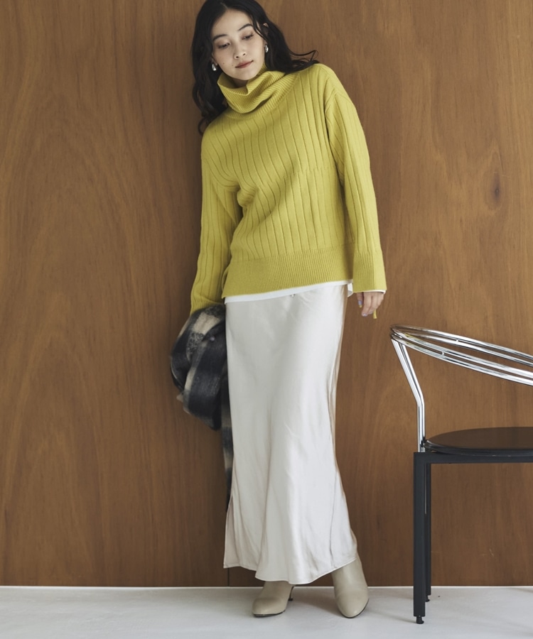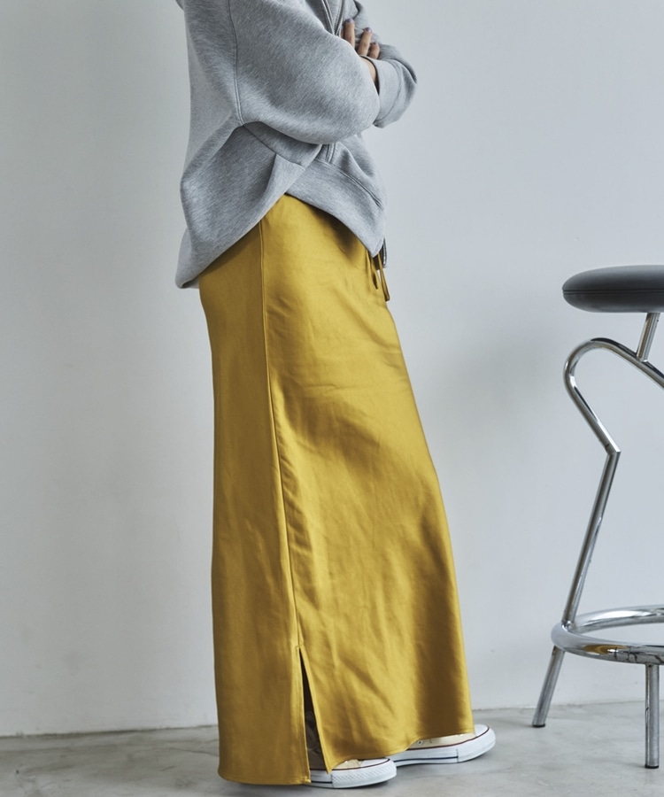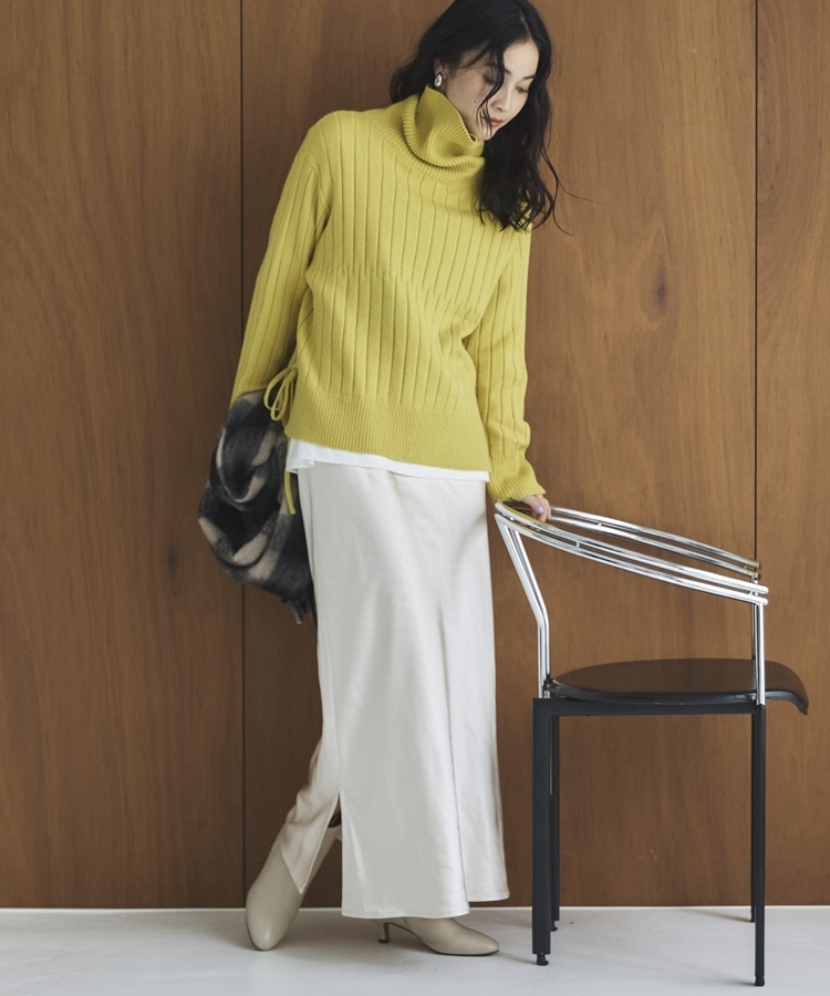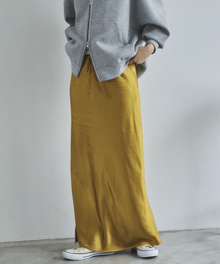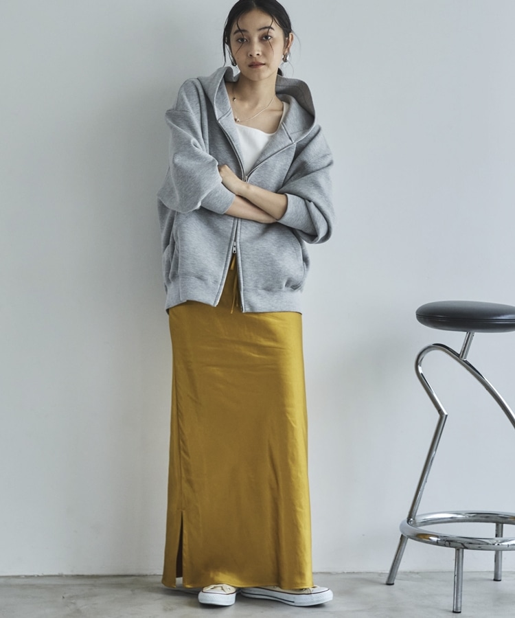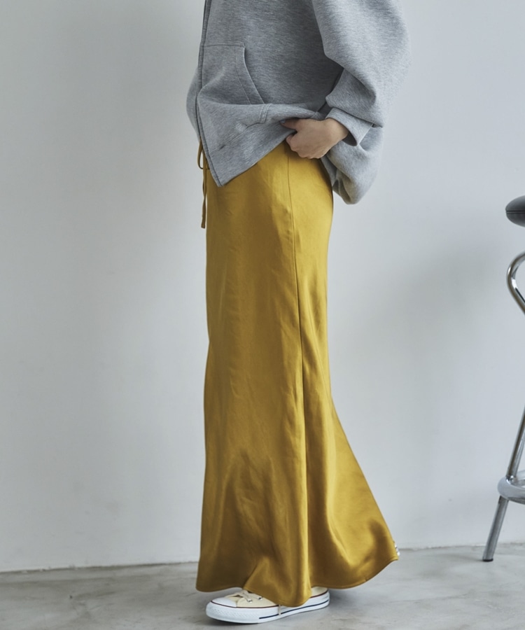 ・サテン生地が重たくなりがちな冬のコーデに抜け感をプラス