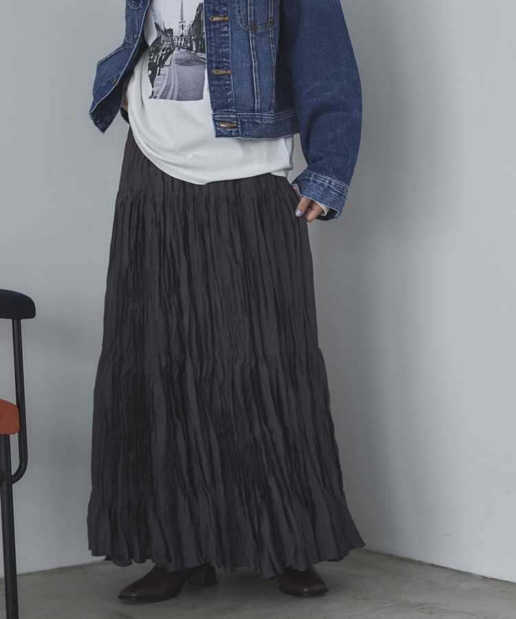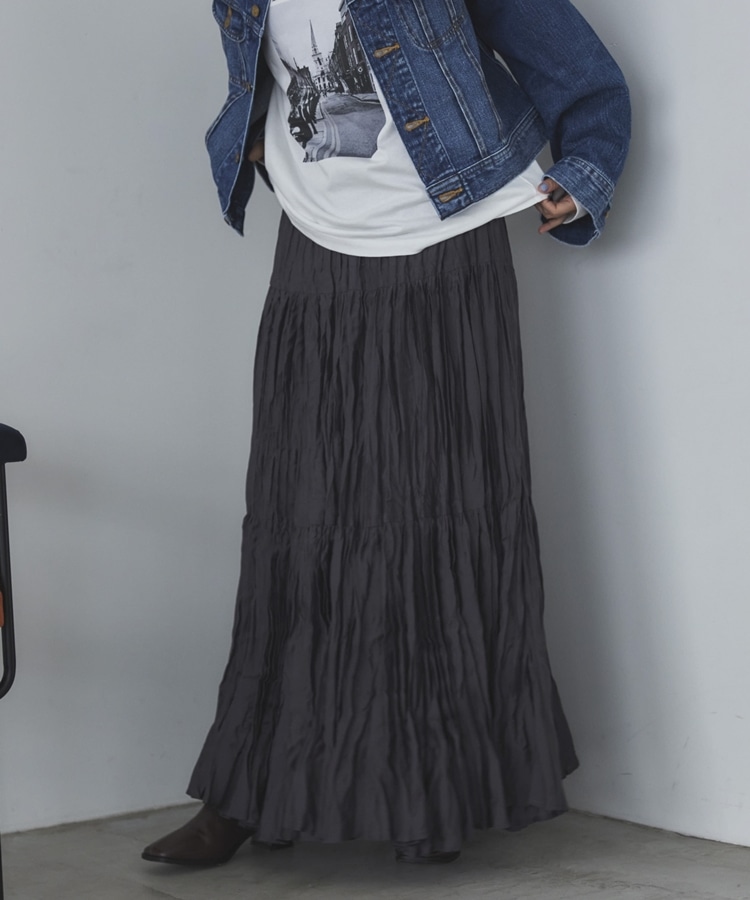 ’ワッシャーティアードスカート’ CHARCOAL GRAY