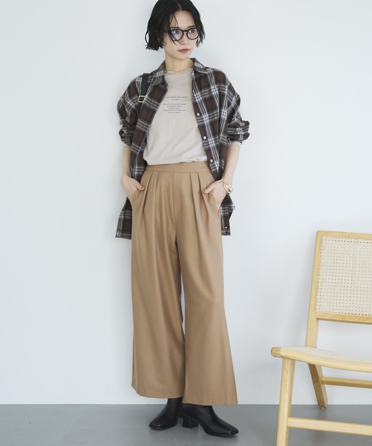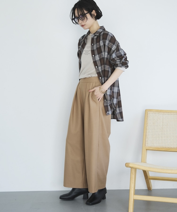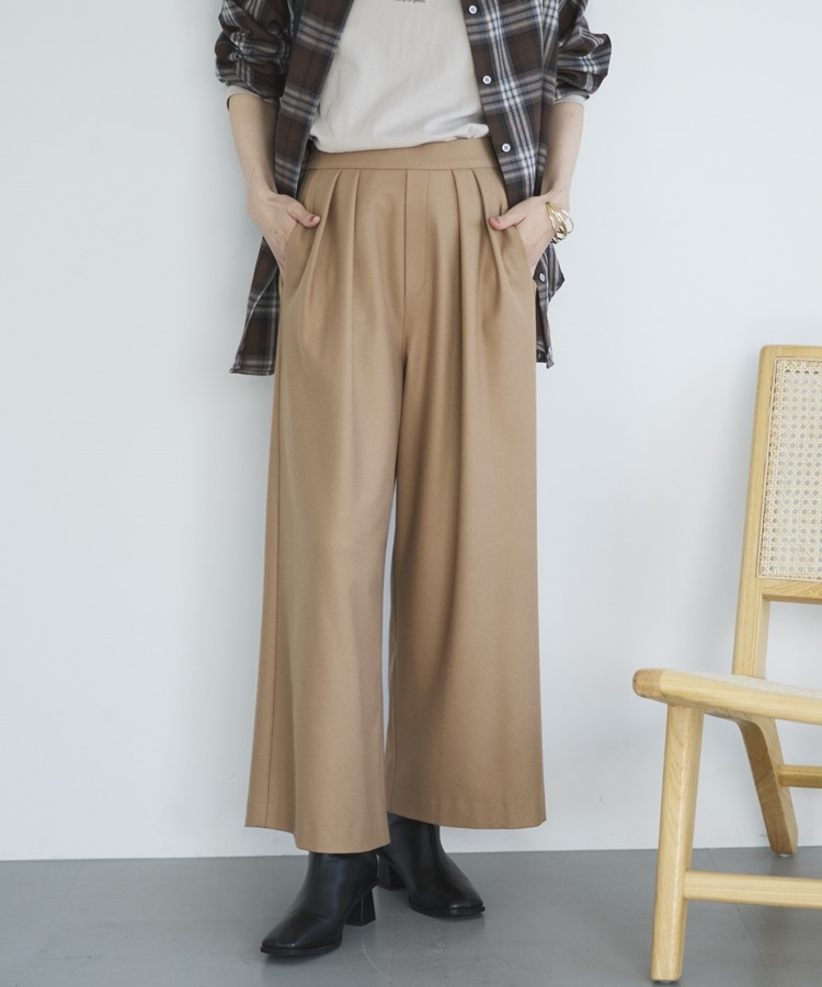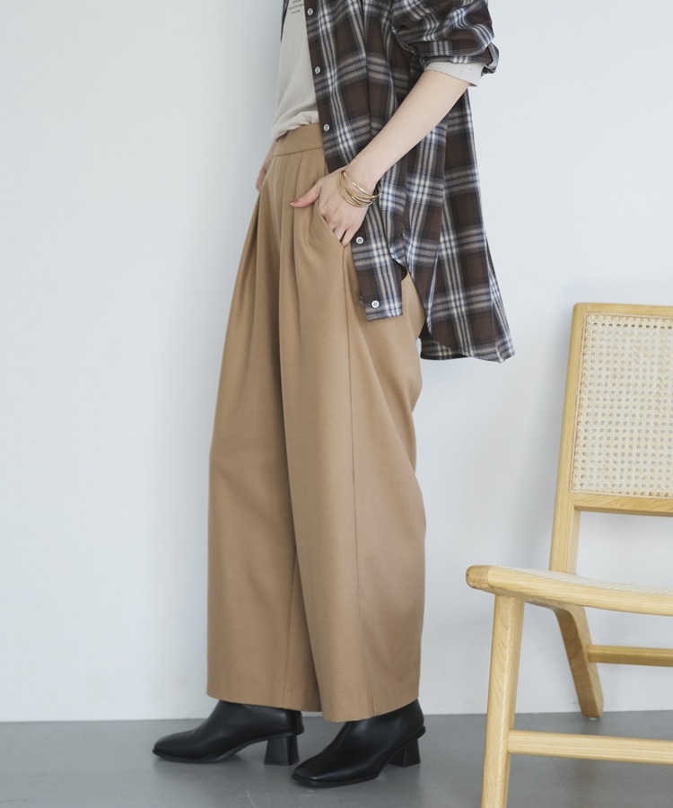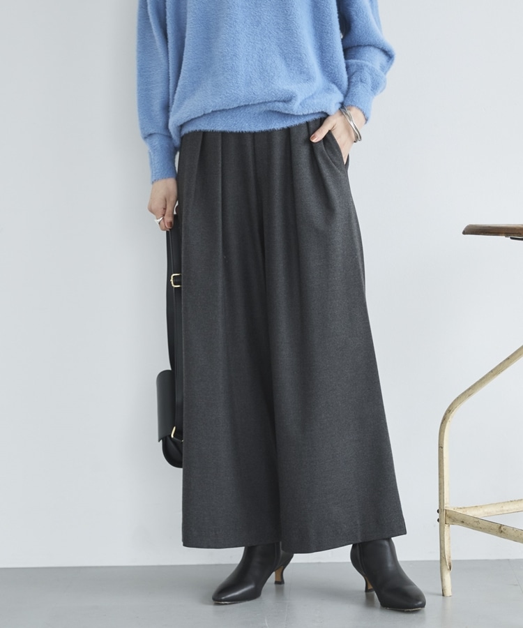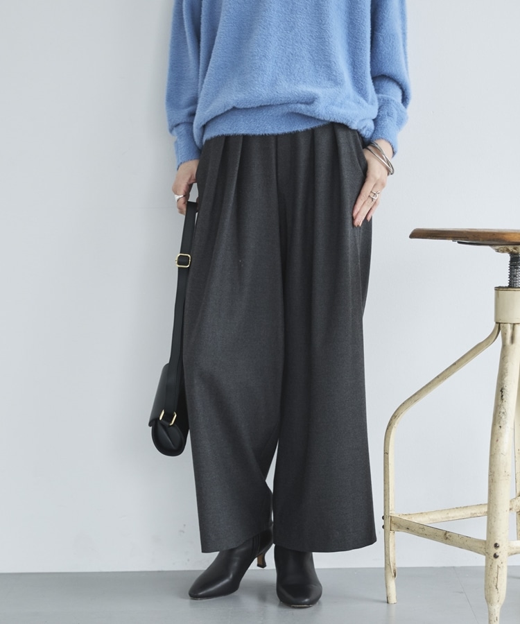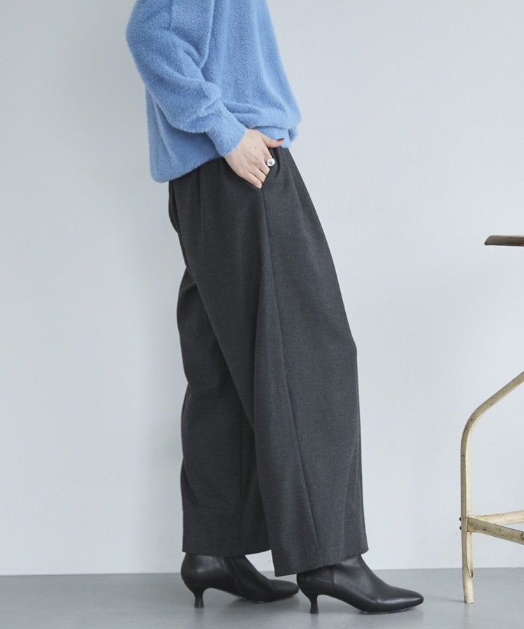 両面起毛タックワイドパンツ CHARCOAL GRAY