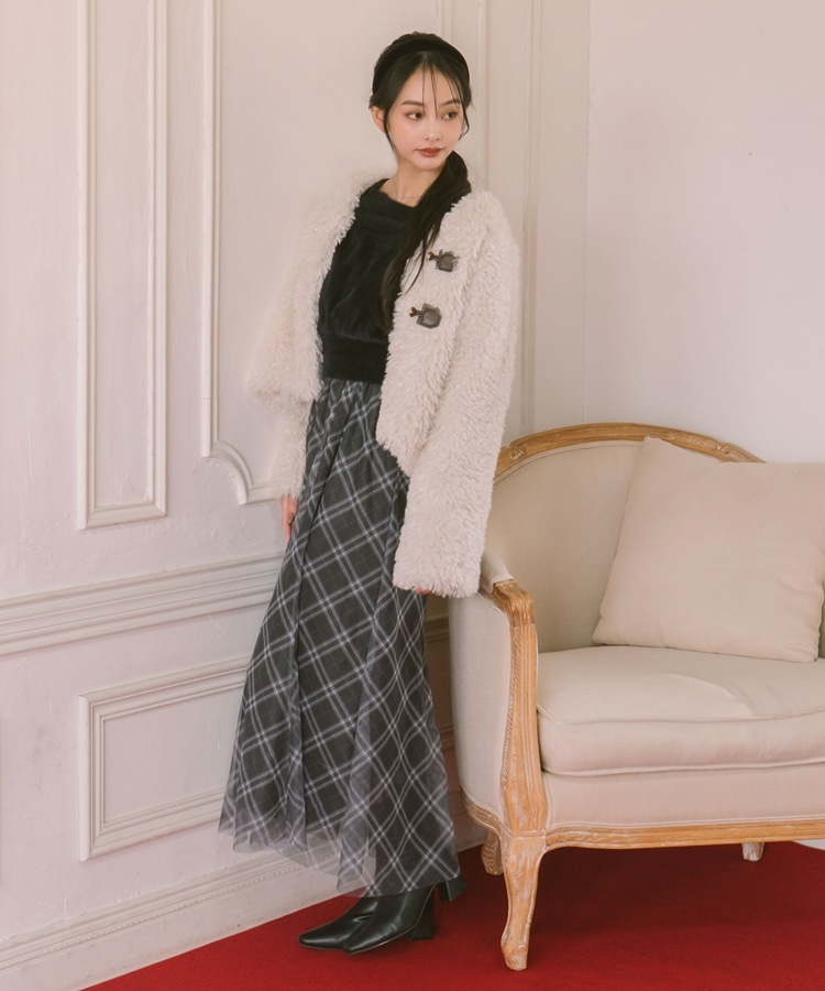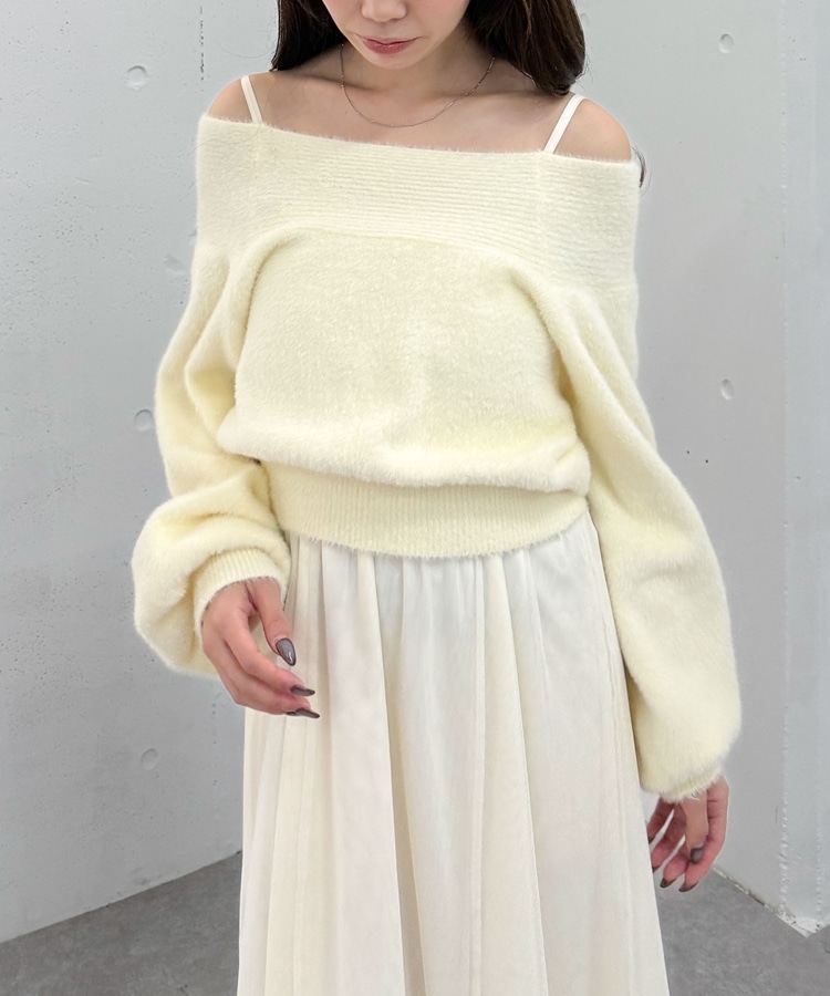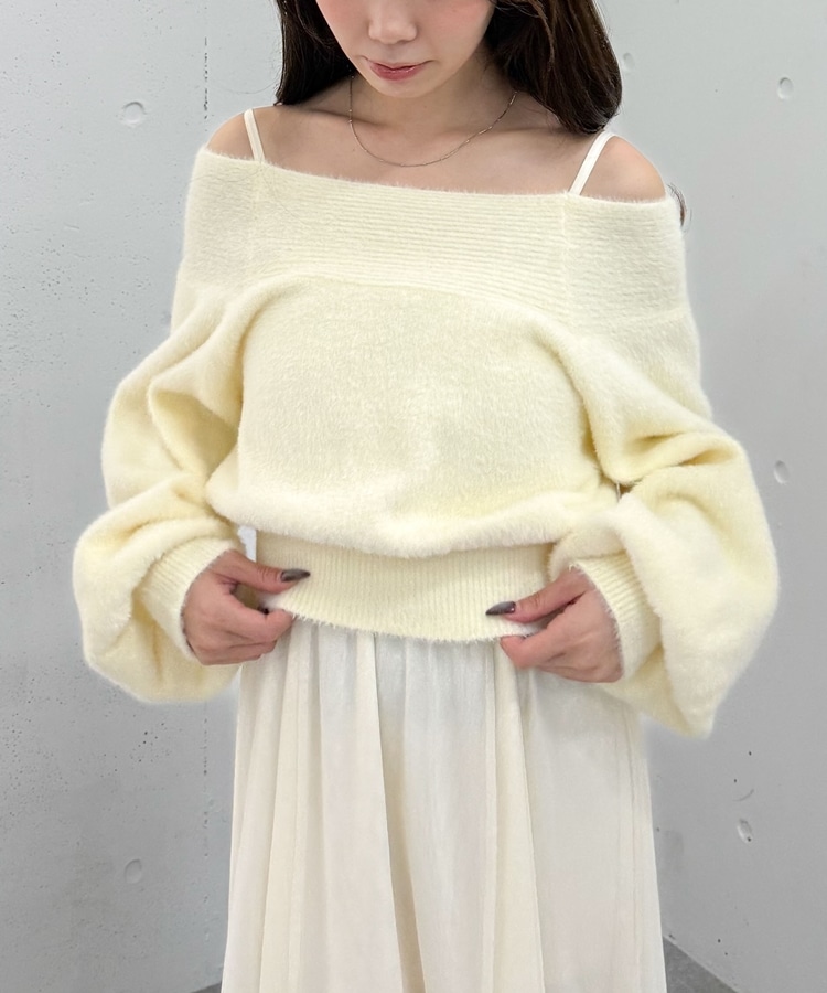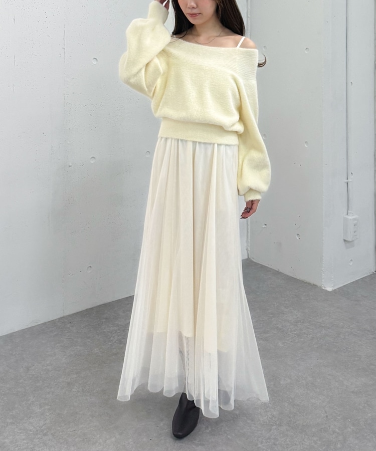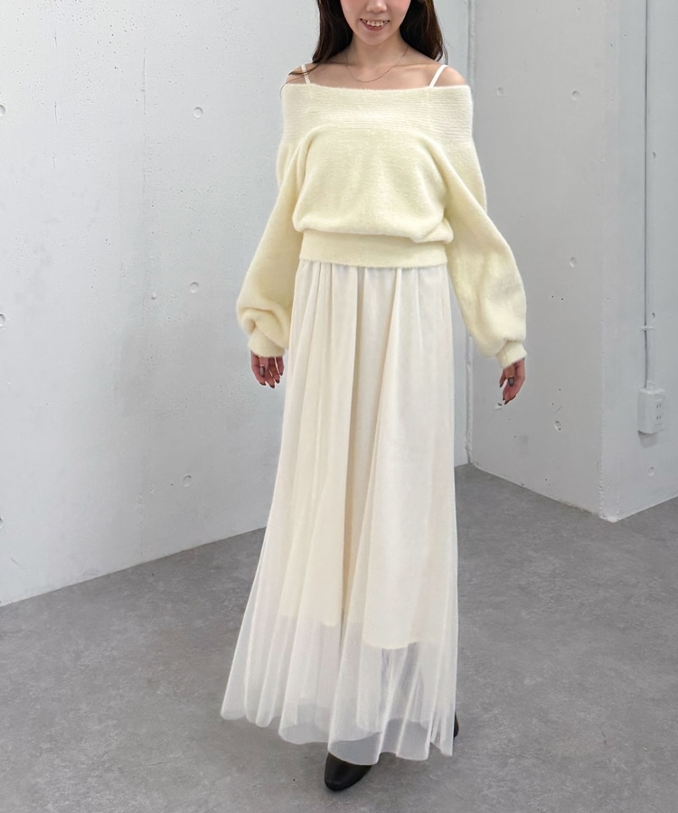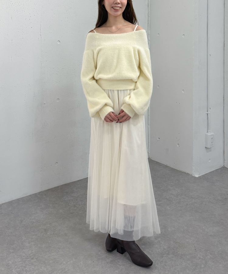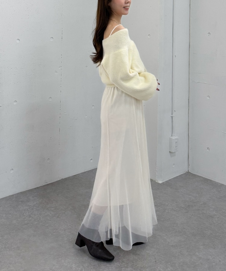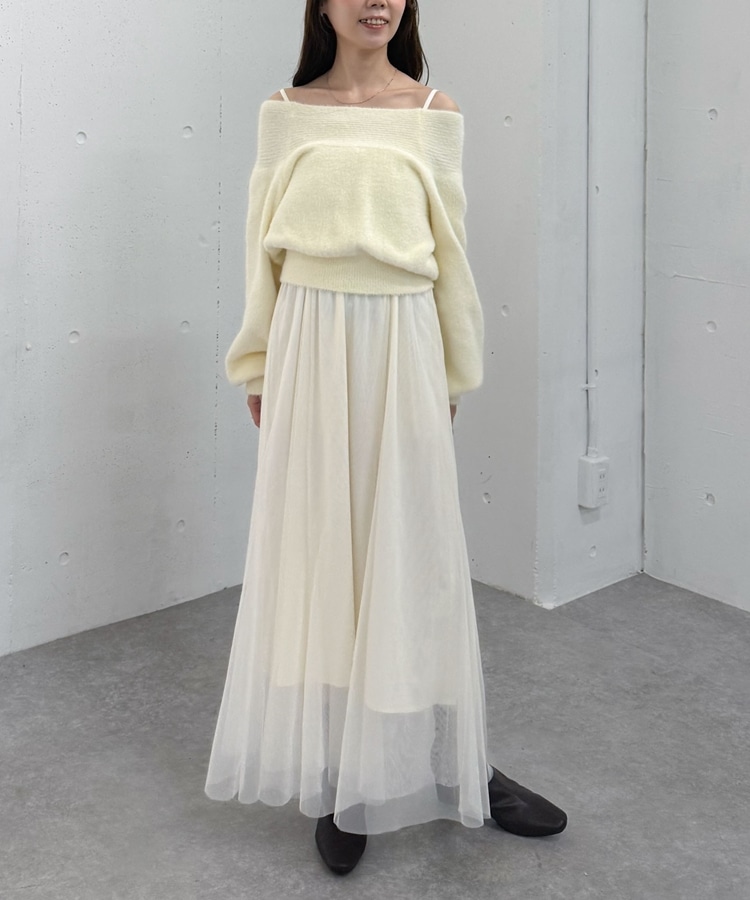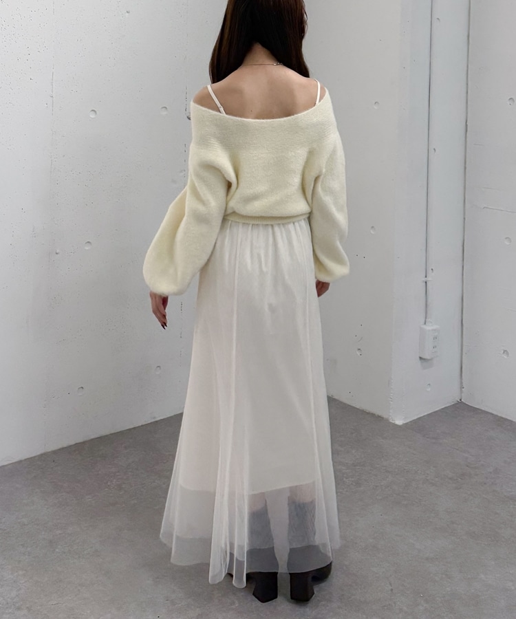 フェザーオフショルニット×チュールキャミワンピースSET IVORY