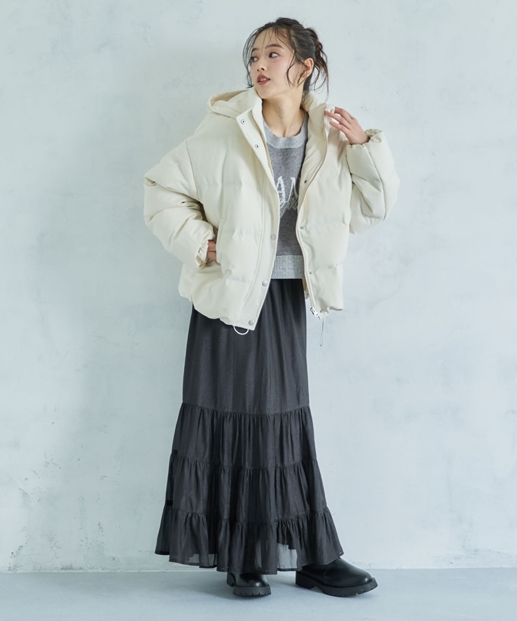 ■暖かさナンバーワンアイテム■ダウンが80%入ったコートは冬のマストアイテム。空気をたっぷり含み、軽量で、ふかふかの弾力と保温性に優れています。フェザーも入っているので、羽毛がボリュームダウンしにくく長く着ていただけます。アウター自体がとても暖かいので寒いのが苦手な方、1枚で着たい方におすすめ。シームレス加工はダウンの懸念点である着ぶくれを防いでくれます。裾の絞り加工はさらにシルエットをすっきりみせてくれます。フードは取り外しが可能なので、スタイリングに合わせてきこなせます。ワンピース、スカート、パンツ様々なアイテムと合わせていただける1枚です。ーーーーーーーーーーーーーーー透け感:なし裏地:あり伸縮性:なし光沢感:なし生地厚さ:厚い洗濯方法:クリーニング推奨※詳しいお手入れ方法は商品についているタグをご覧くださいーーーーーーーーーーーーーーー※ご利用のモニター環境により、実際の色味と多少異なる場合がございます。