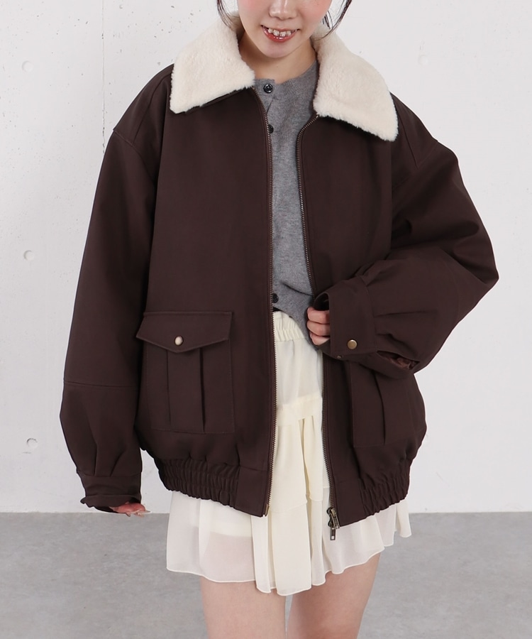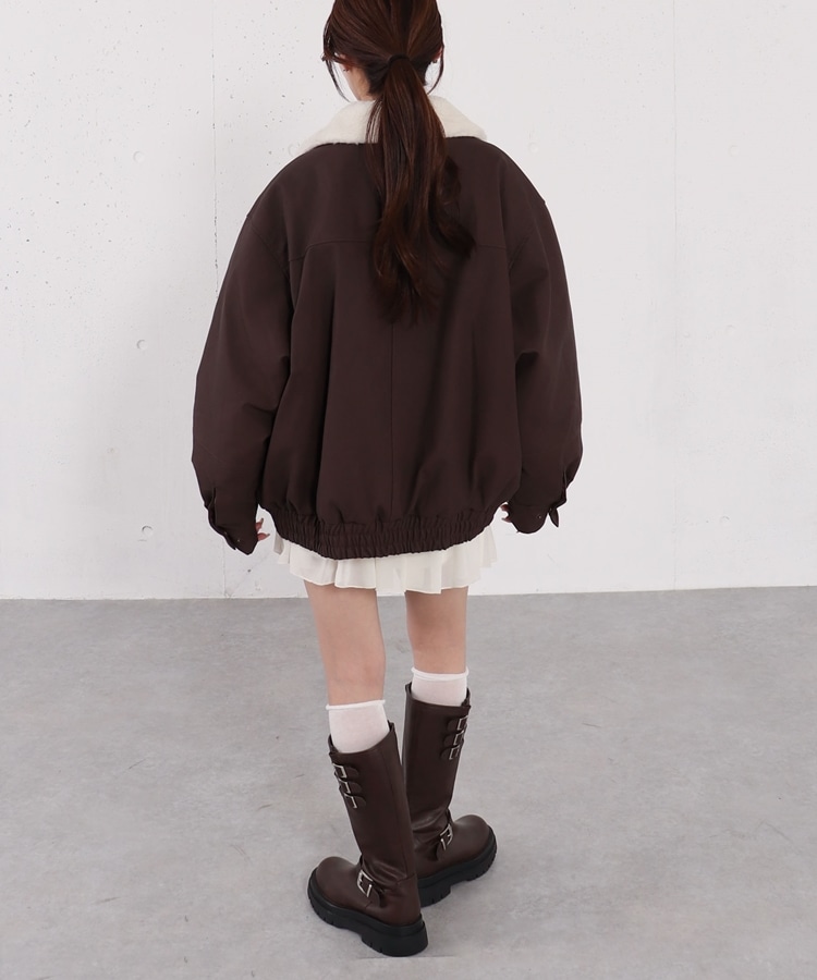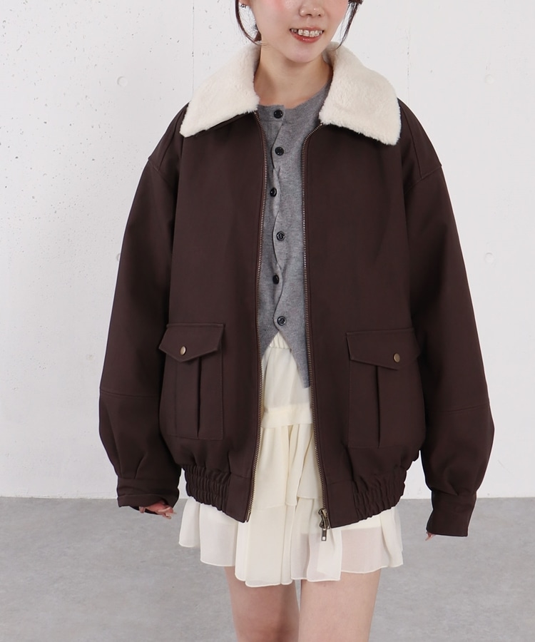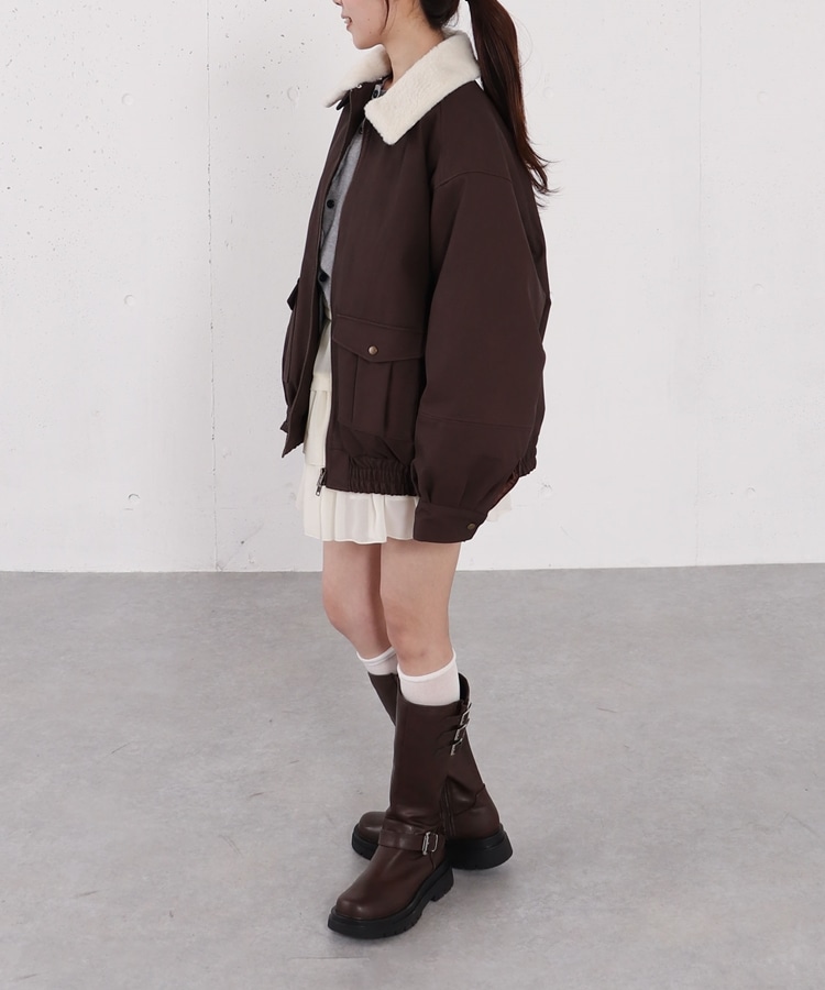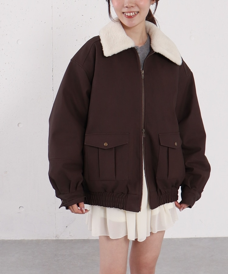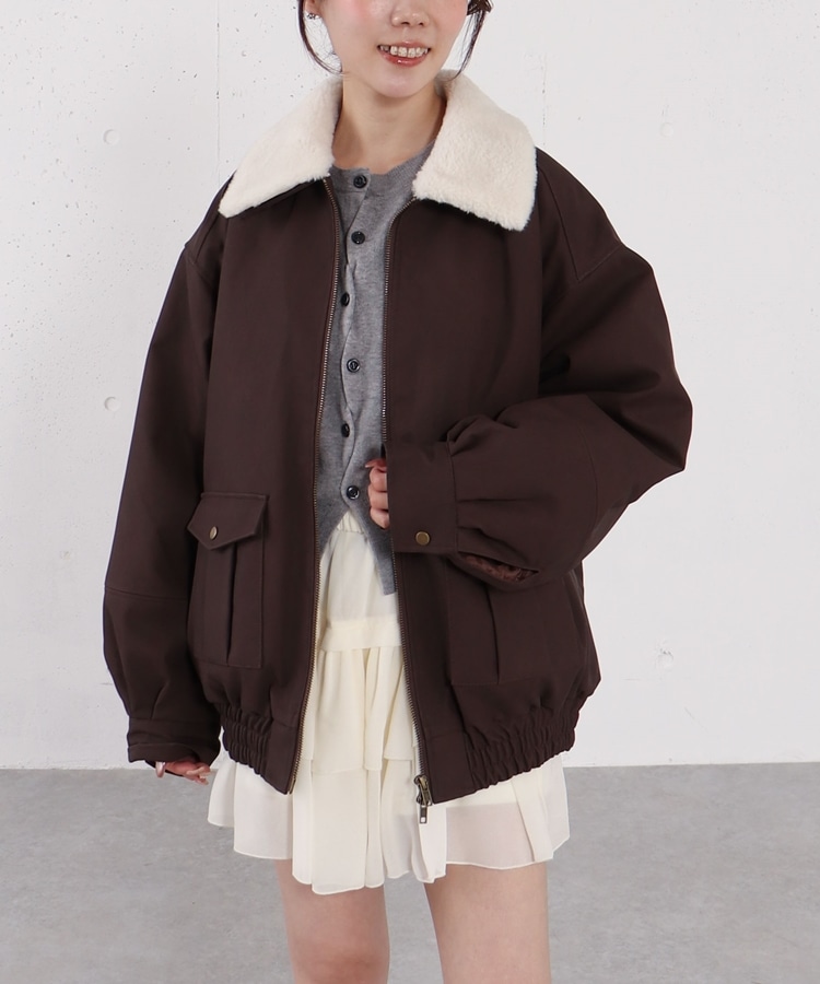 ファー衿付中綿フェイクレザーブルゾン BROWN
