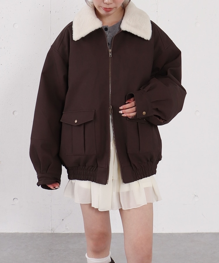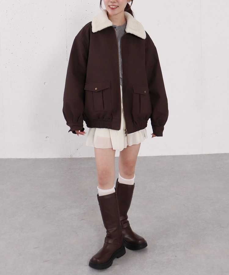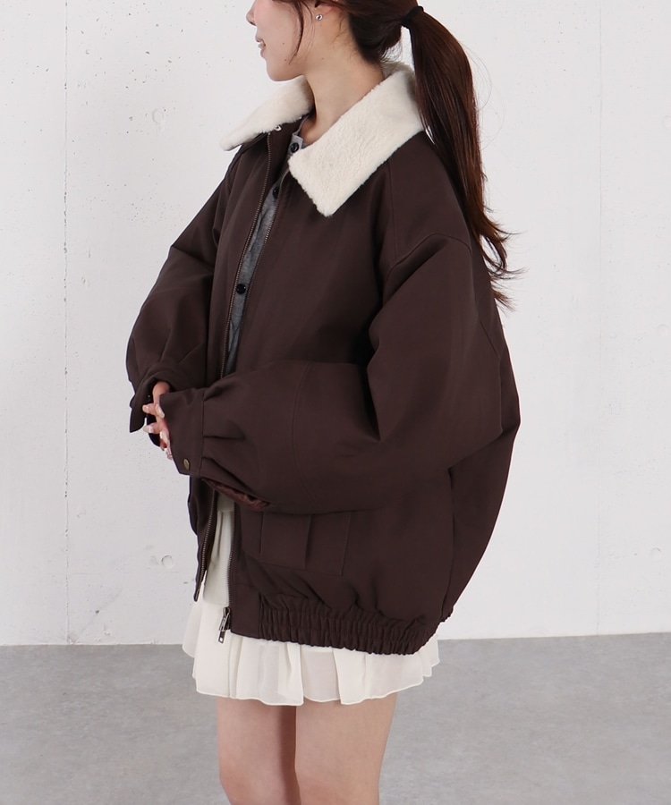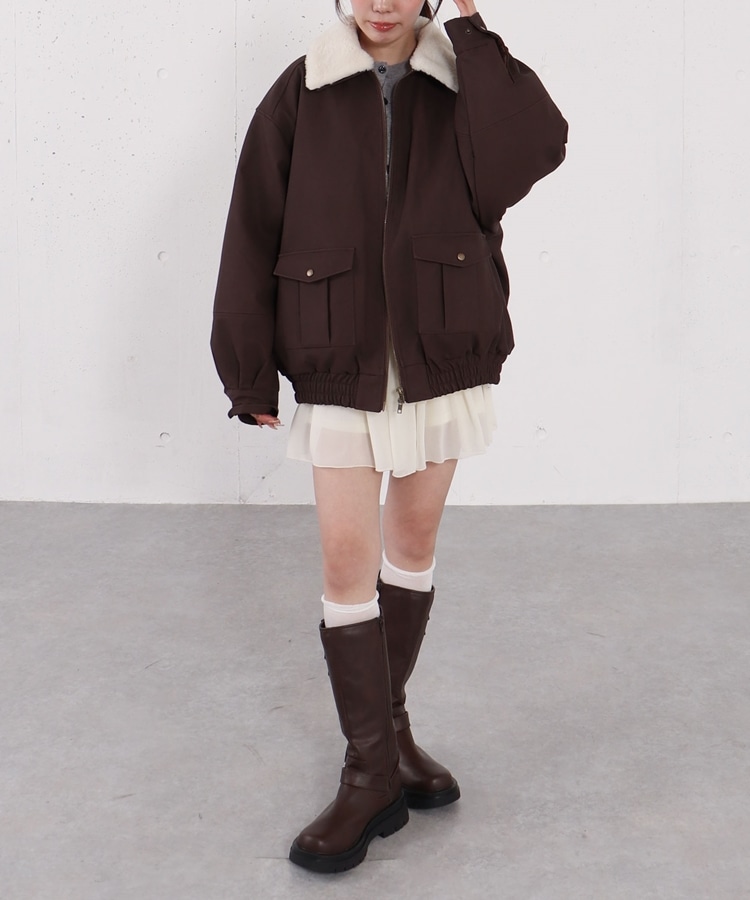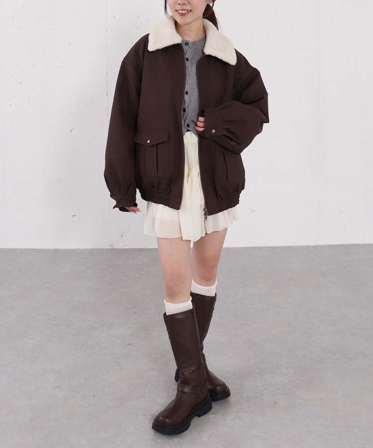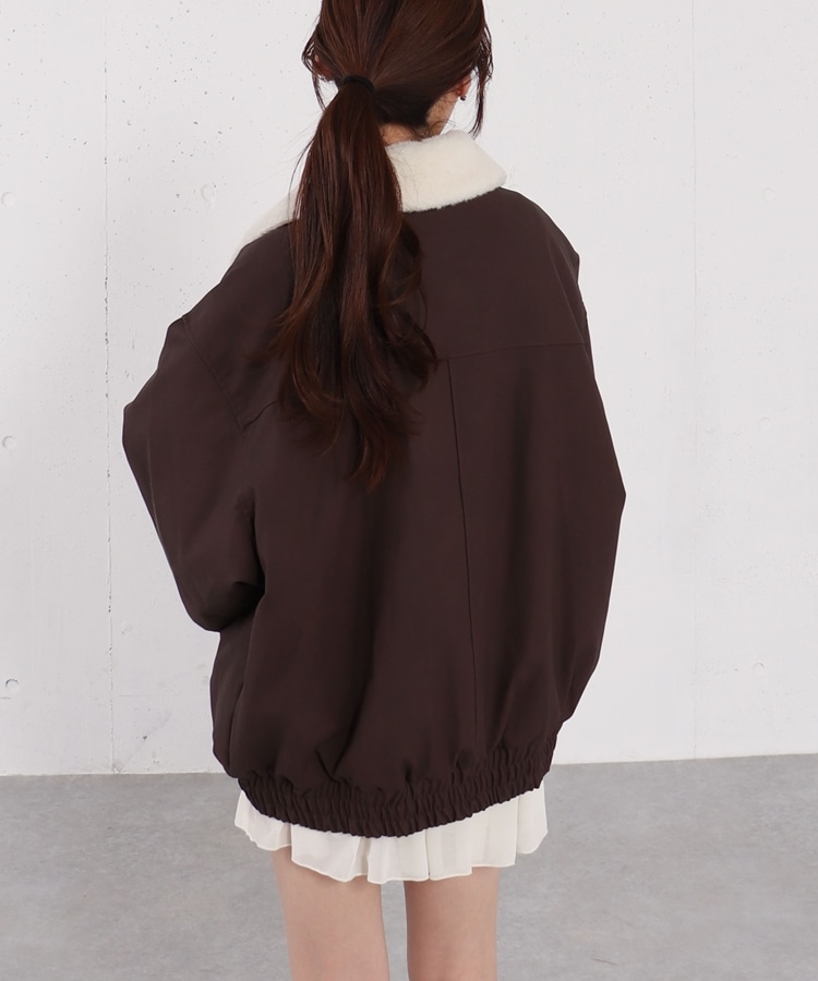 ファー衿付中綿フェイクレザーブルゾン BROWN