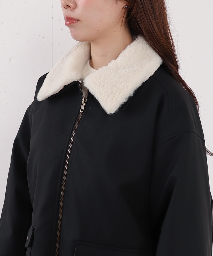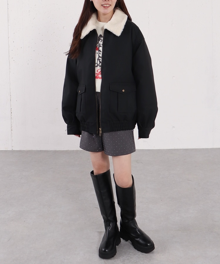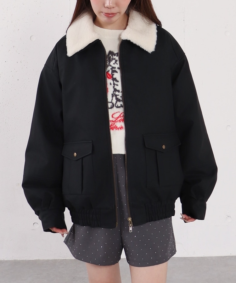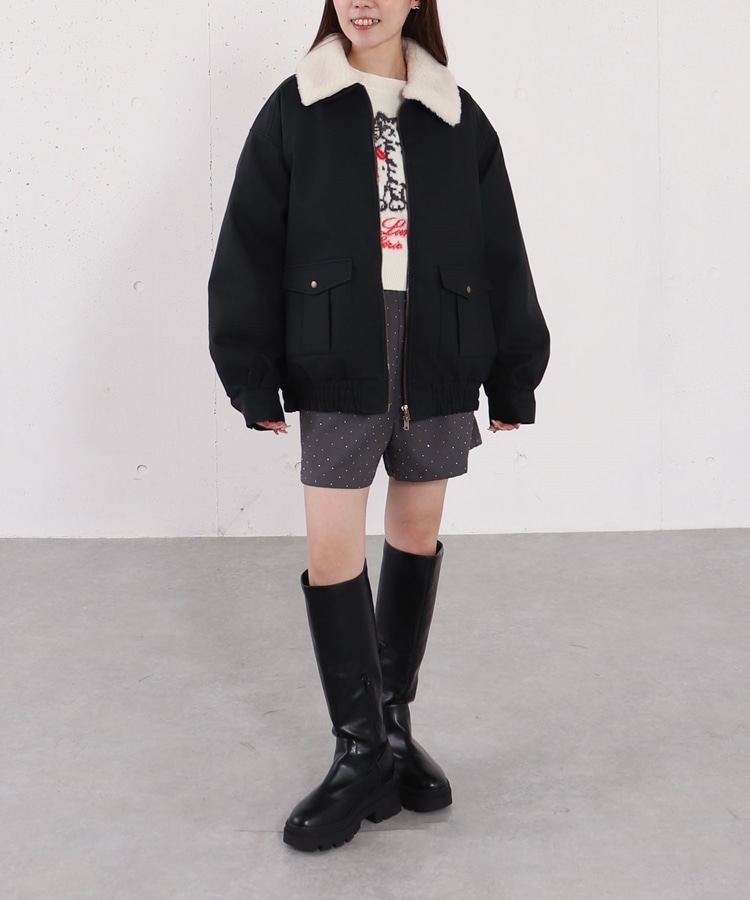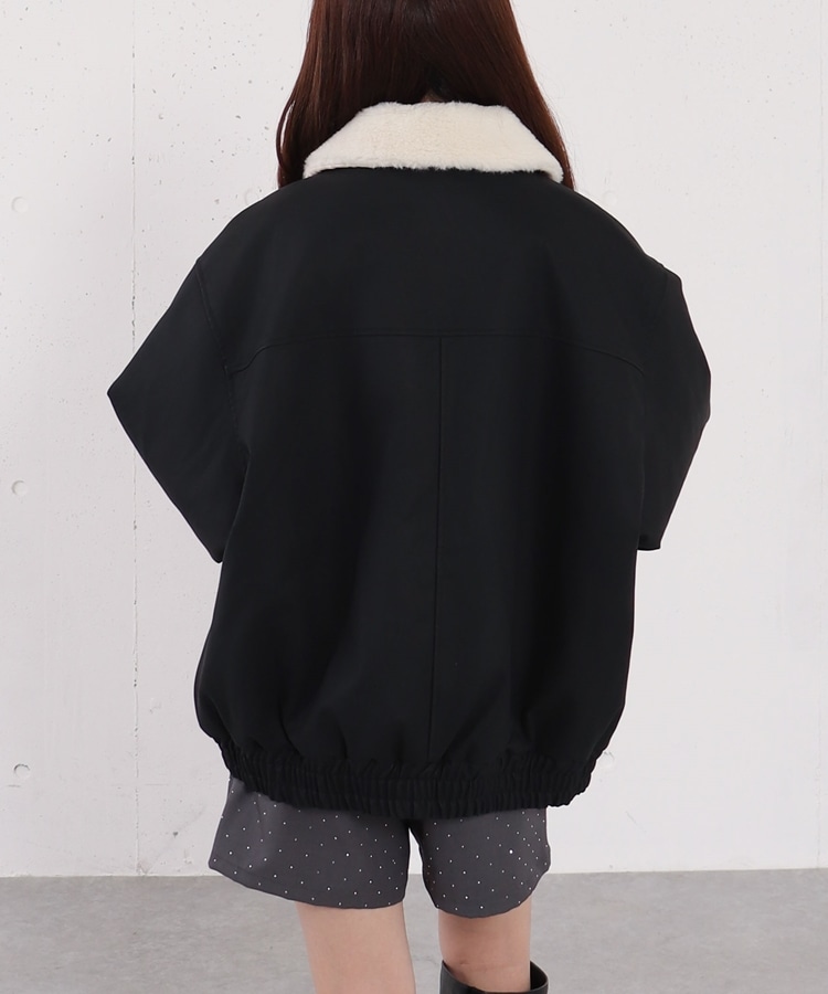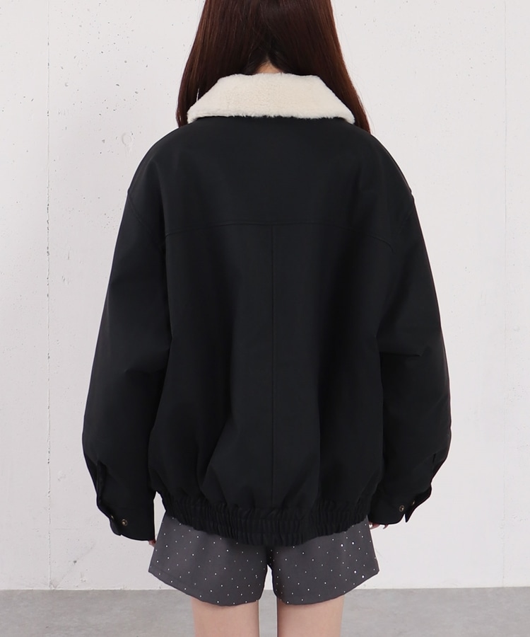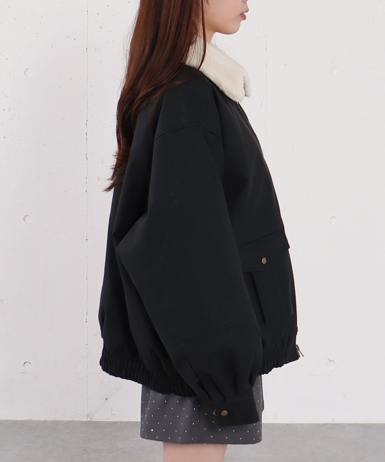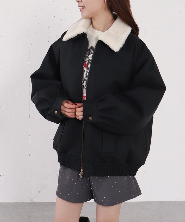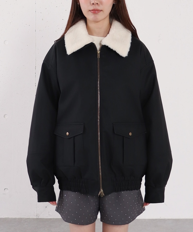 ファー衿付中綿フェイクレザーブルゾン BLACK