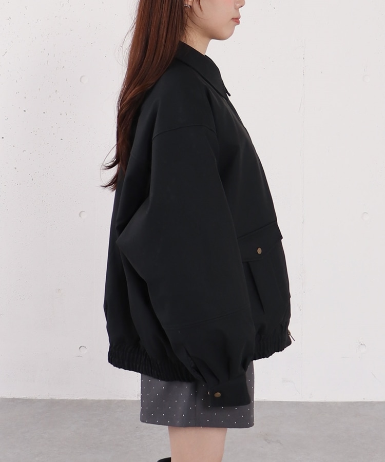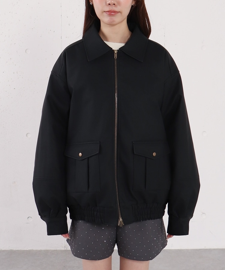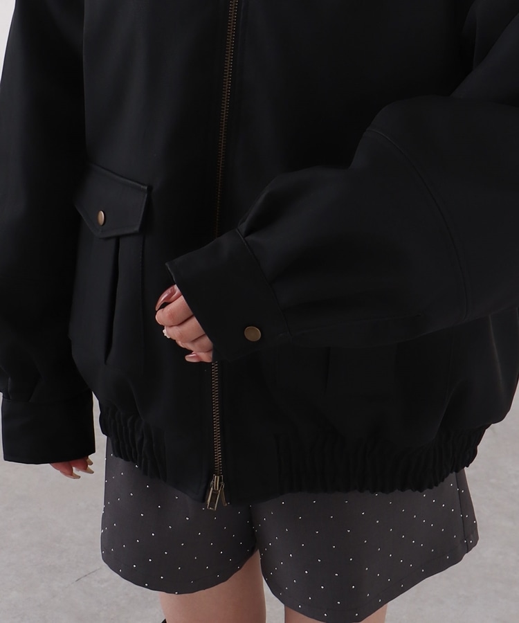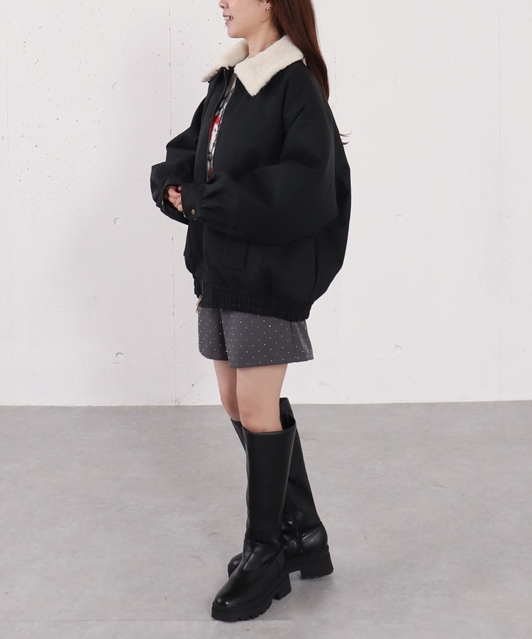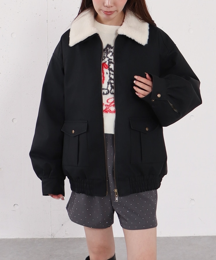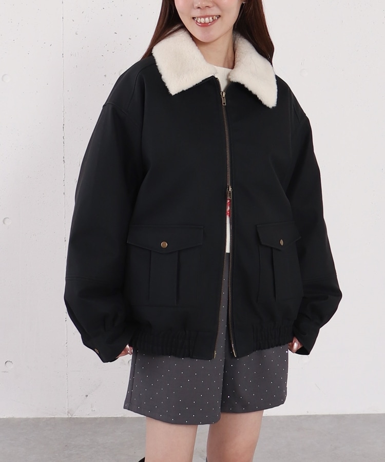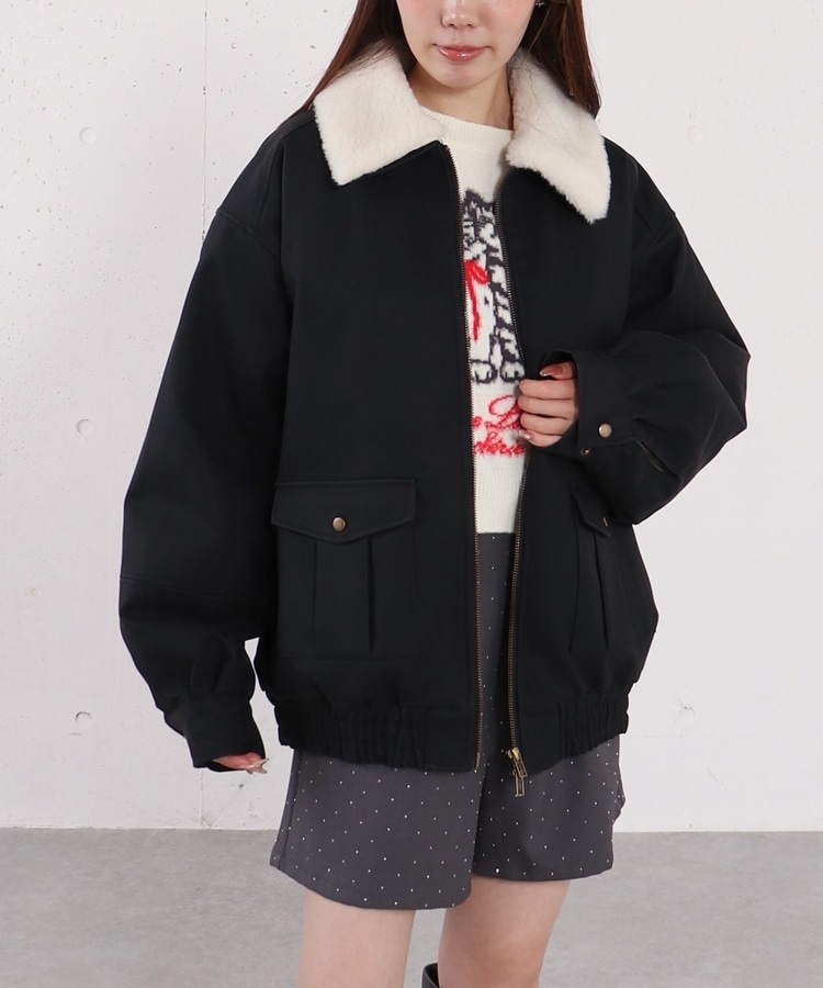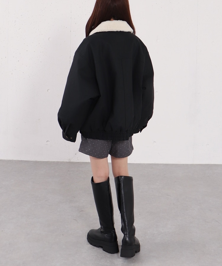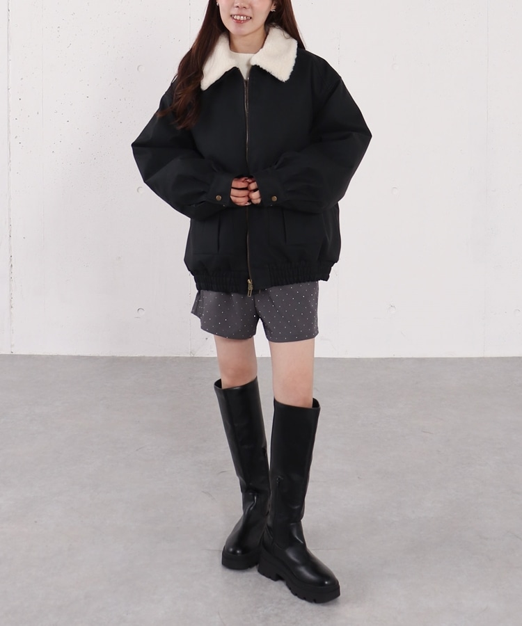 ファー衿付中綿フェイクレザーブルゾン BLACK