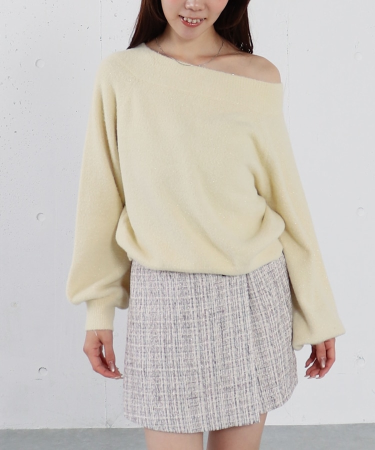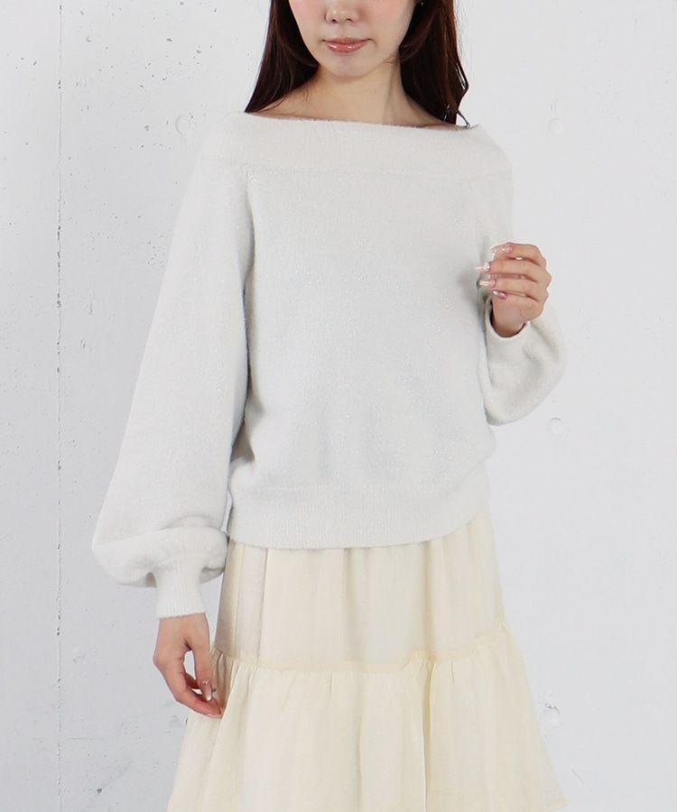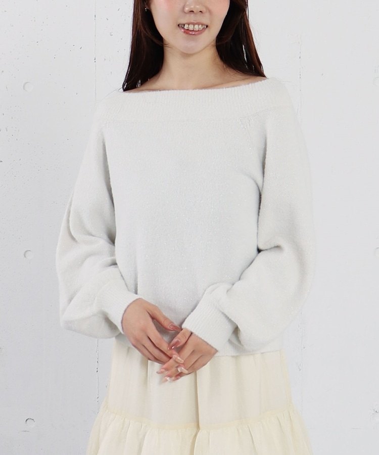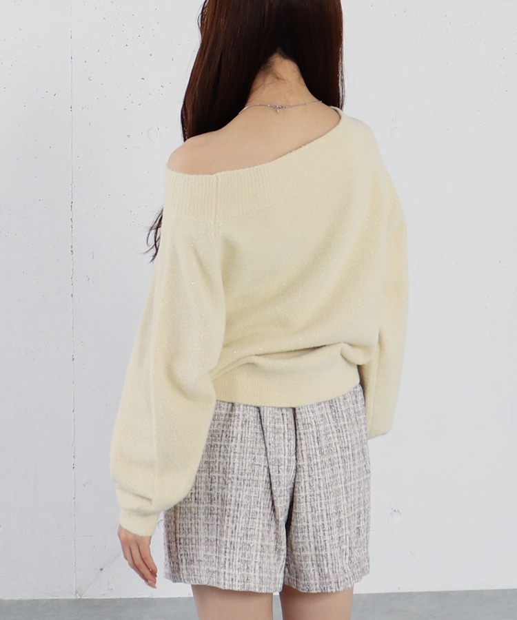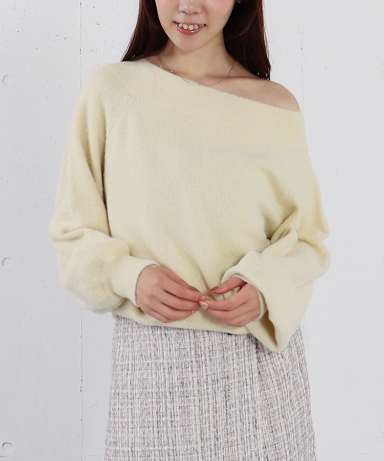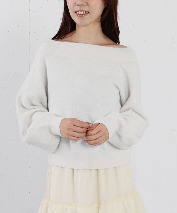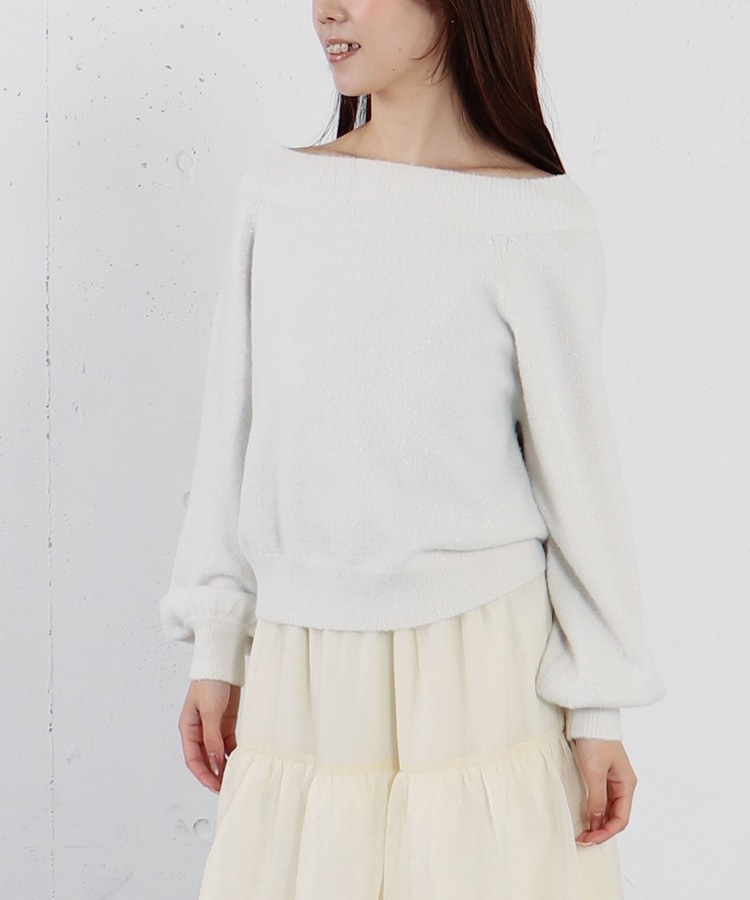 ラメマシュマロオフショルニットプルオーバー IVORY