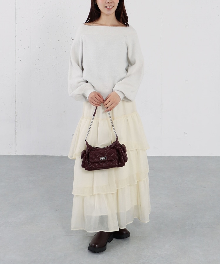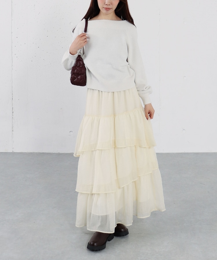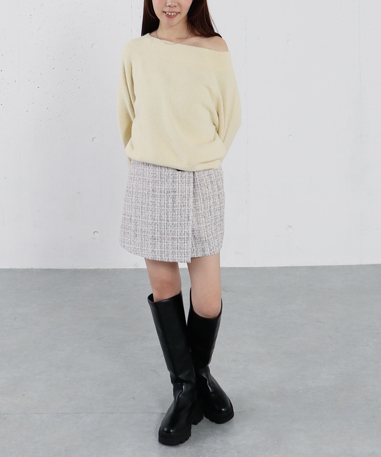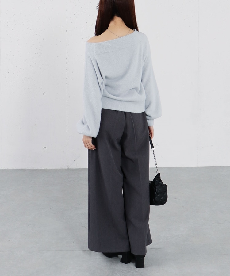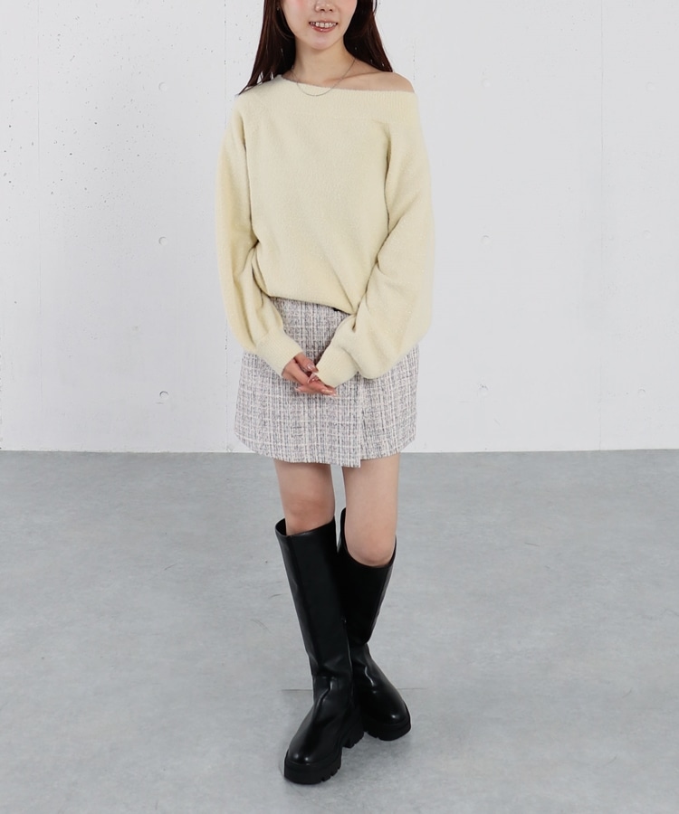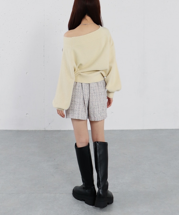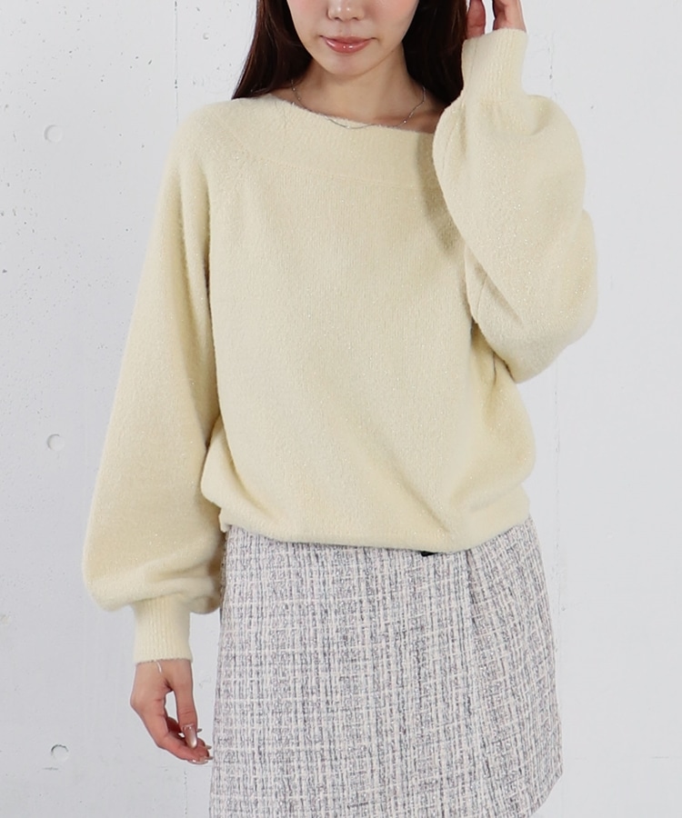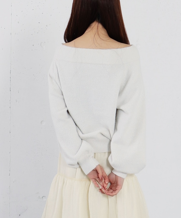 ラメマシュマロオフショルニットプルオーバー IVORY