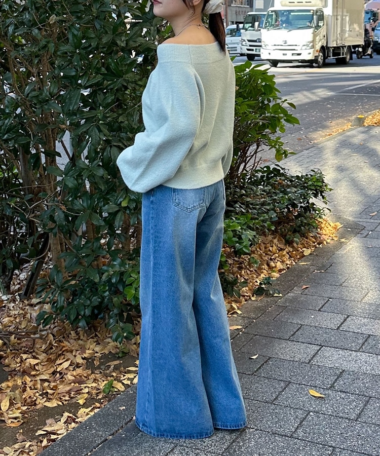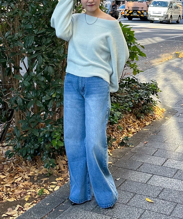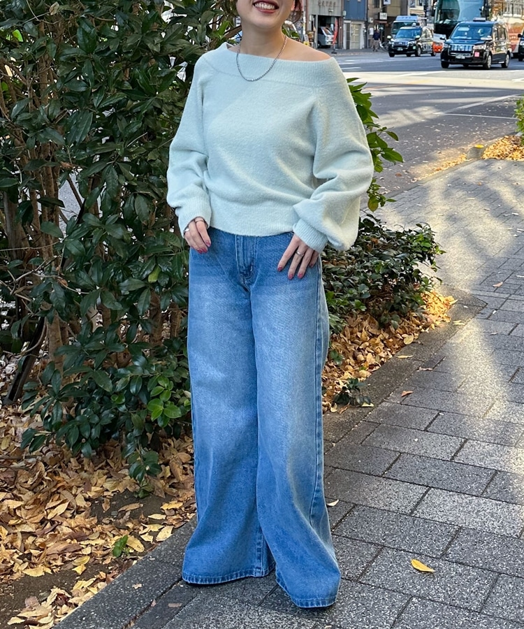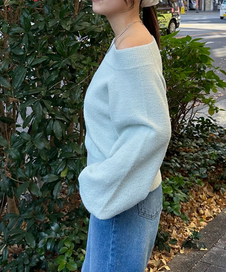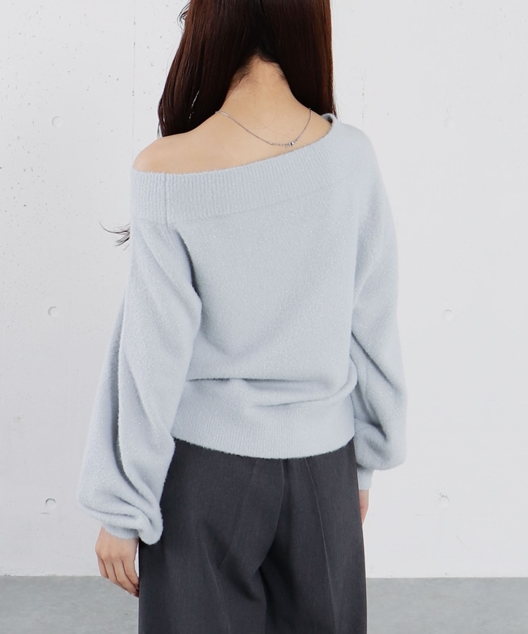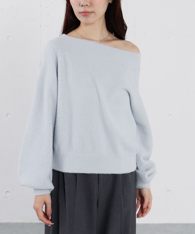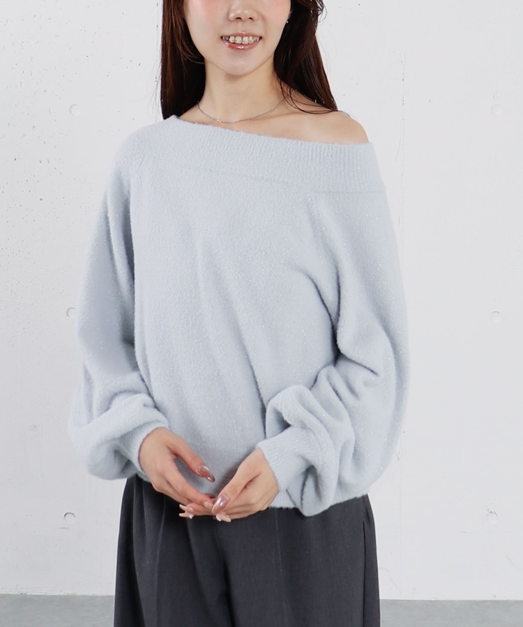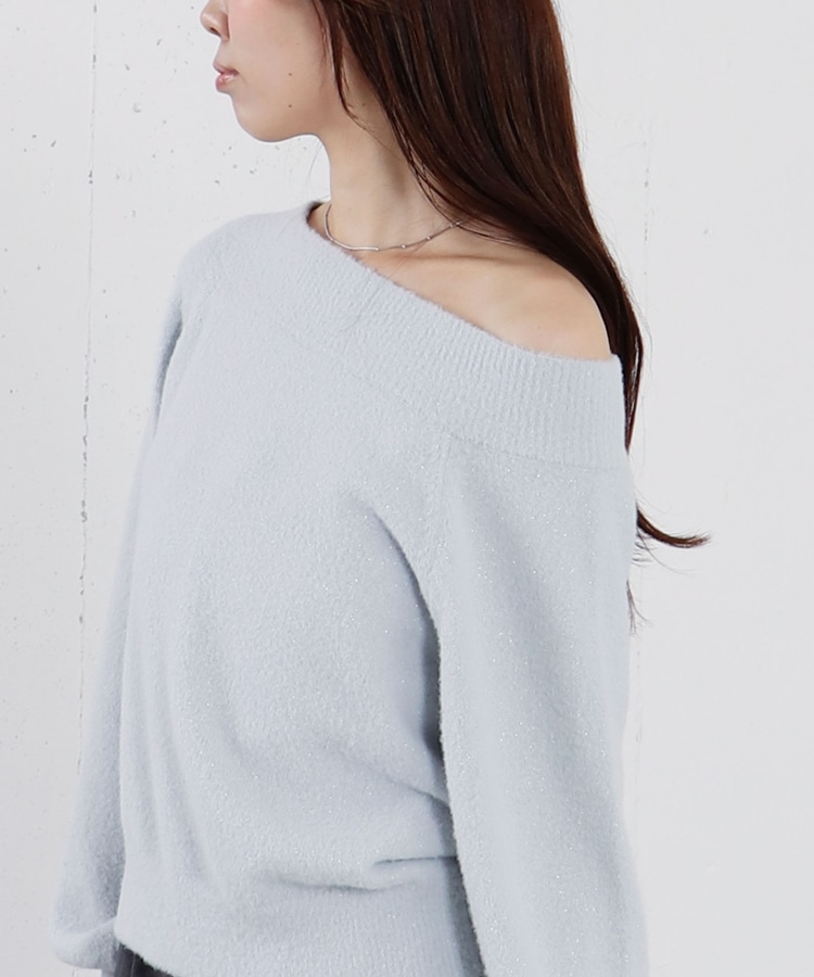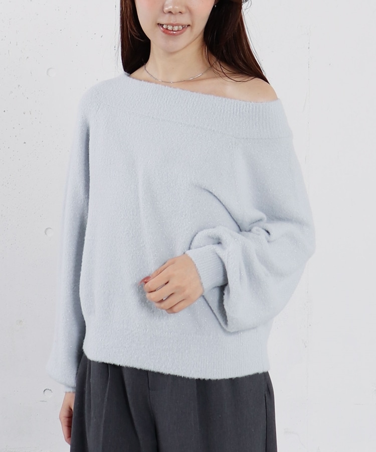 ラメマシュマロオフショルニットプルオーバー BLUE