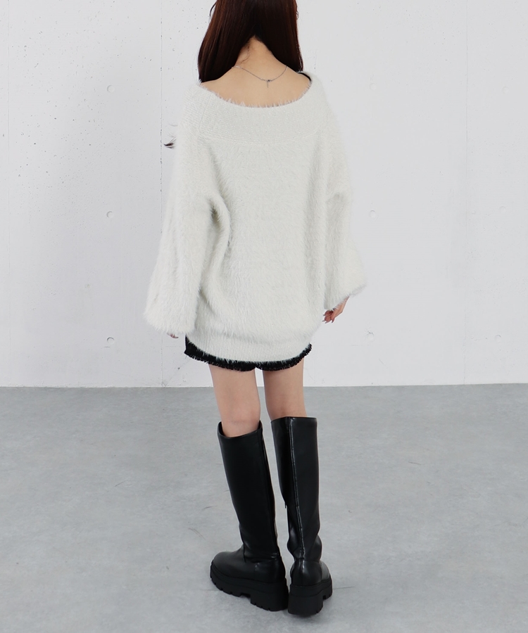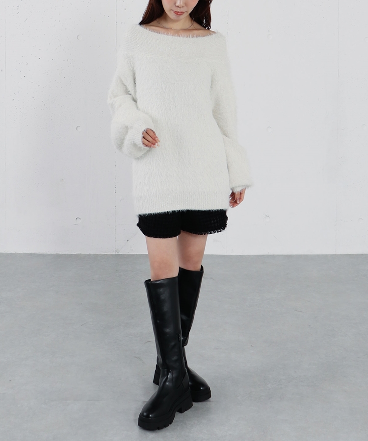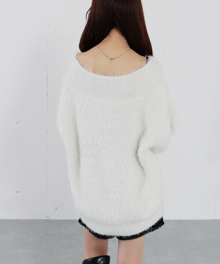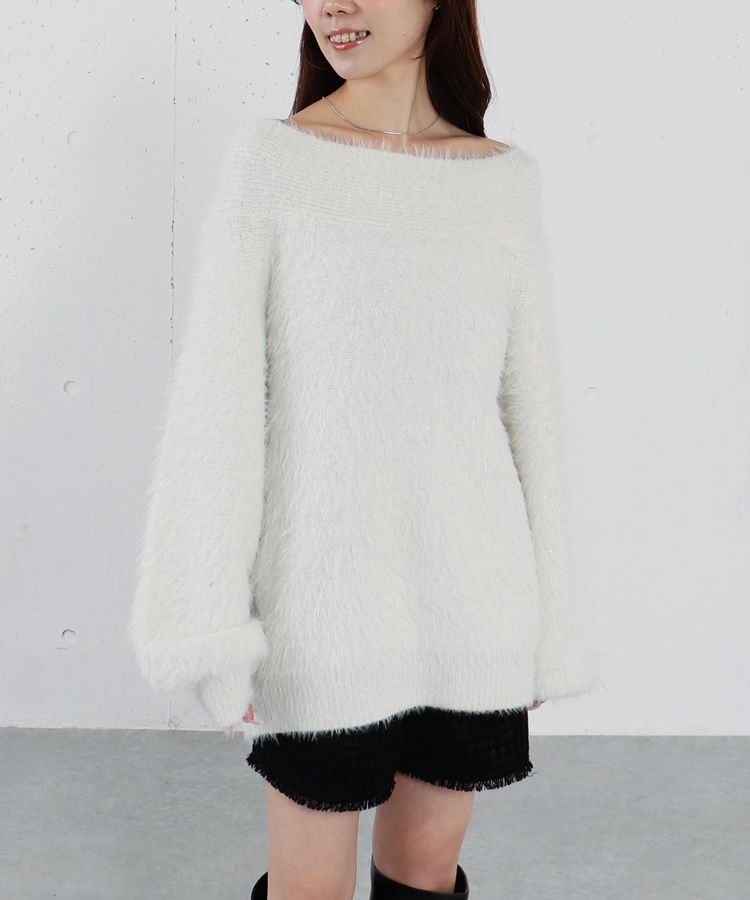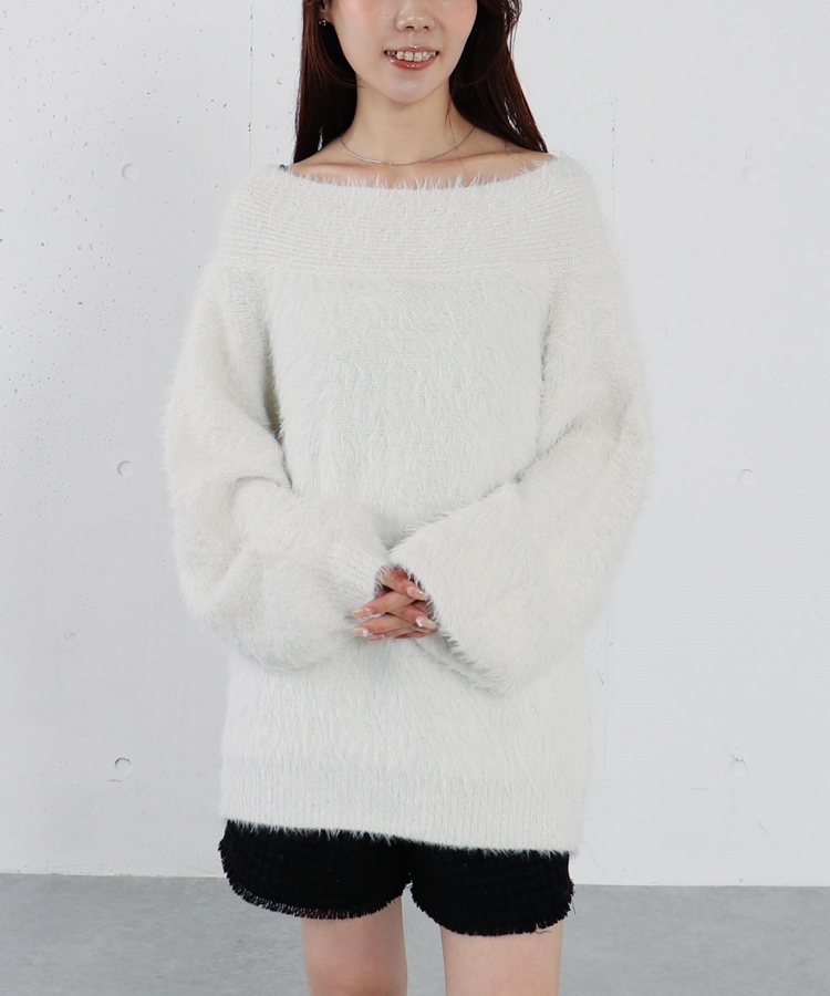 スパンコールフェザーオフショルミドルニットプルオーバー IVORY