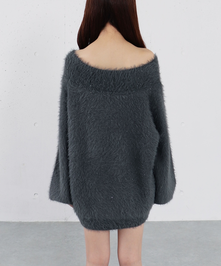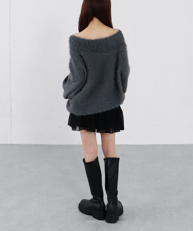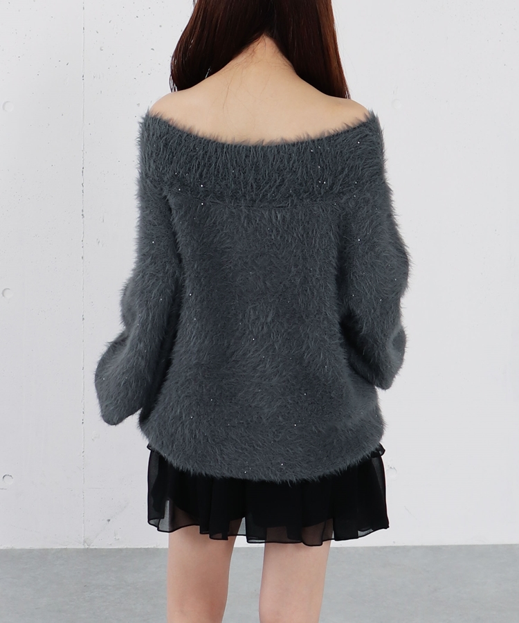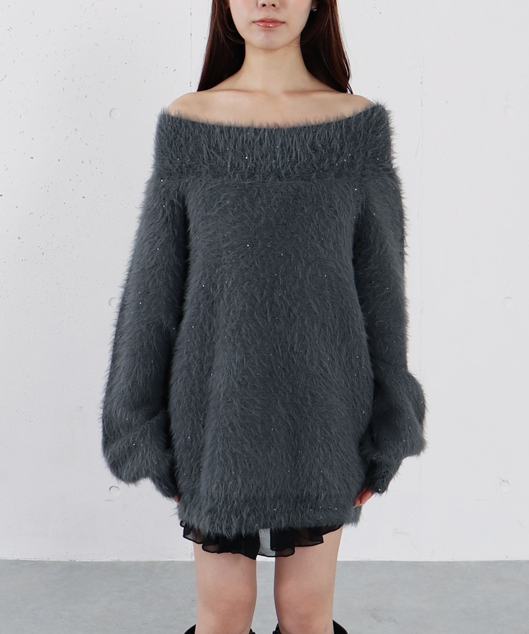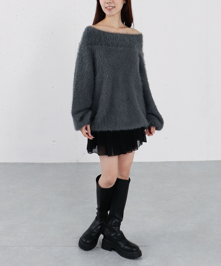 スパンコールフェザーオフショルミドルニットプルオーバー CHARCOAL GRAY