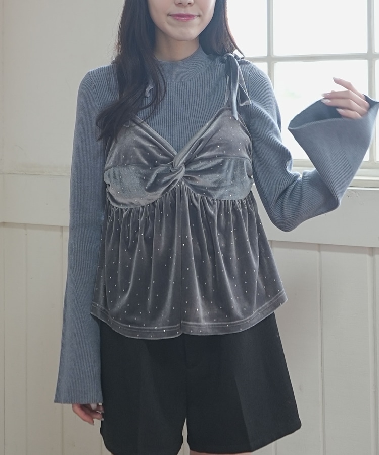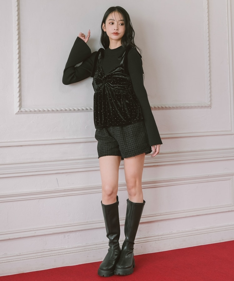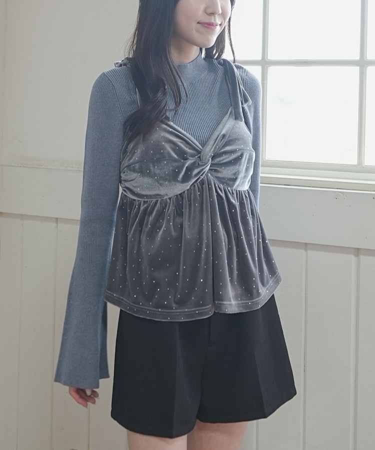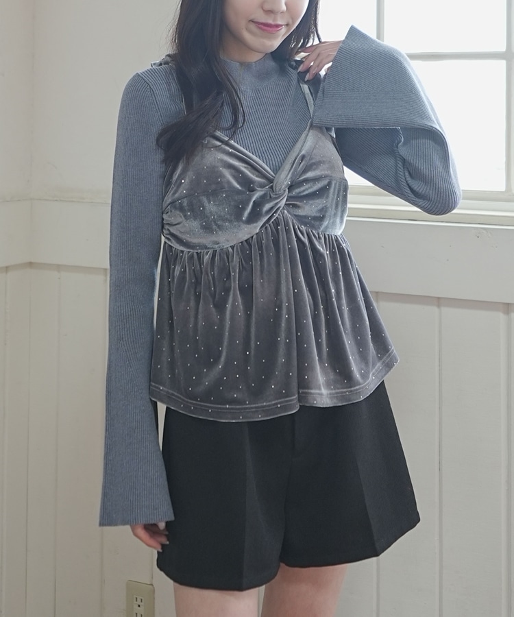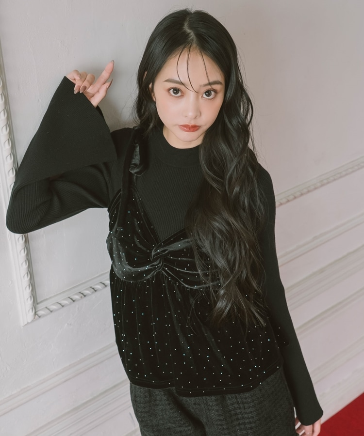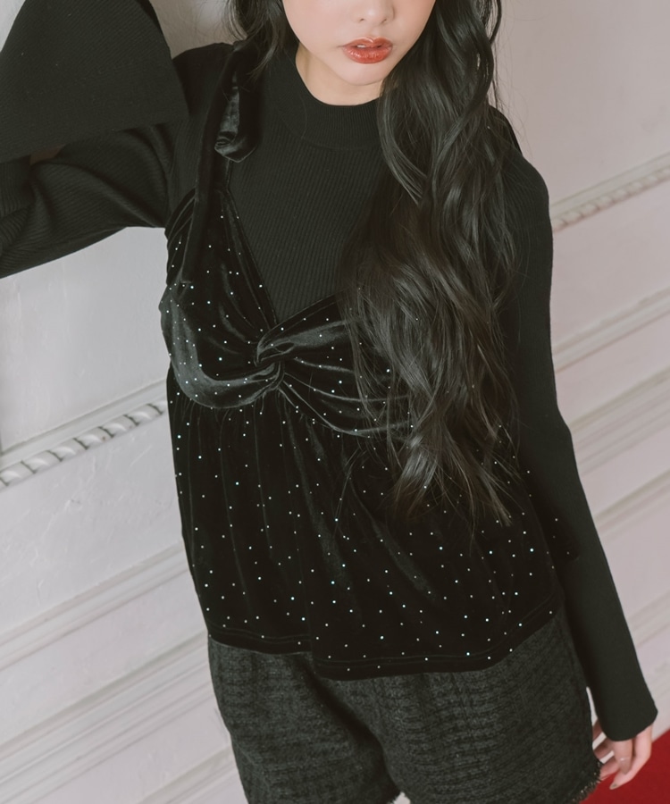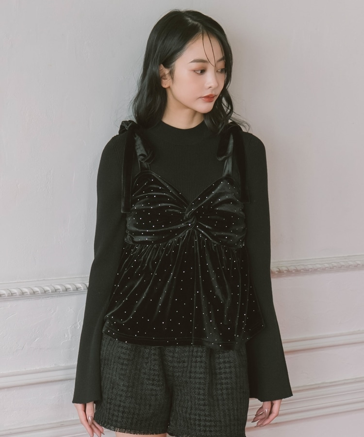 キラッと光るベロアビスチェと着回し力抜群のリブニットとのSETアイテム。