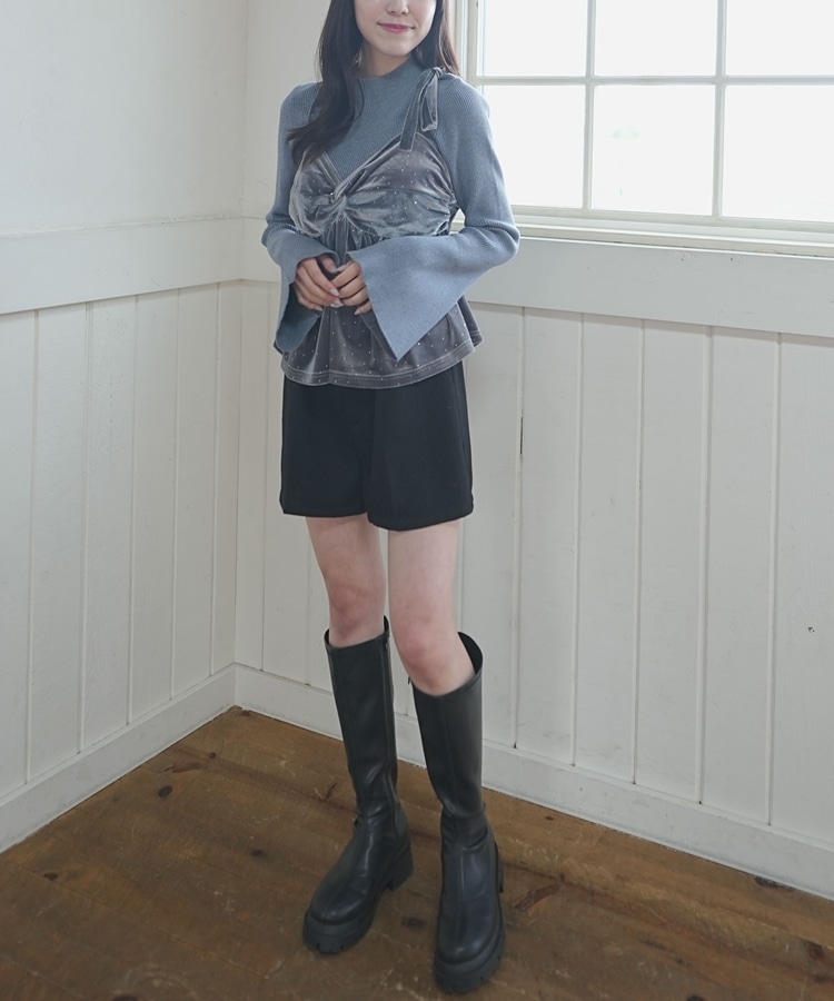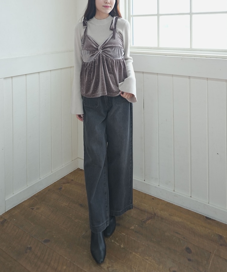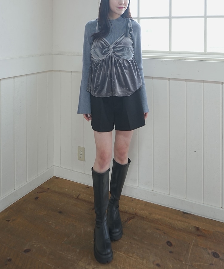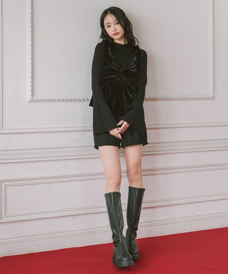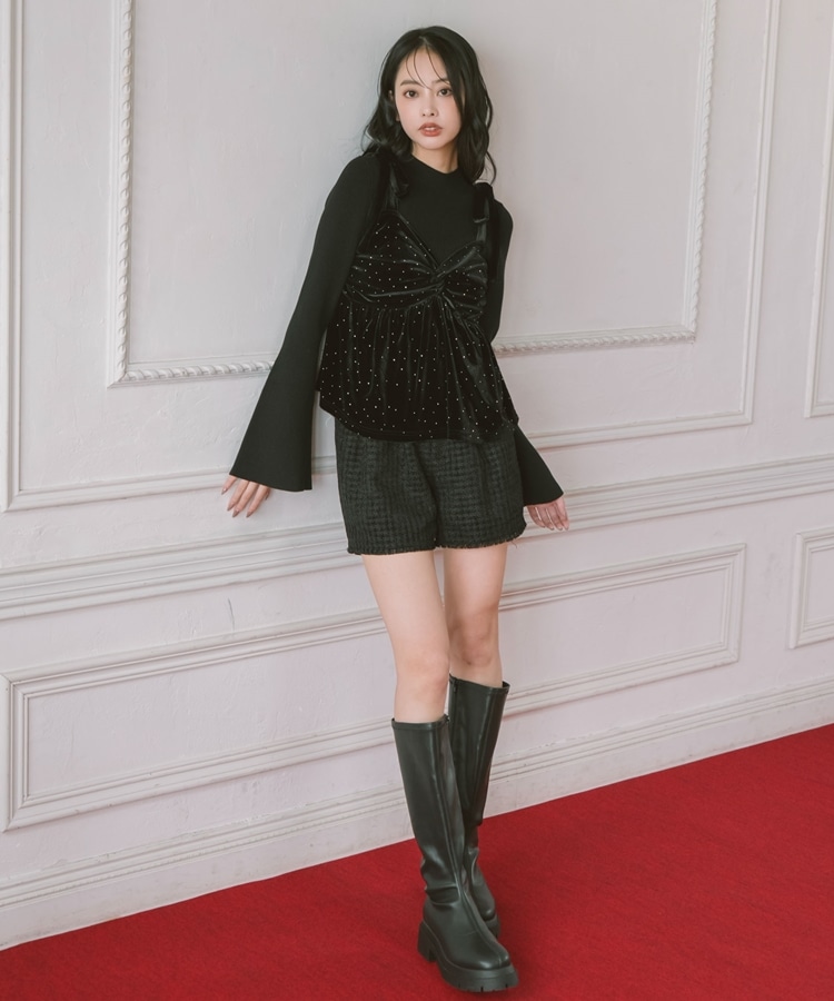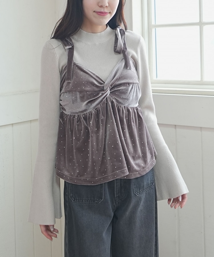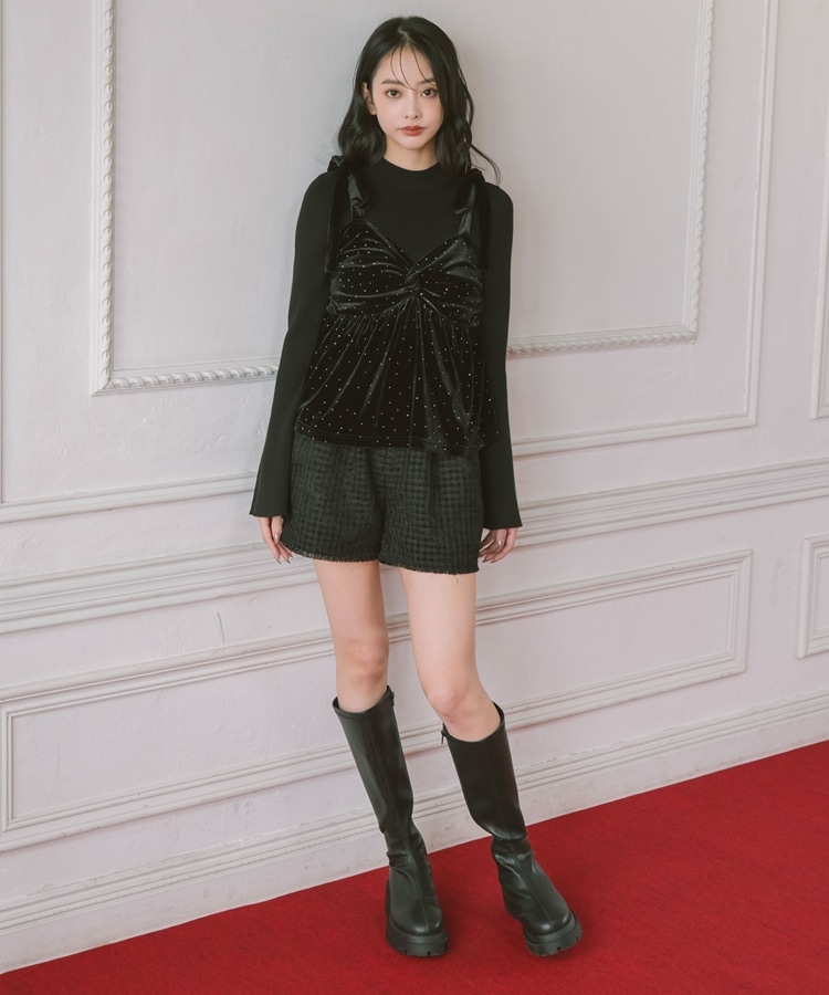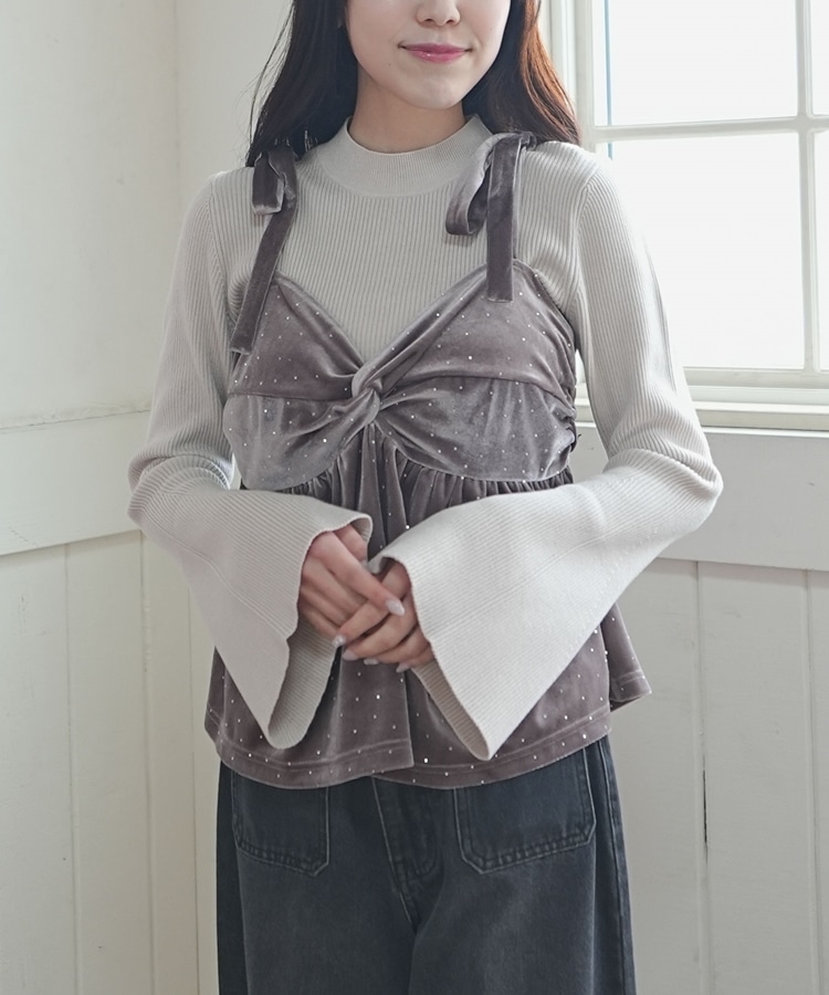 キラッと光るベロアビスチェと着回し力抜群のリブニットとのSETアイテム。