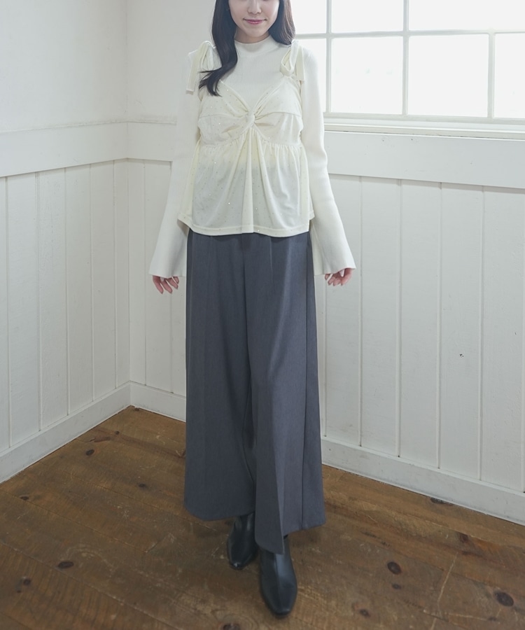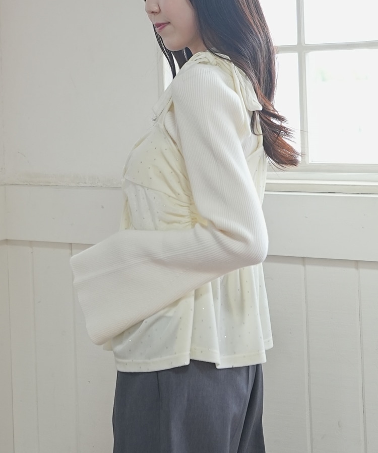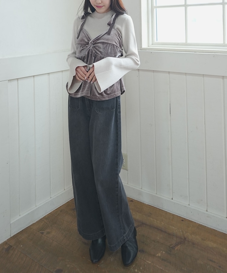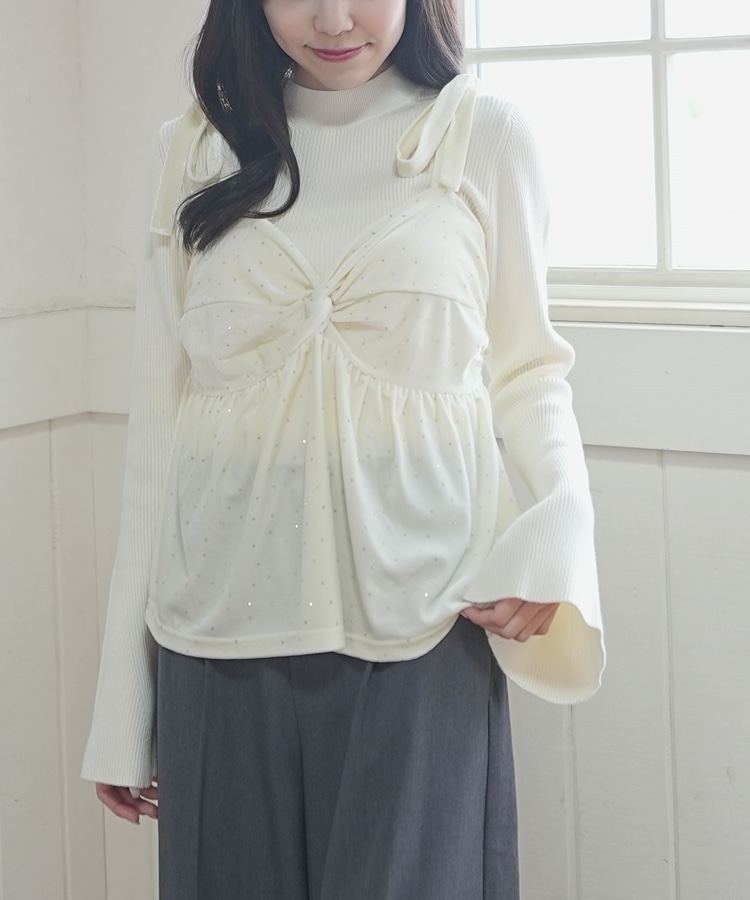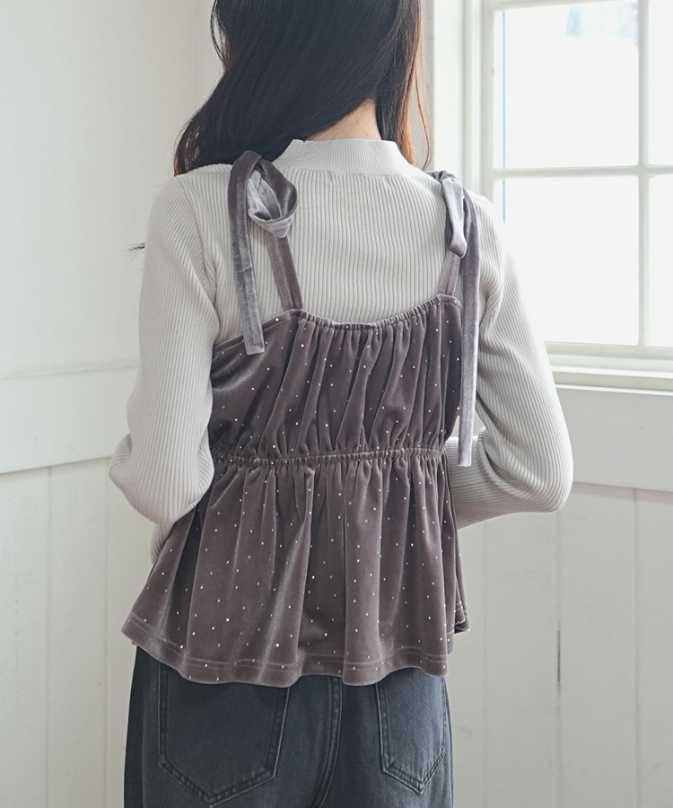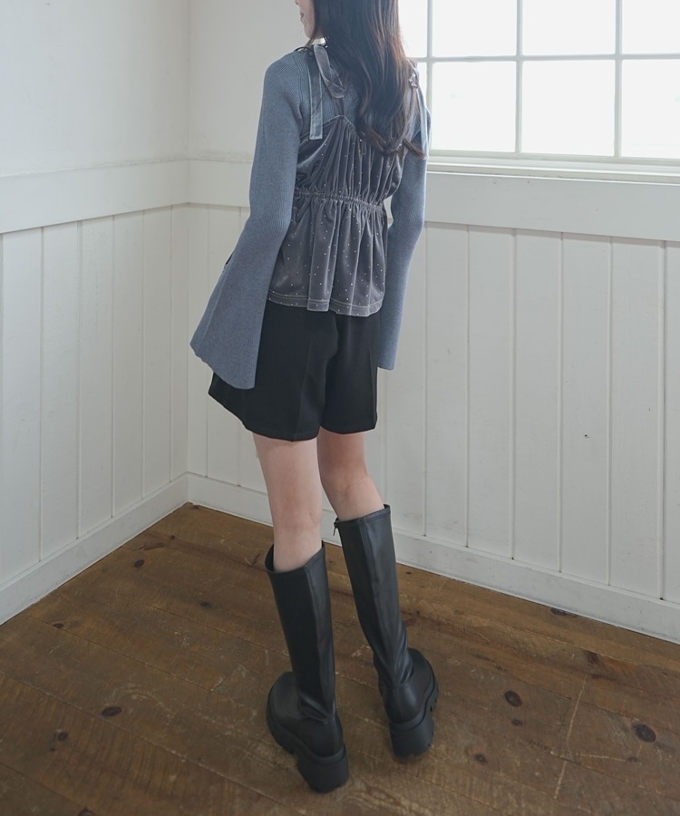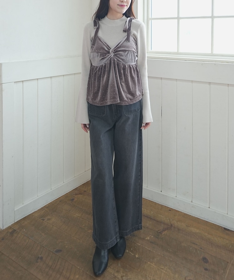 キラッと光るベロアビスチェと着回し力抜群のリブニットとのSETアイテム。